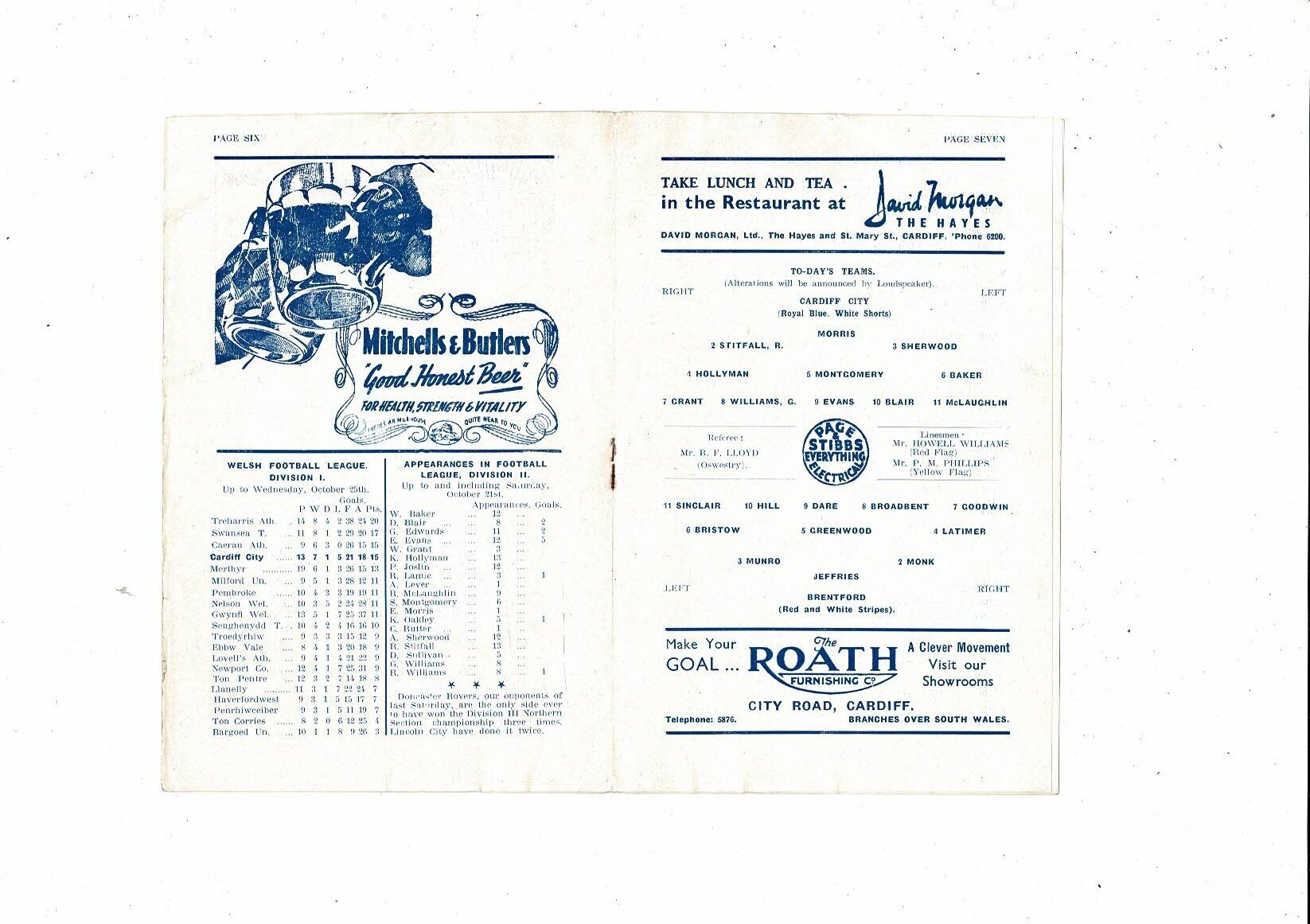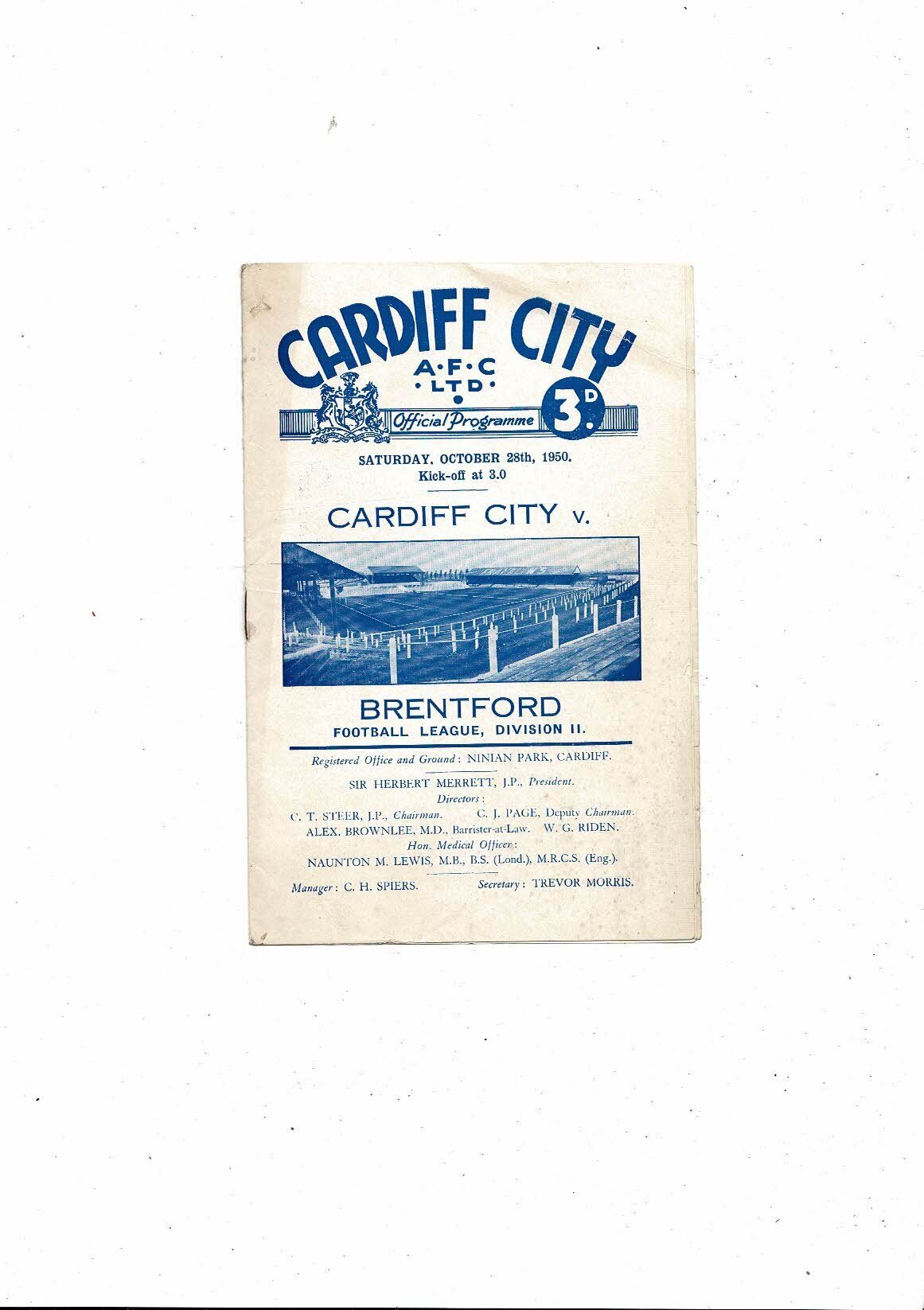 1950/51 Cardiff City v Brentford Football Programme