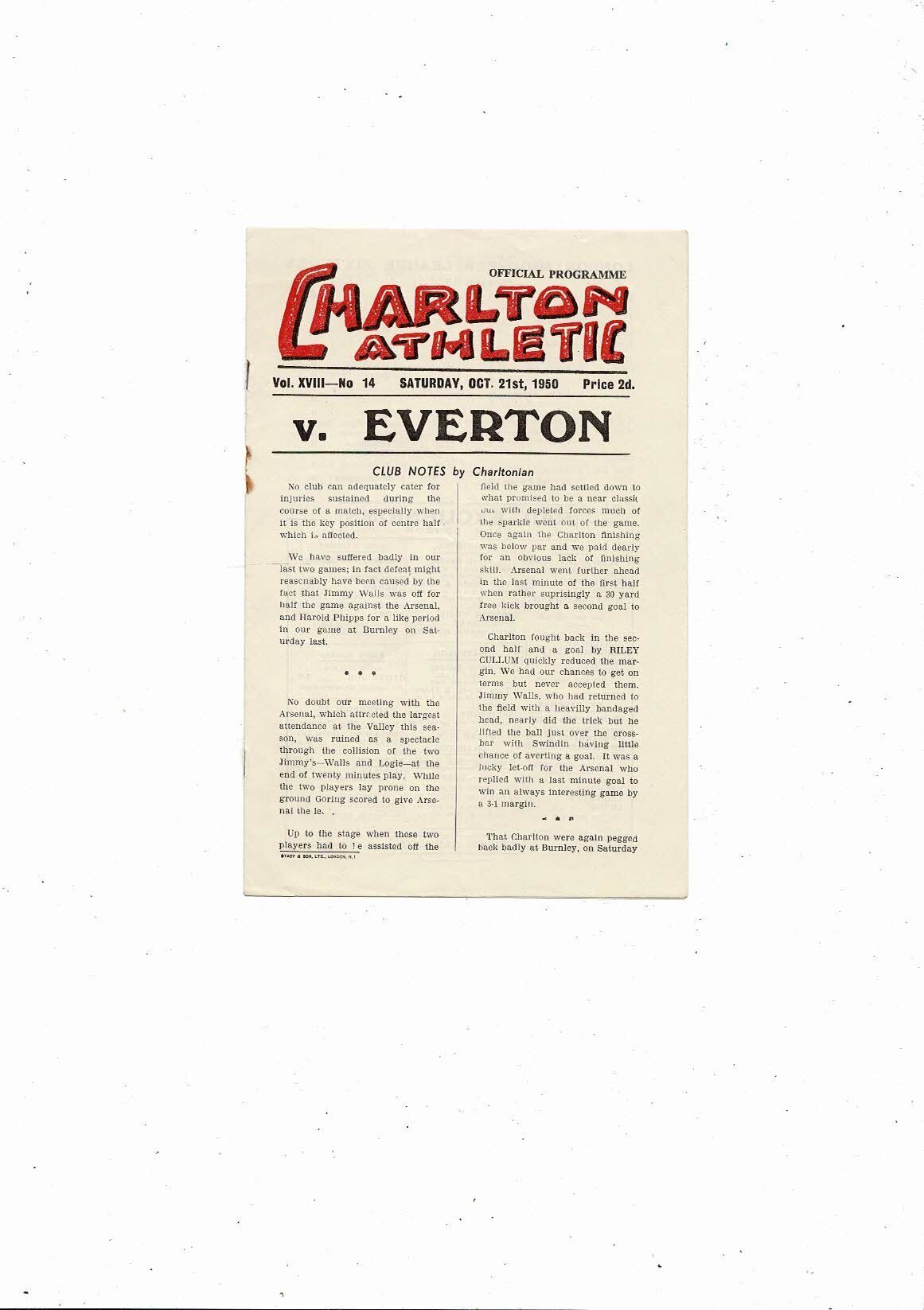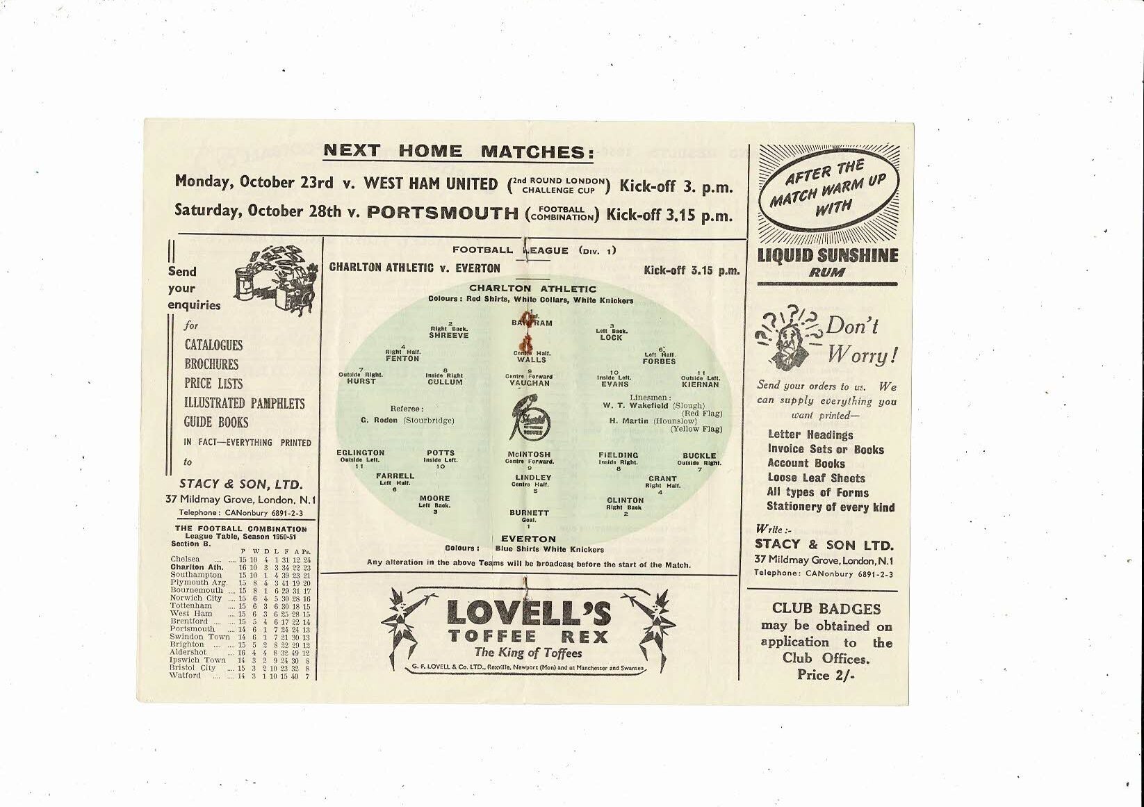 1950/51 Charlton Athletic v Everton Football Programme