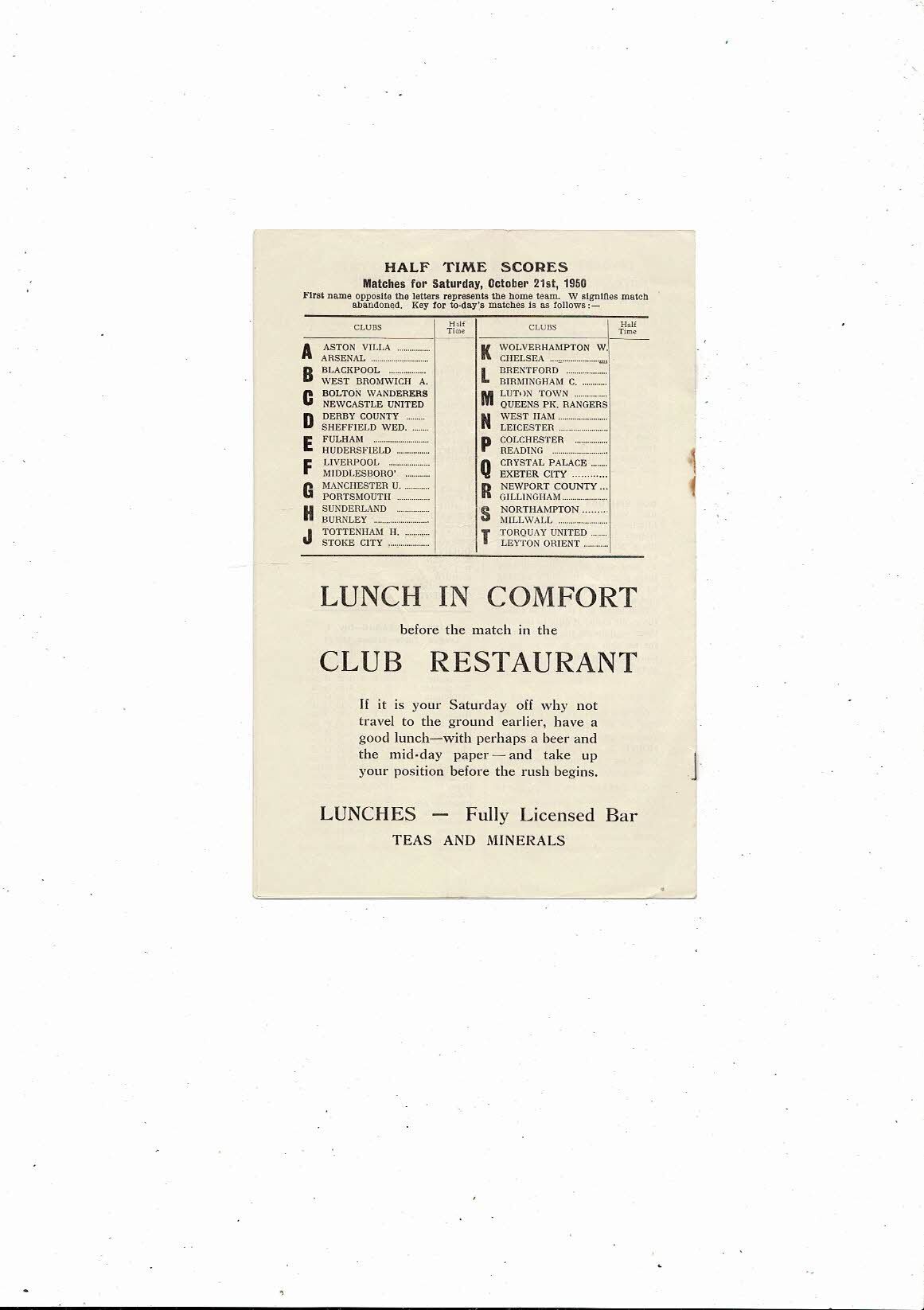 This Original Football Programme is slighty creased also has a fold with some staining, tiny nic on spine, original staple removed new staples starting to rust. No handwriting. Please see scans.