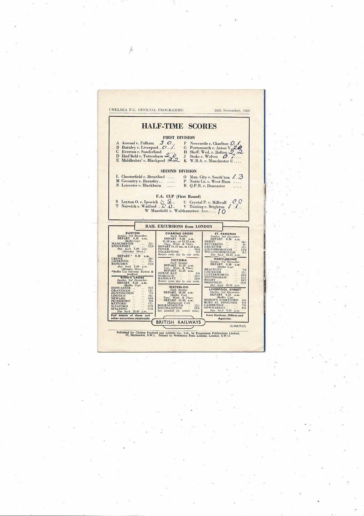 1950/51 Chelsea v Derby County Football Programme