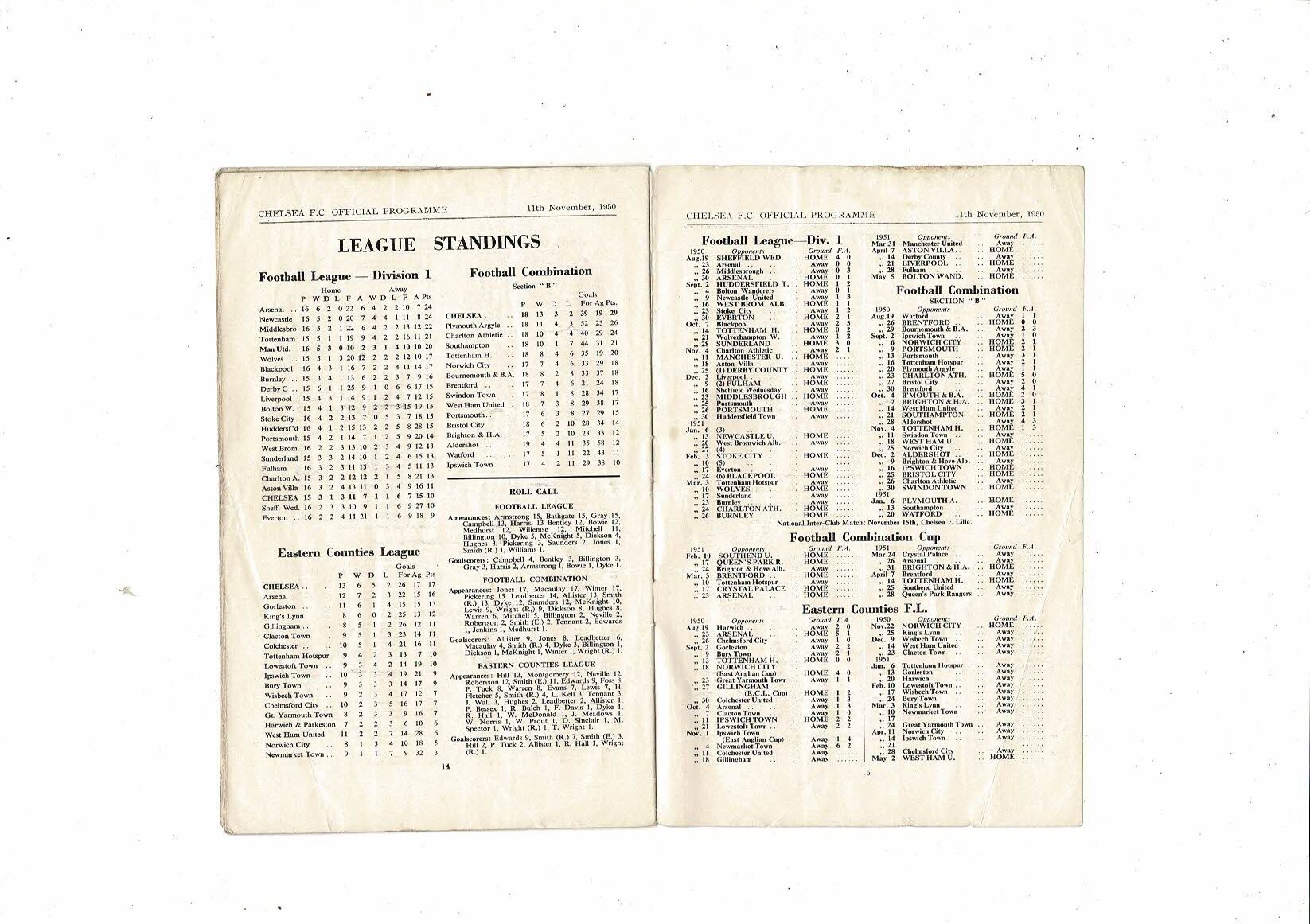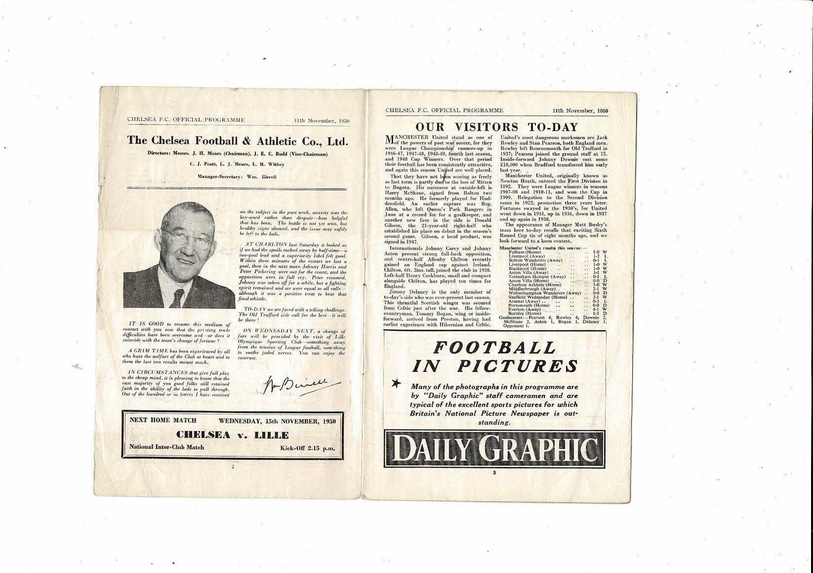 1950/51 Chelsea v Manchester United Football Programme