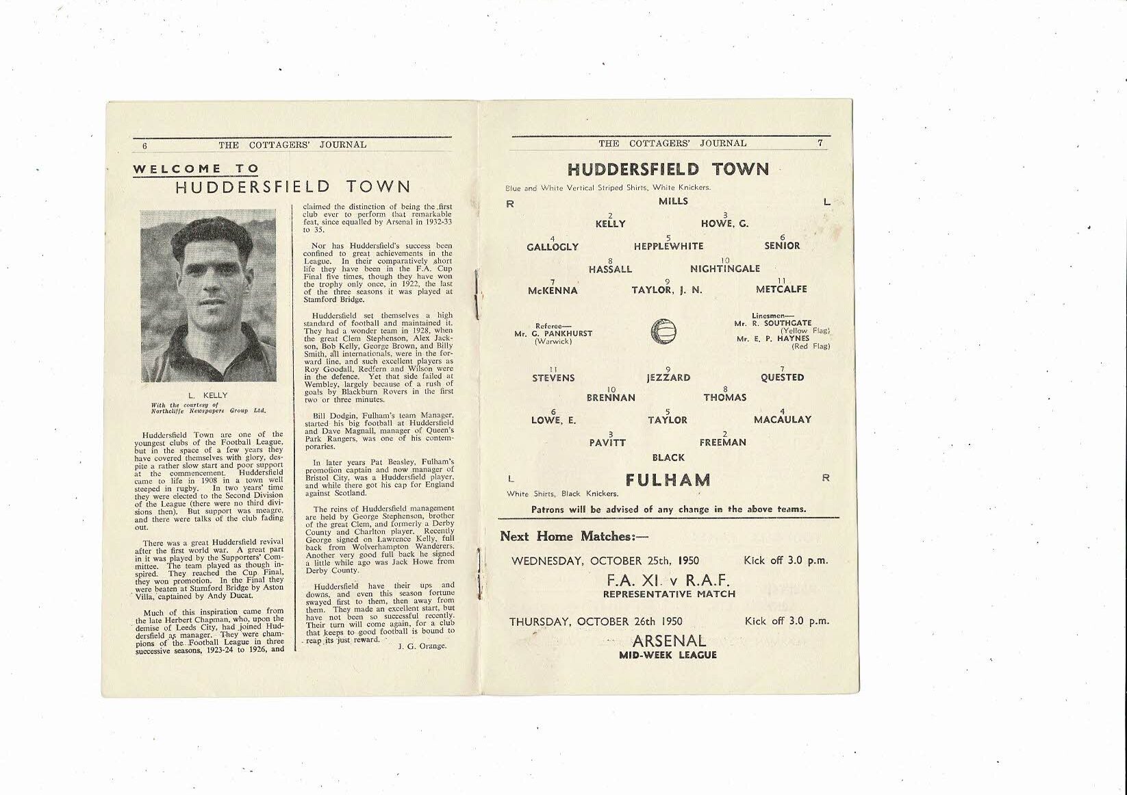 1950/51 Fulham v Huddersfield Town Football Programme