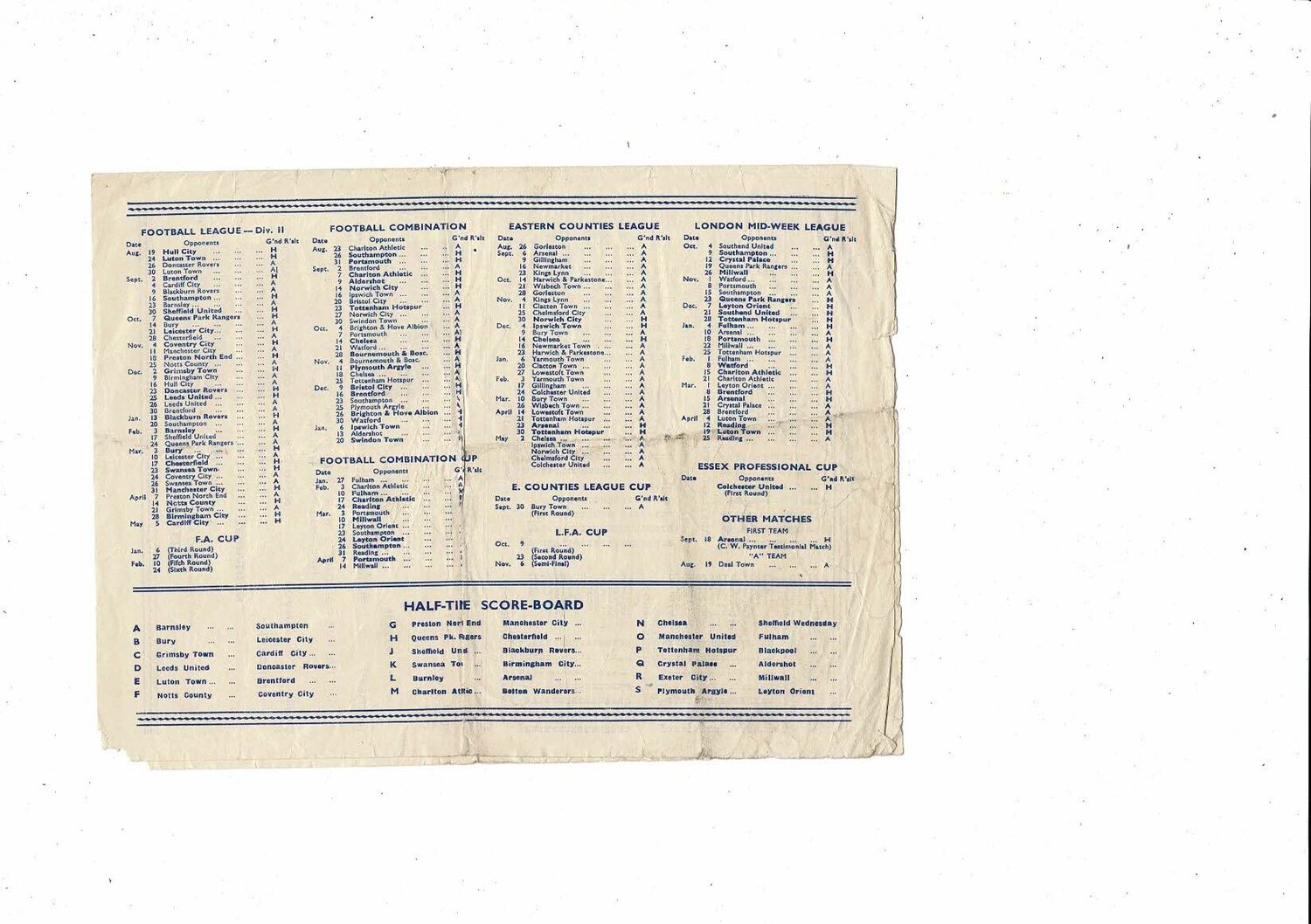 This original 4 page Football Programme is creased also has a fold with some minor staining, several small tears & small corner piece missing on both pages. No handwriting. Please see scans.