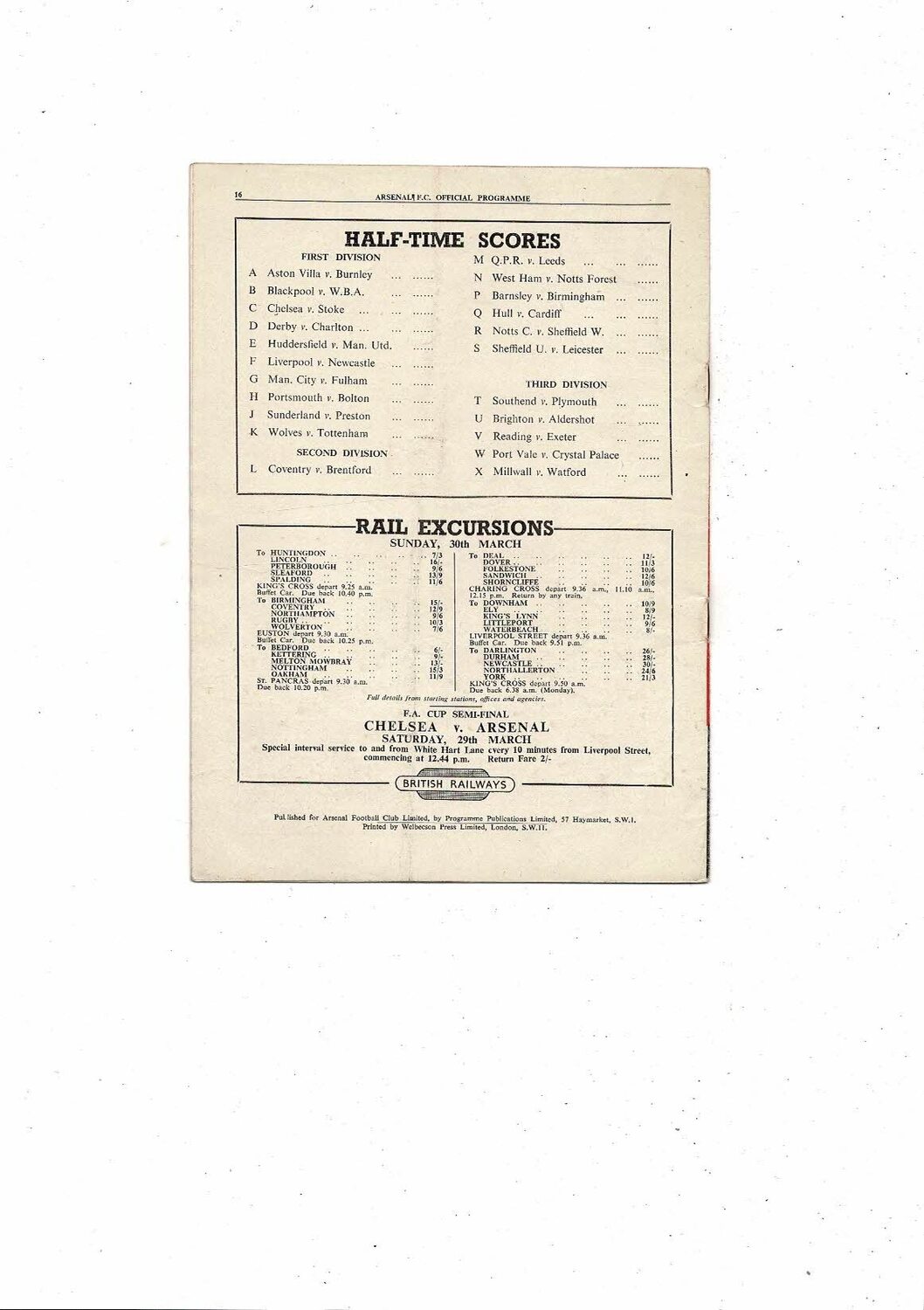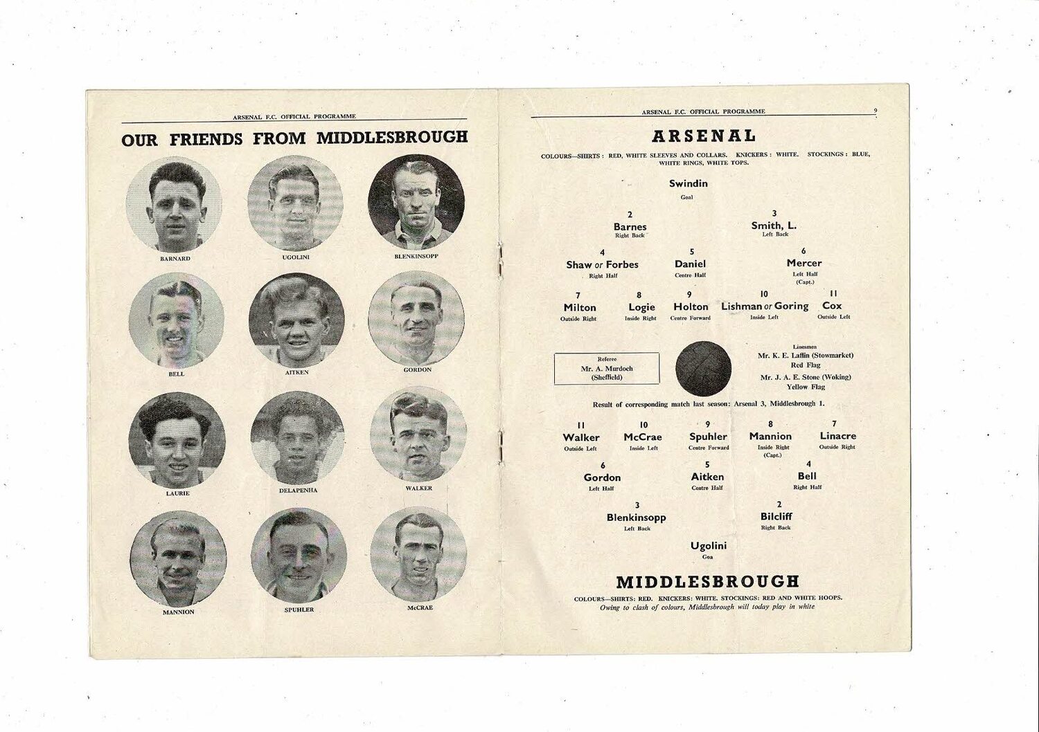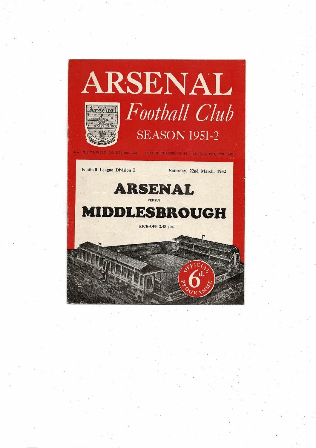 1951/52 Arsenal v Middlesbrough Football Programme
