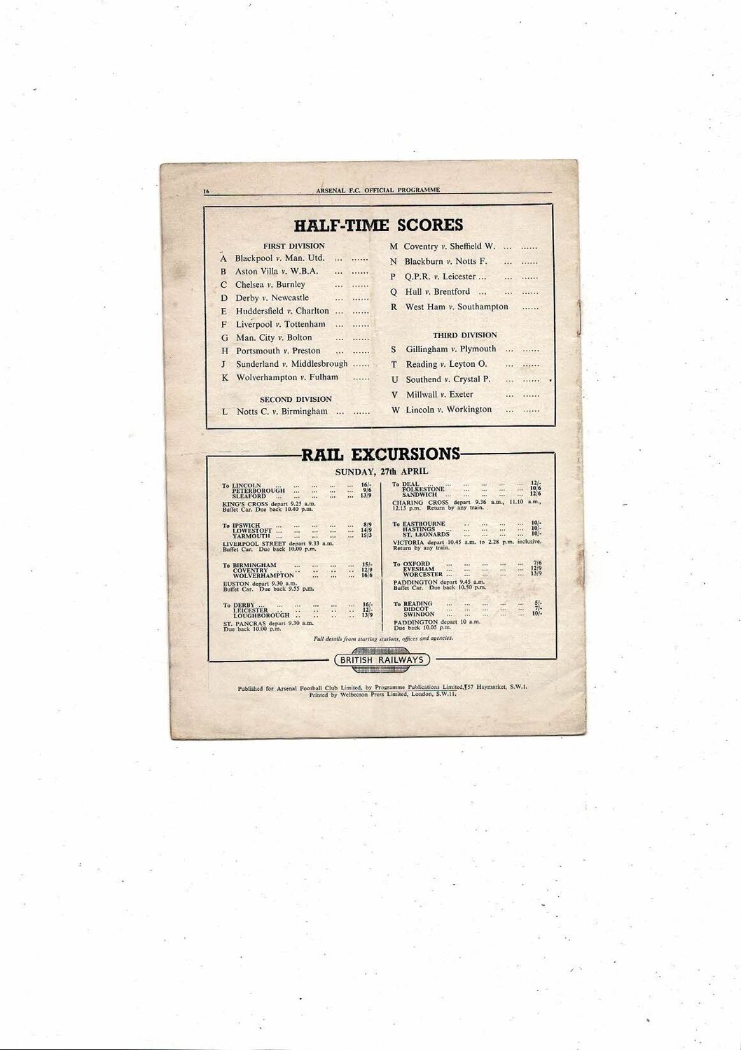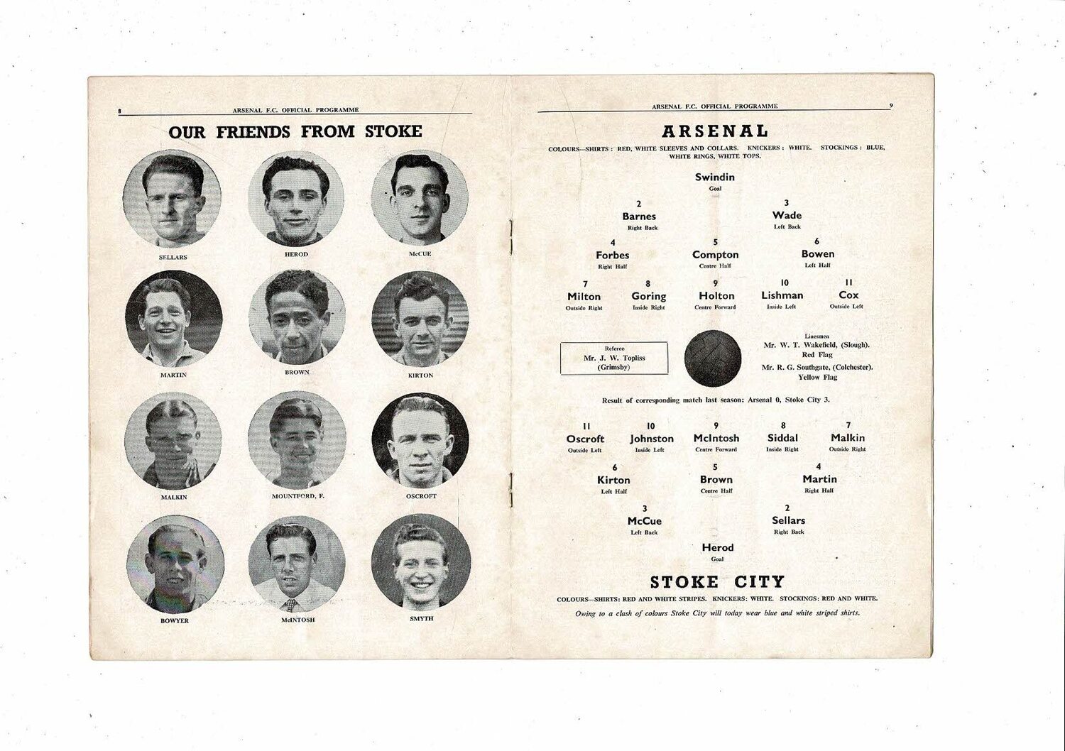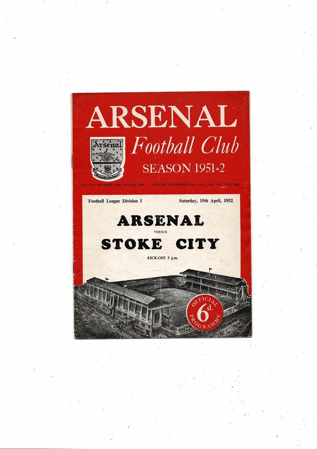 1951/52 Arsenal v Stoke City Football Programme