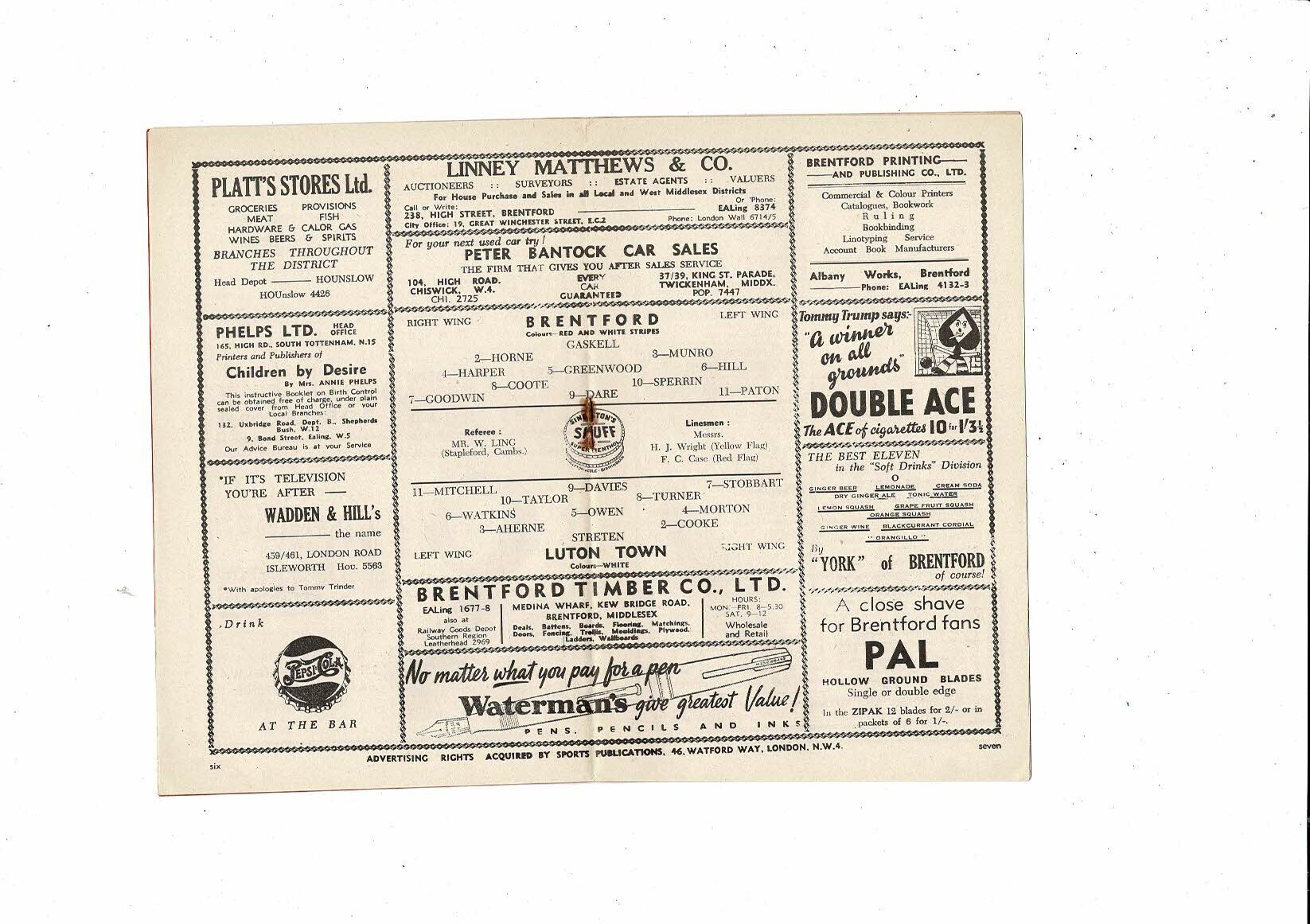 1951/52 Brentford v Luton Town FA Cup Replay Football Programme Feb 6th