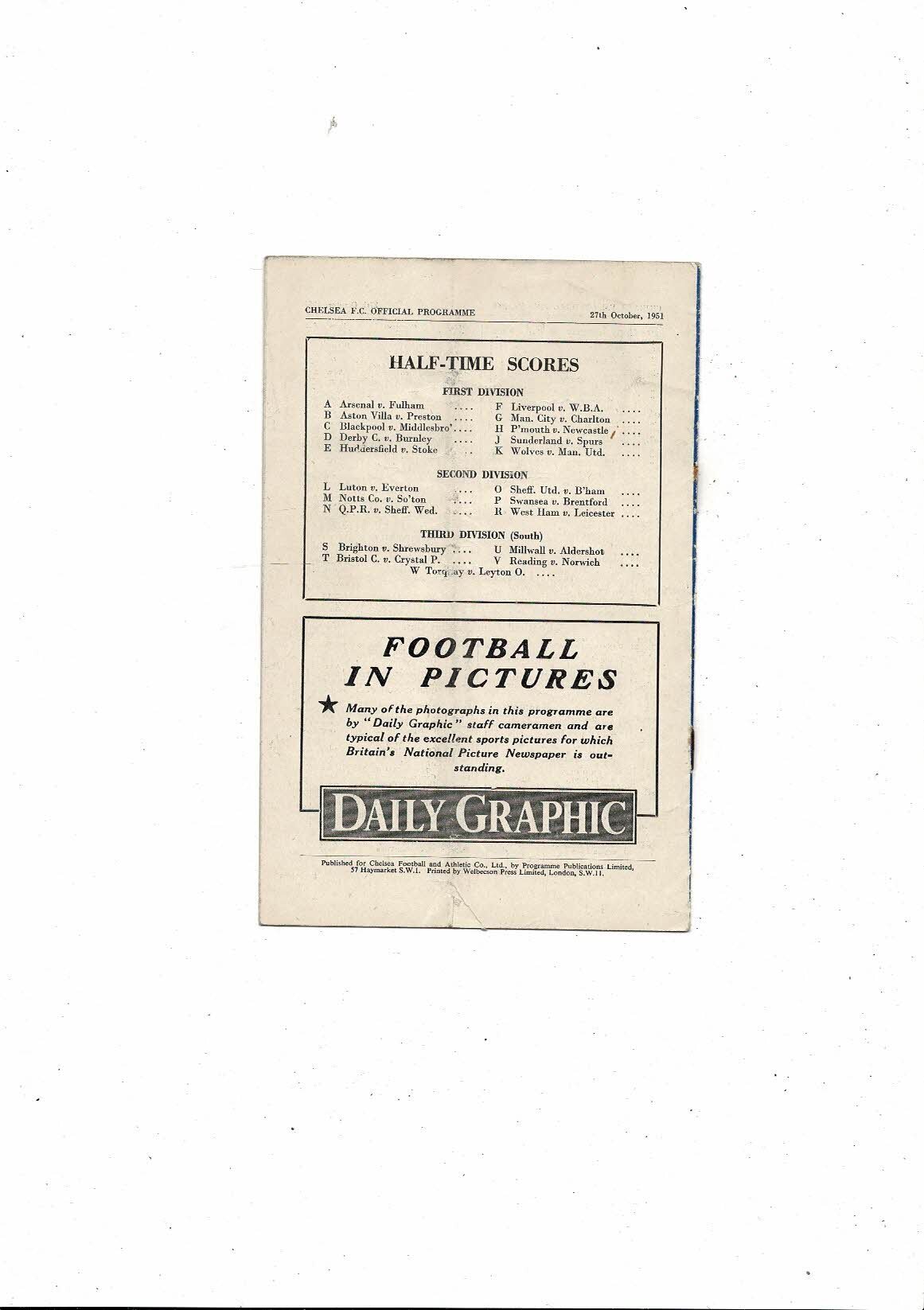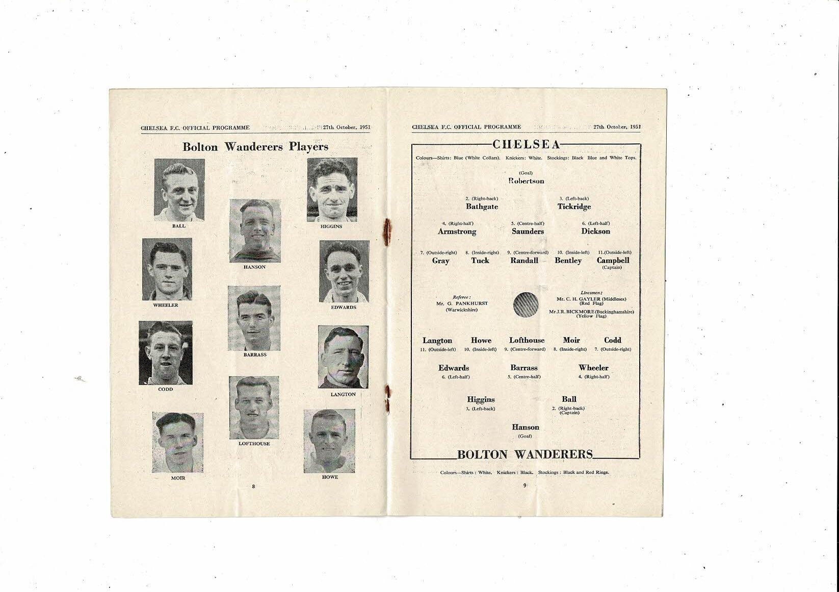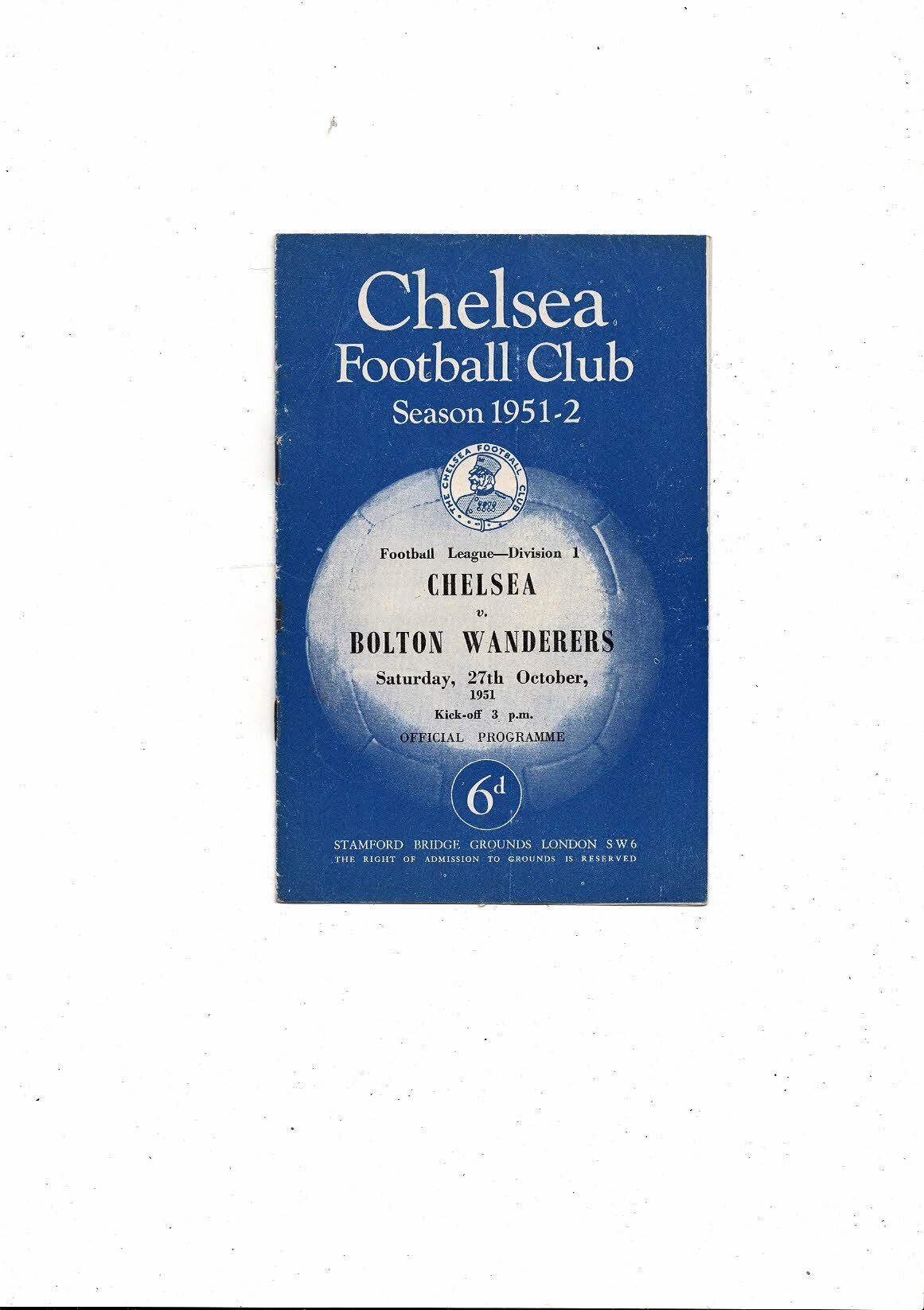 1951/52 Chelsea v Bolton Wanderers Football Programme