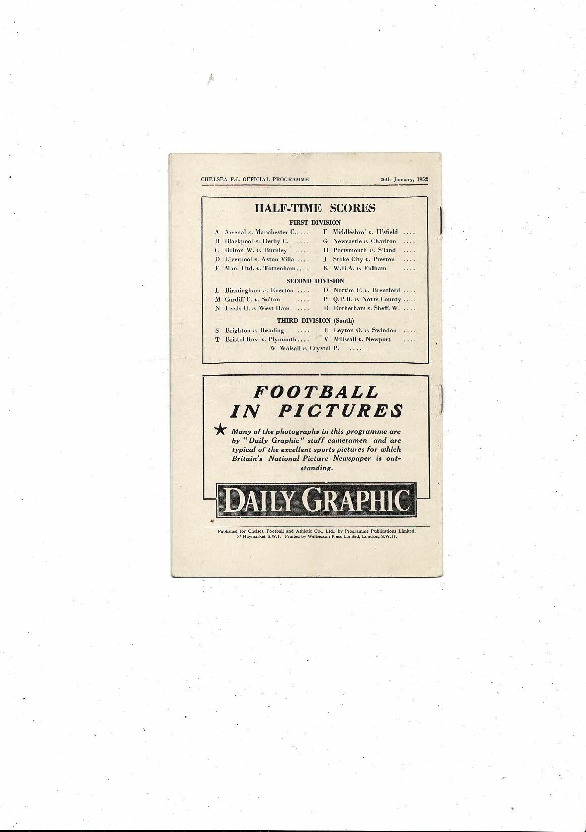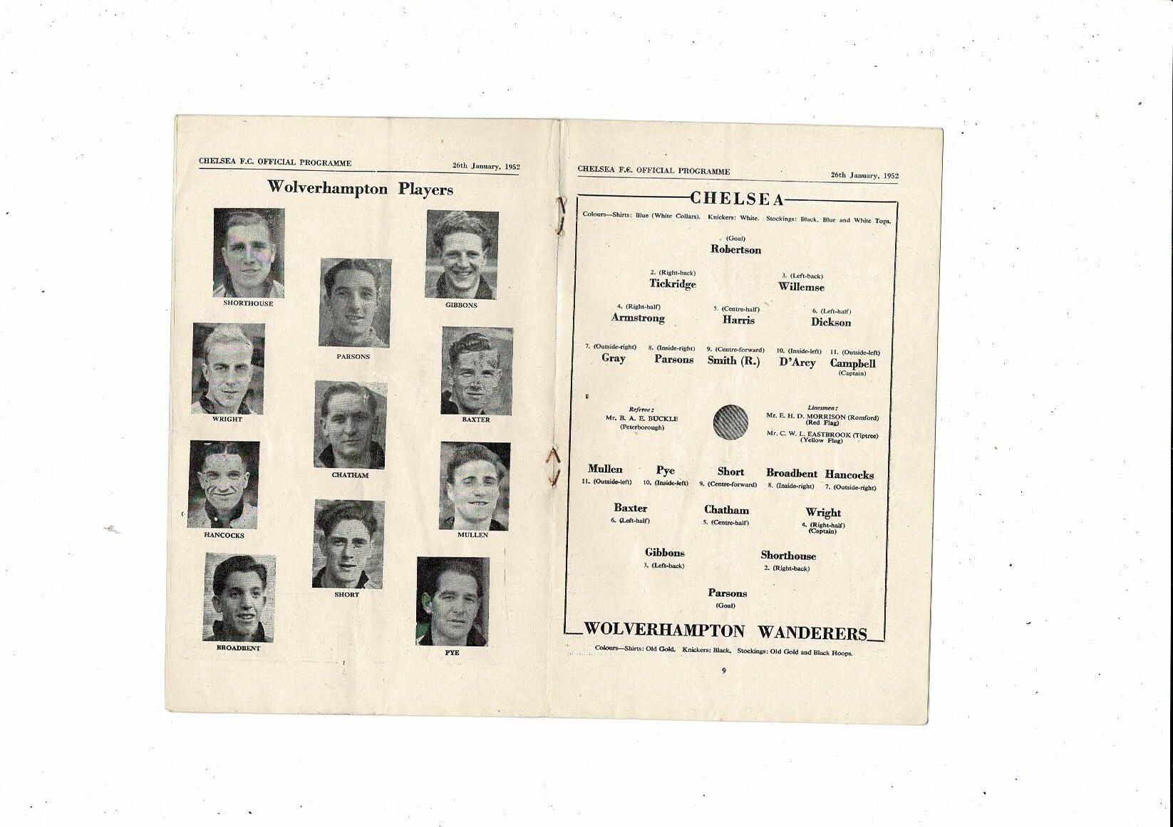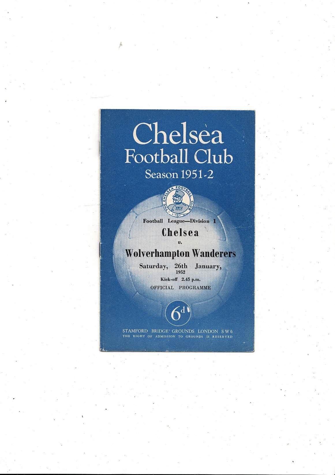 1951/52 Chelsea v Wolves Football Programme