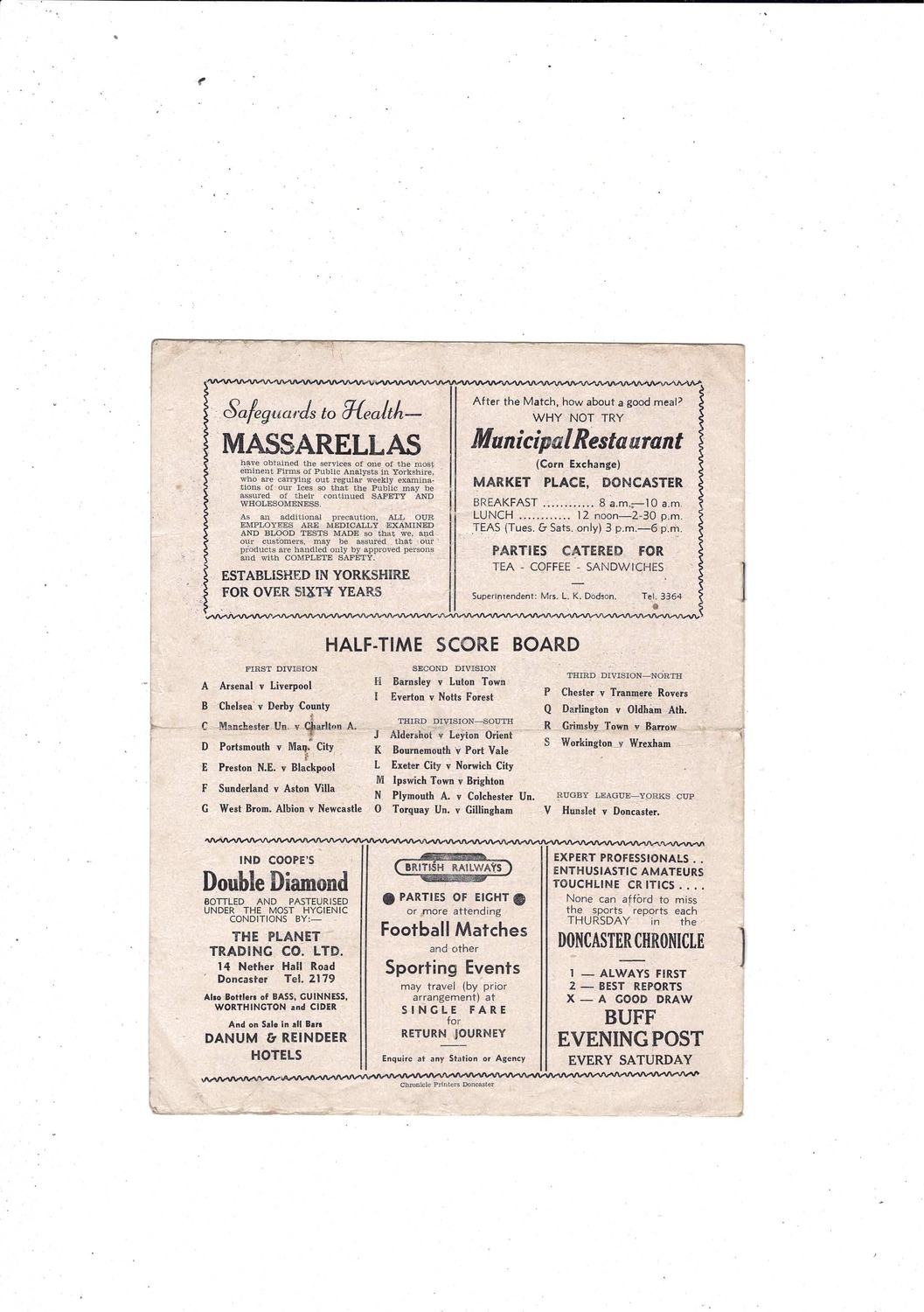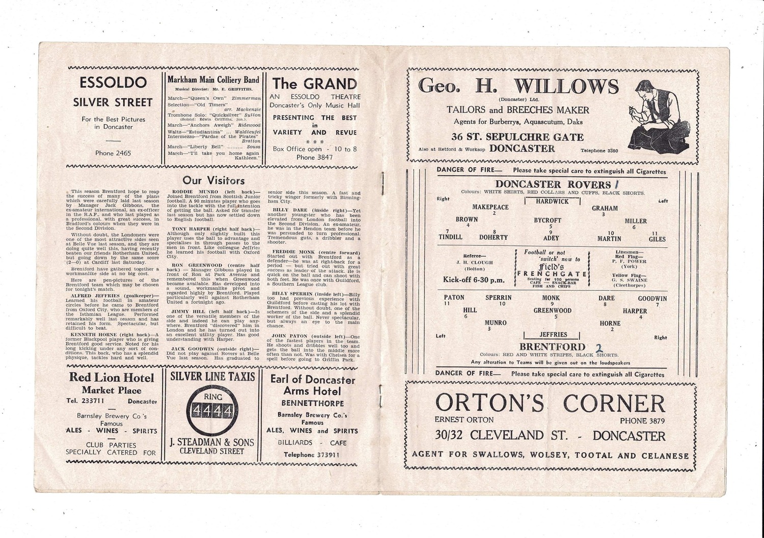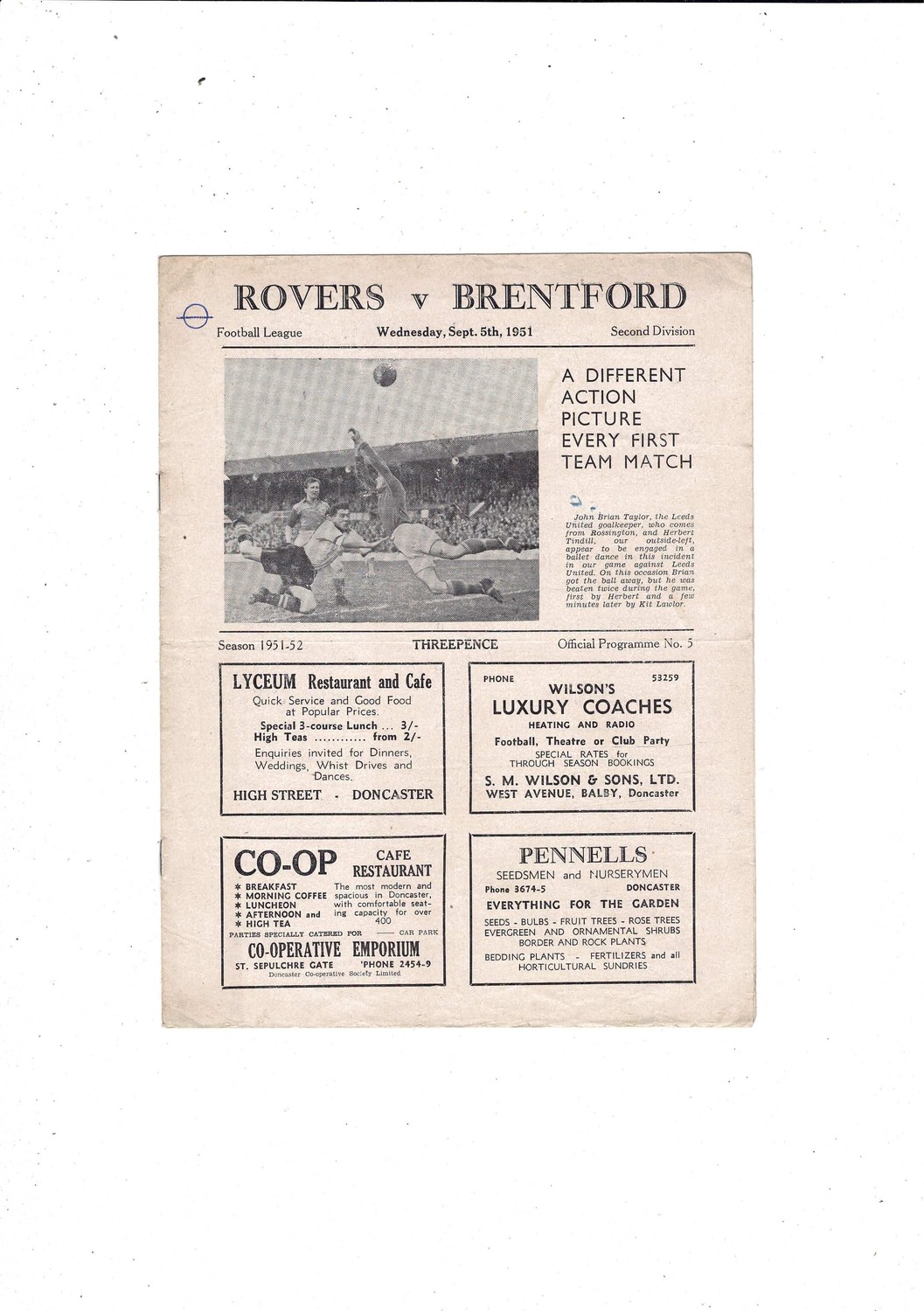 1951/52 Doncaster Rovers v Brentford Football Programme