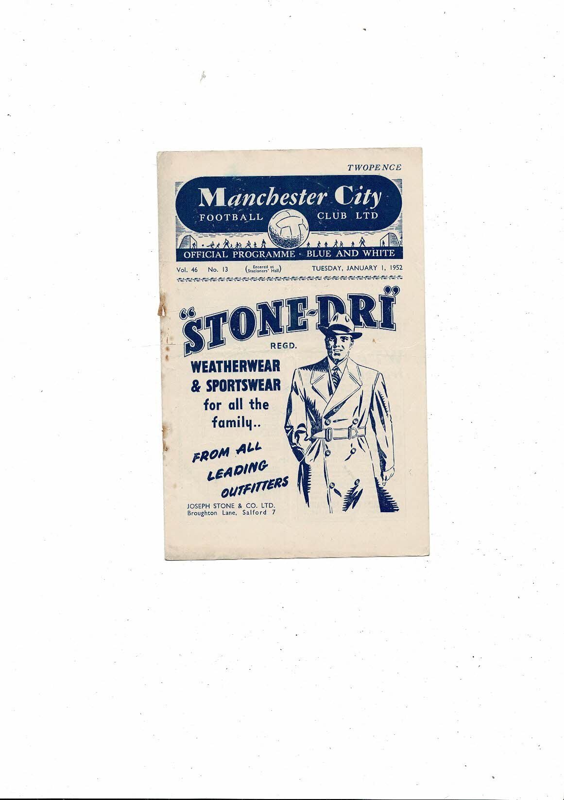 1951/52 Manchester City v Portsmouth Football Programme