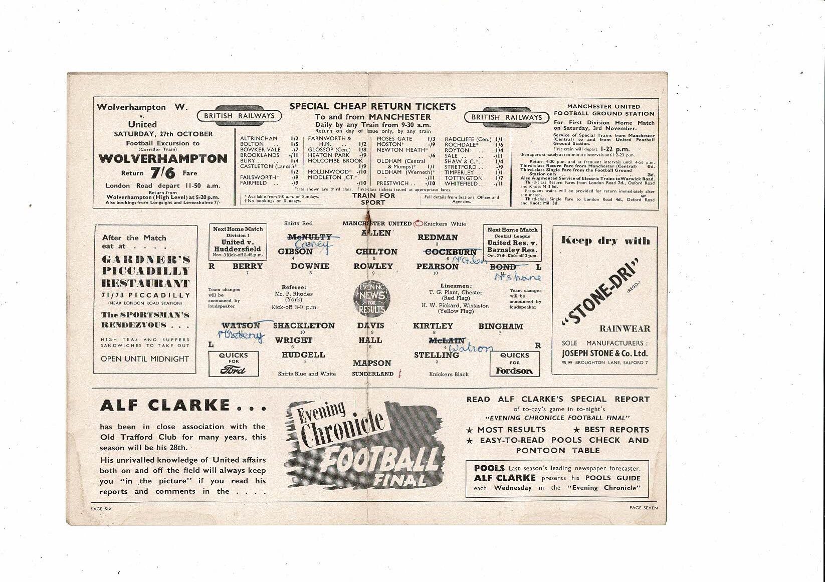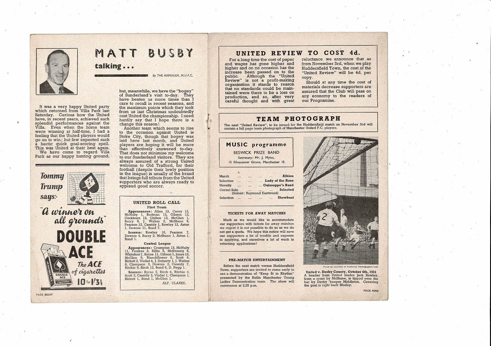 1951/52 Manchester United v Sunderland Football Programme