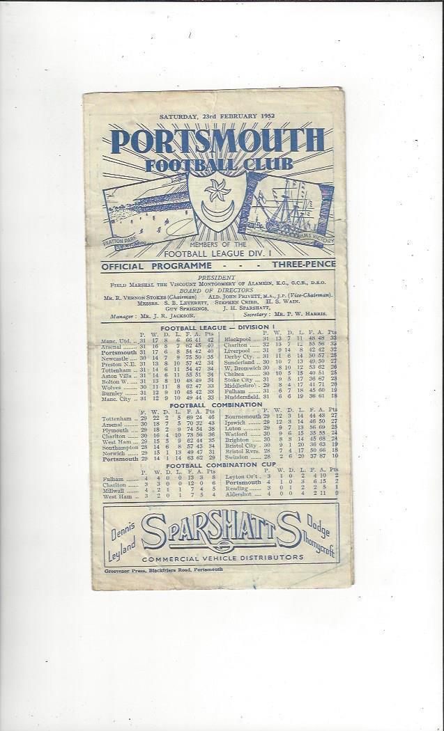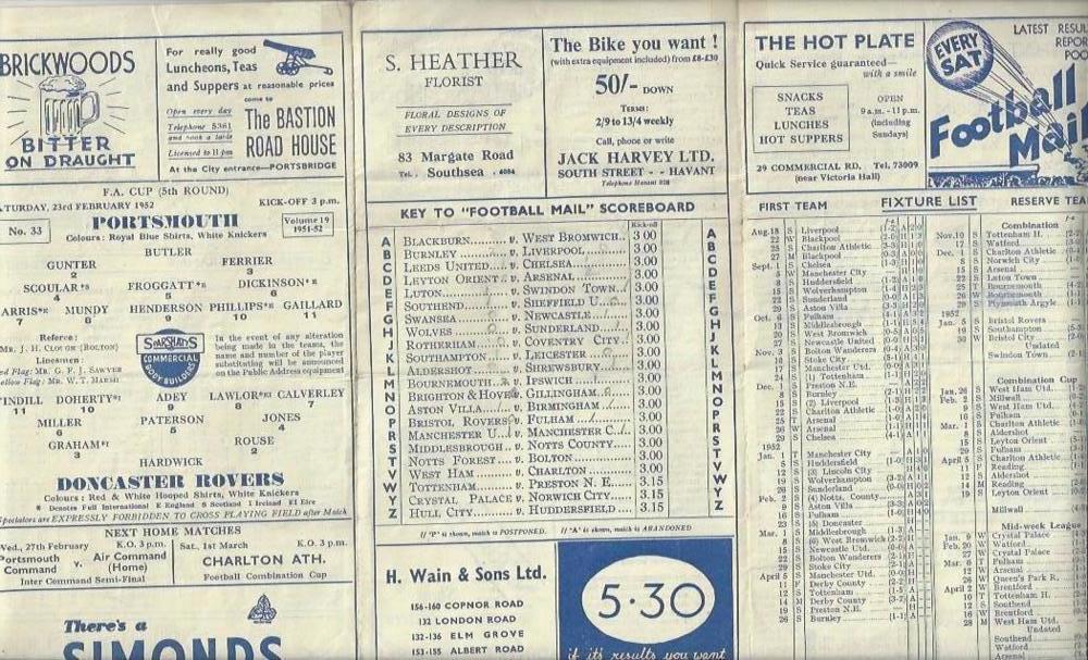 1951/52 Portsmouth v Doncaster Rovers FA Cup Football Programme