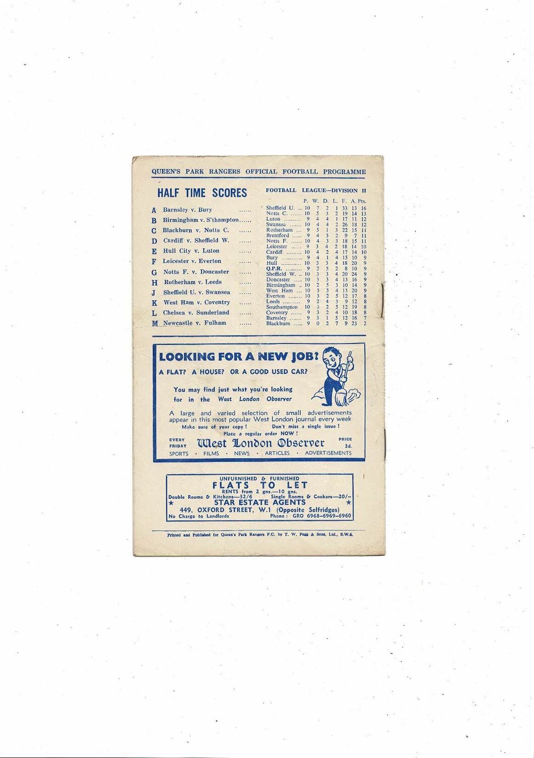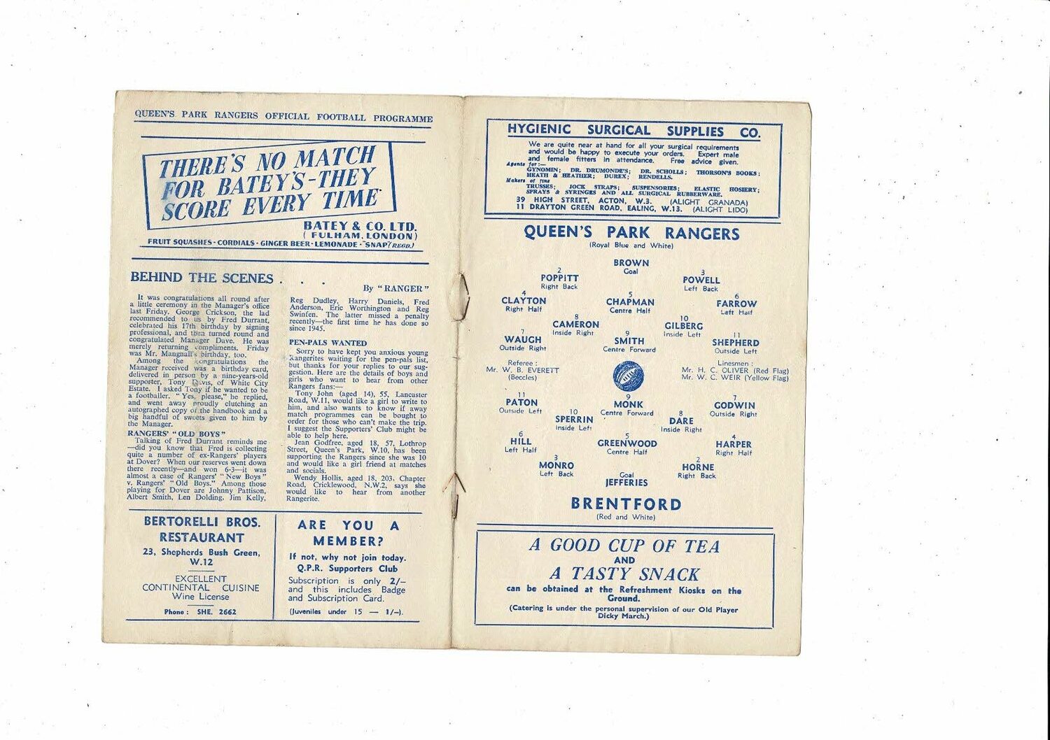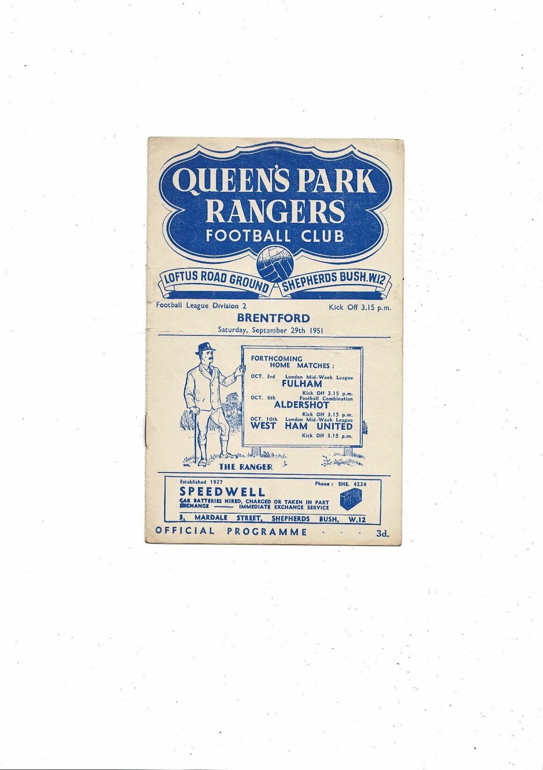 1951/52 Queens Park Rangers v Brentford Football Programme
