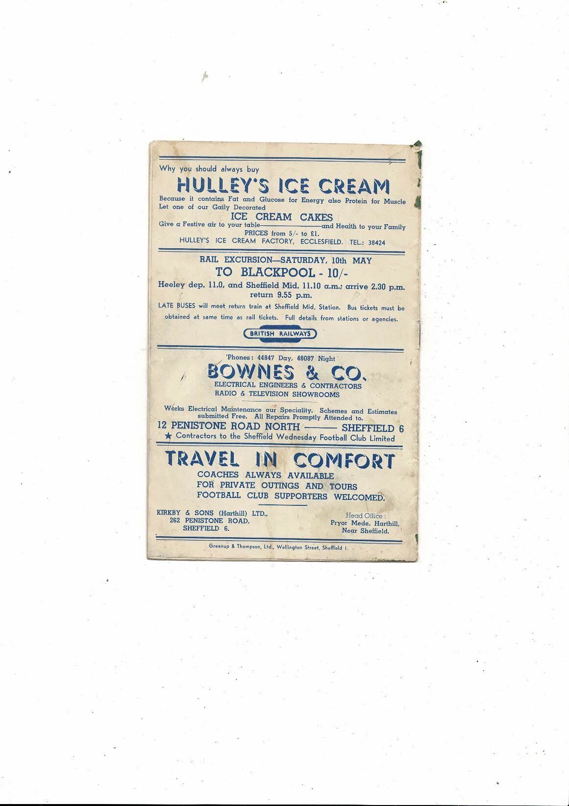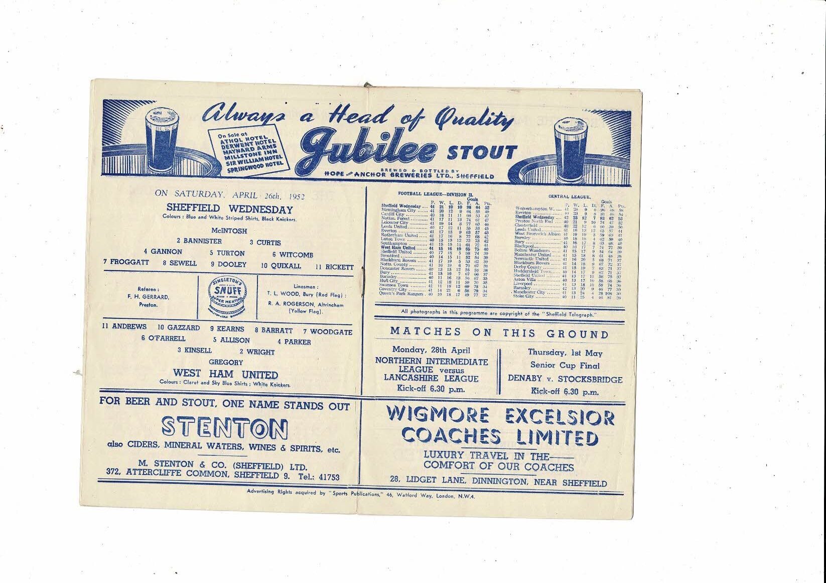 1951/52 Sheffield Wednesday v West Ham United Championship Edition Programme