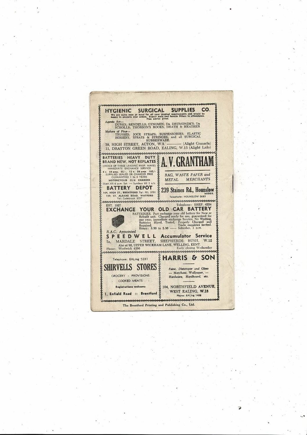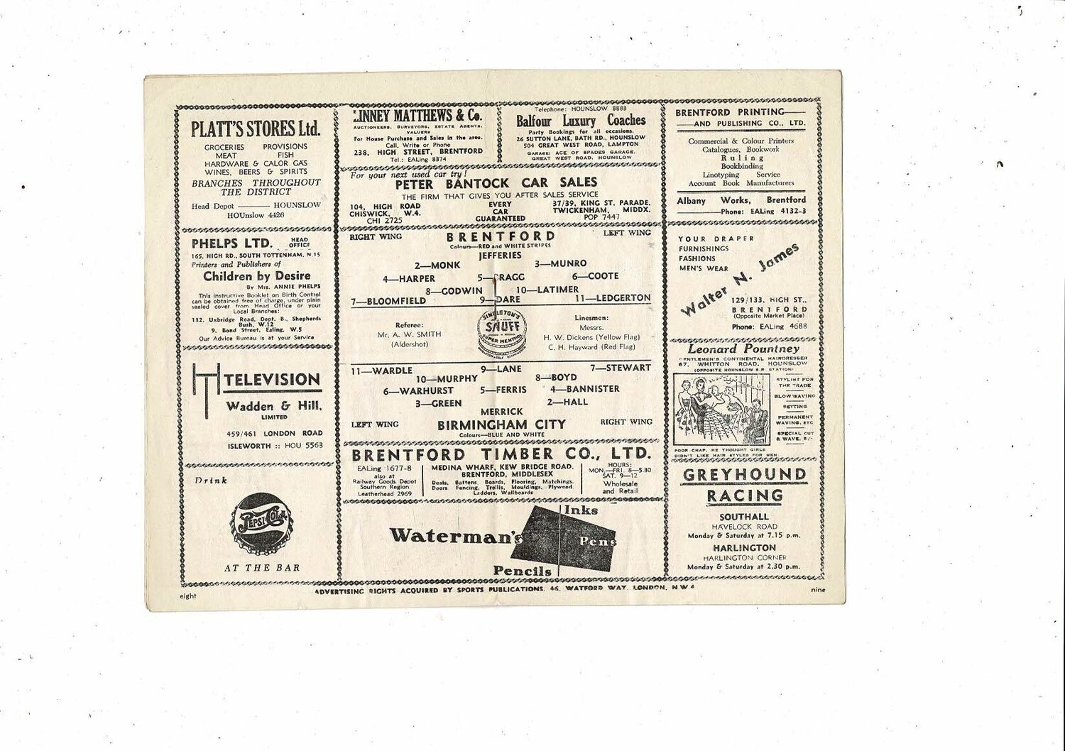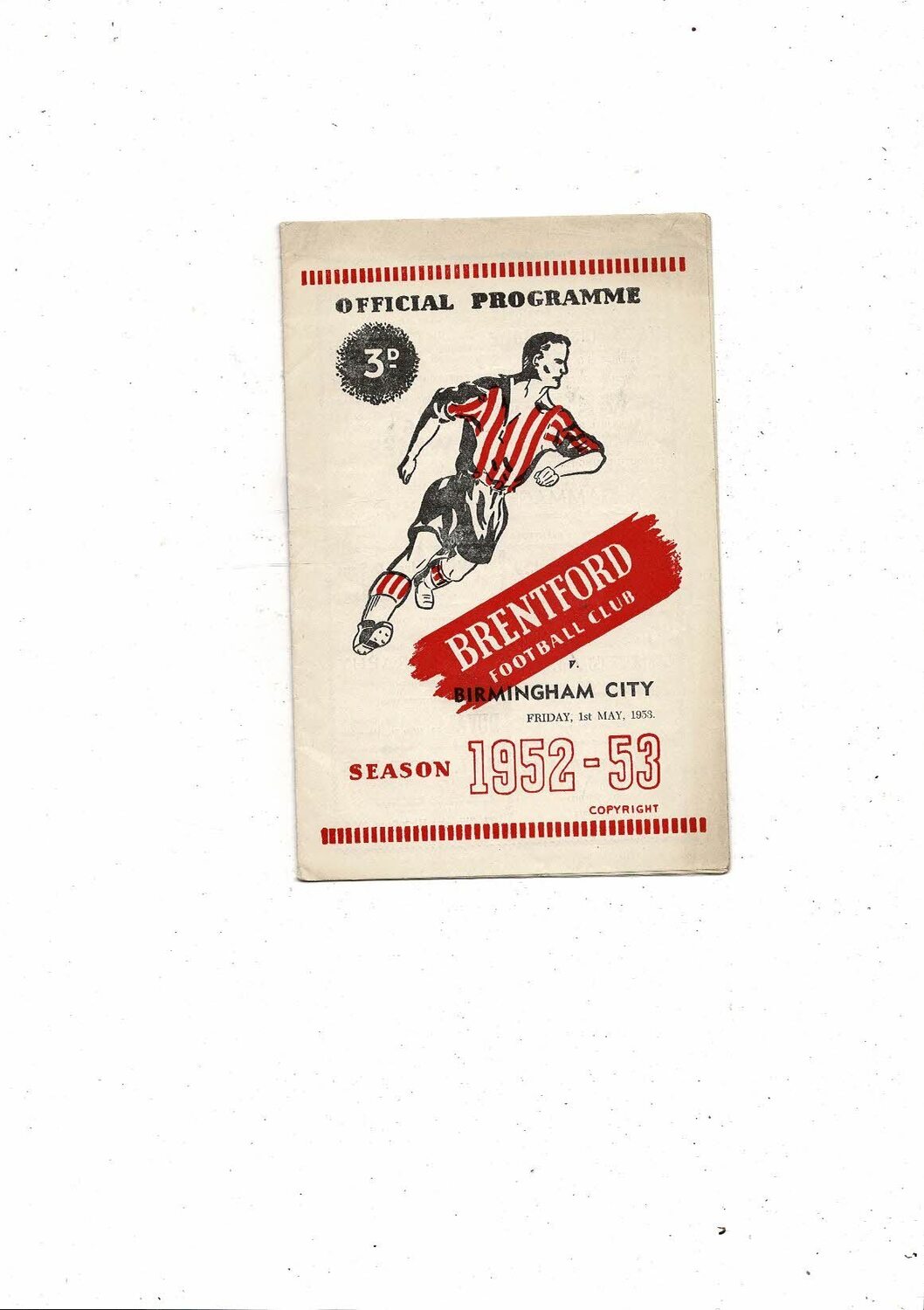1952/53 Brentford v Birmingham City Football Programme
