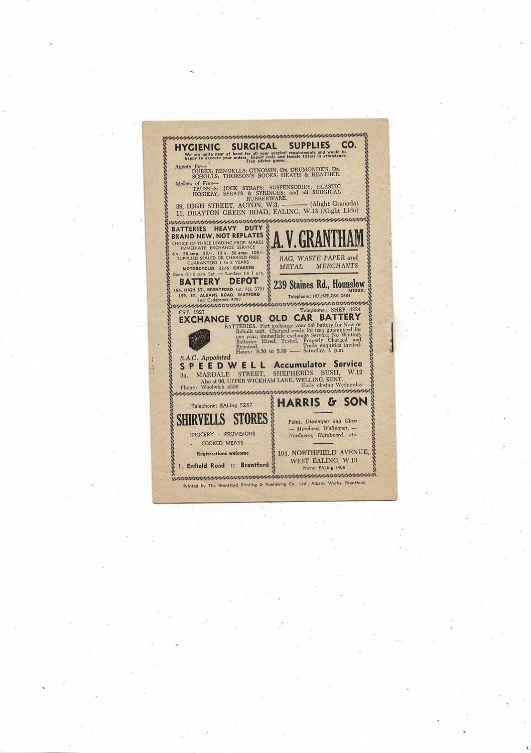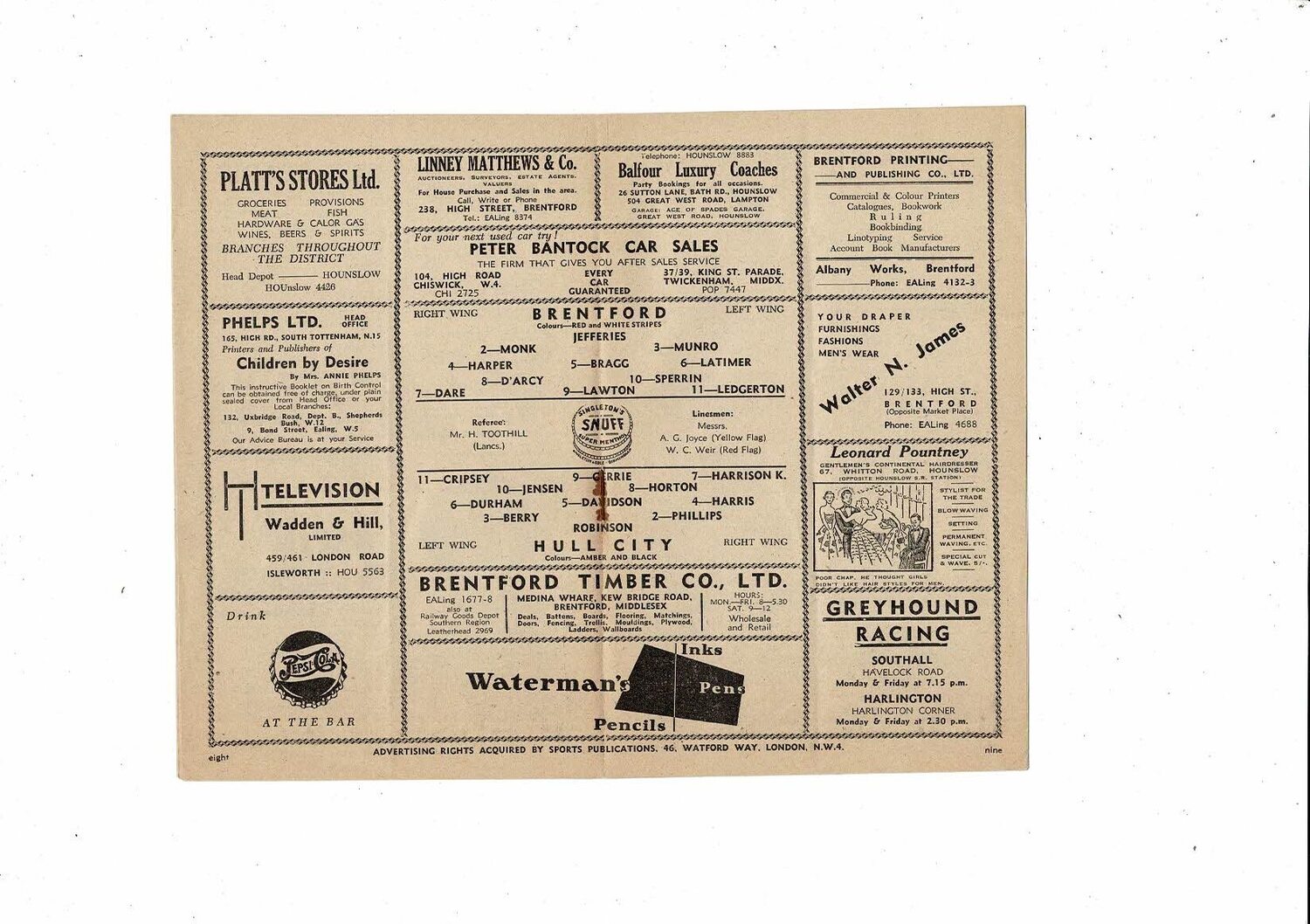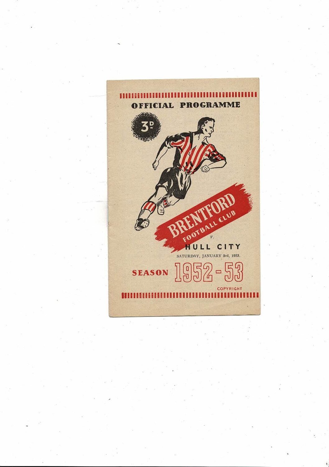 1952/53 Brentford v Hull City Football Programme