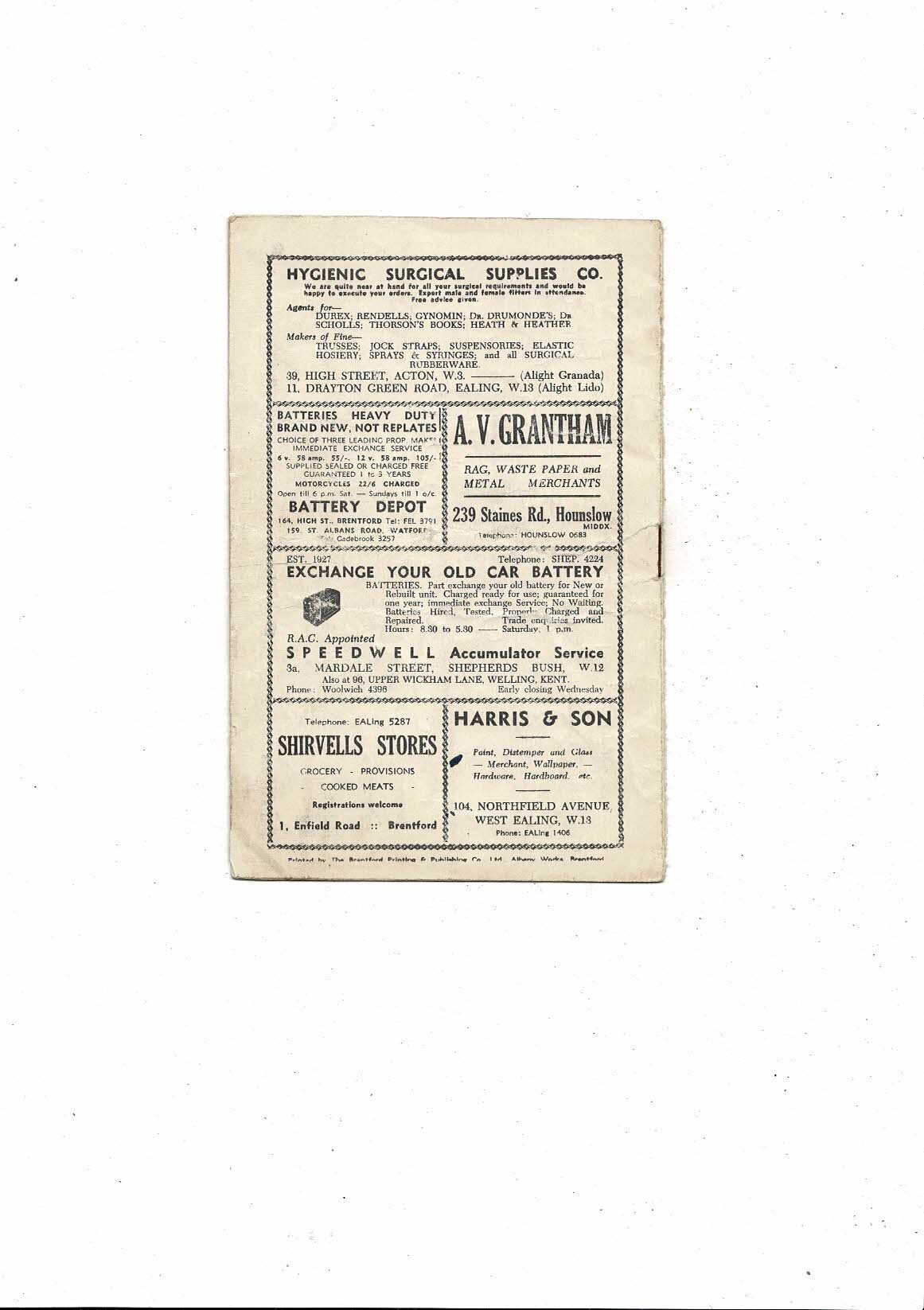 This original Football Programme is tatty, creased & folded with some staining, couple of tiny nics, covers almost detached from each other, small hole on front, rusty staple, score on front.