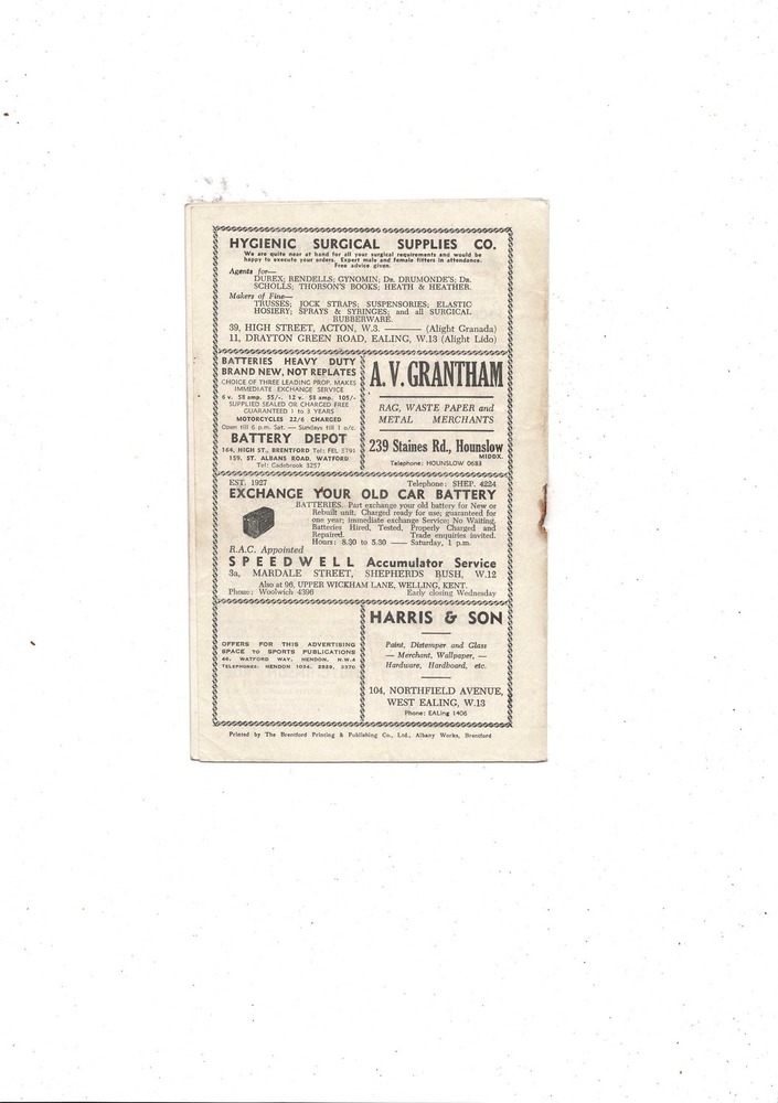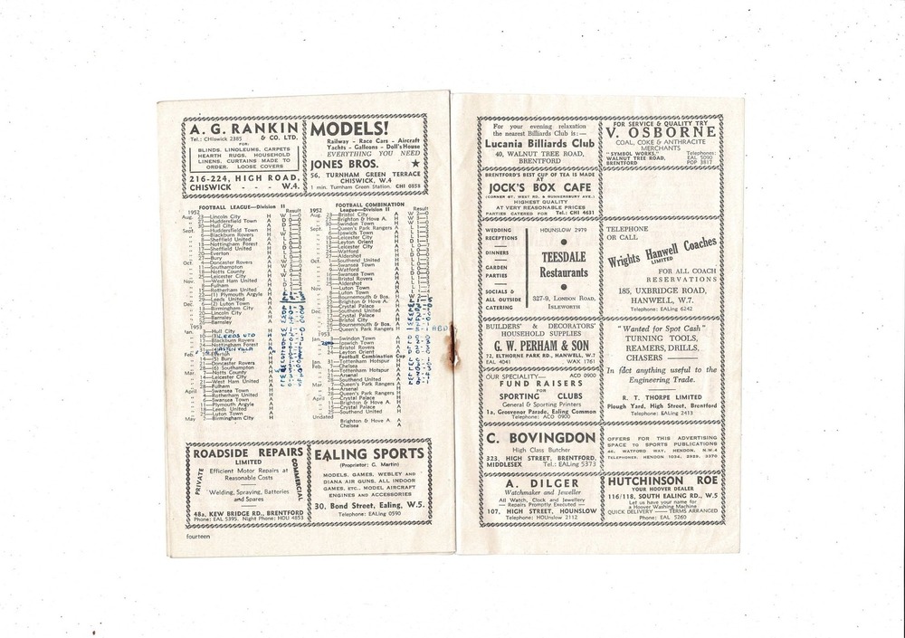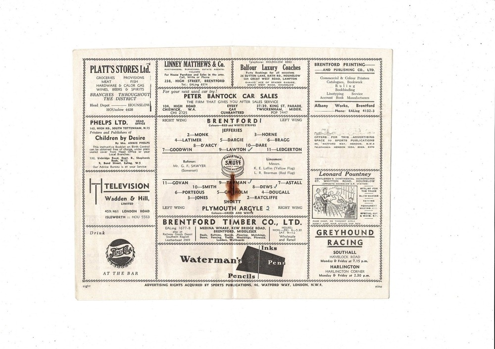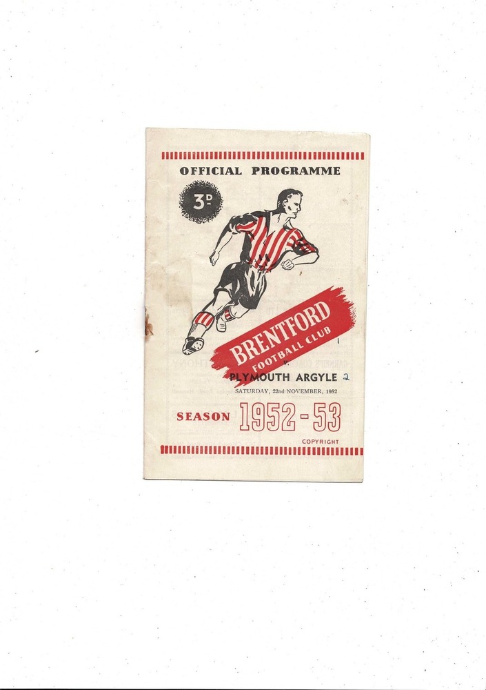 1952/53 Brentford v Plymouth Argyle Football Programme