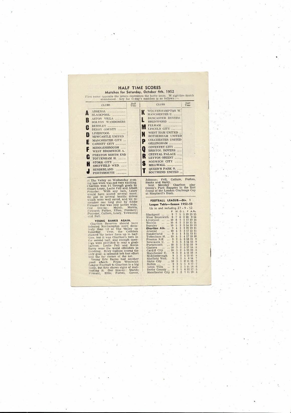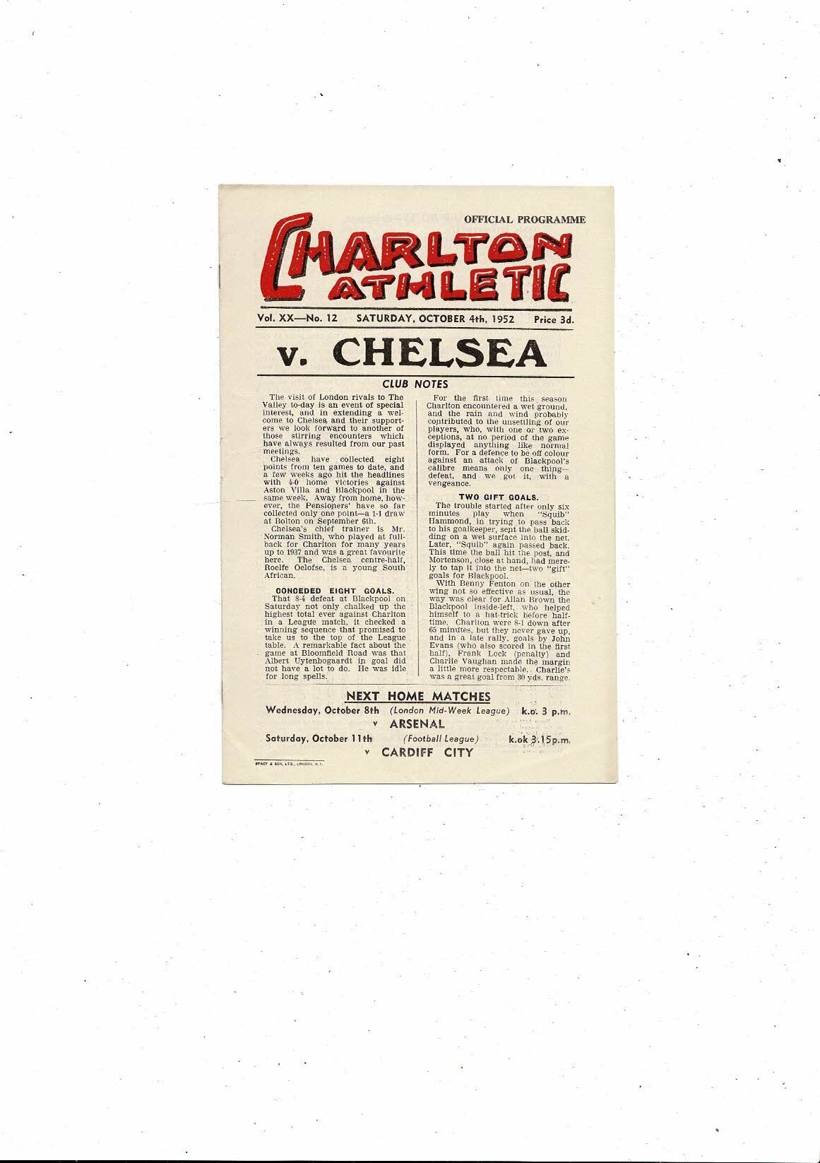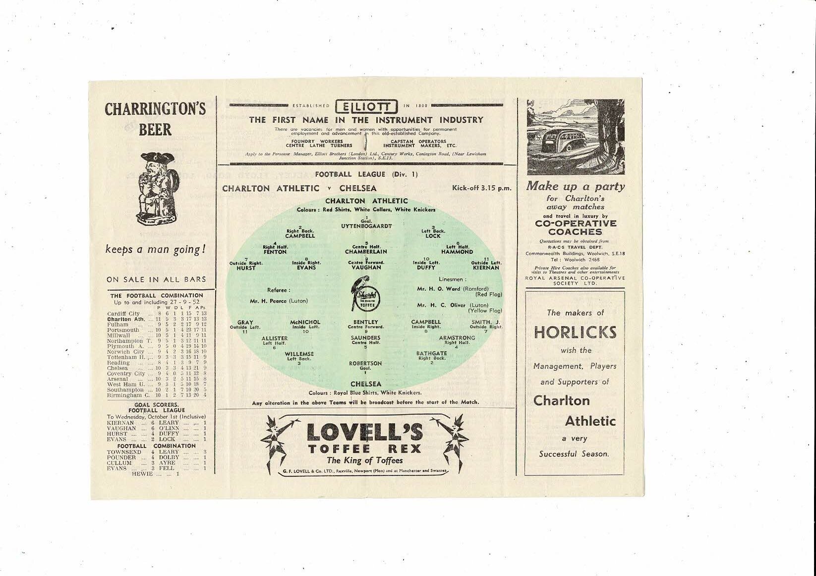1952/53 Charlton Athletic v Chelsea Football Programme