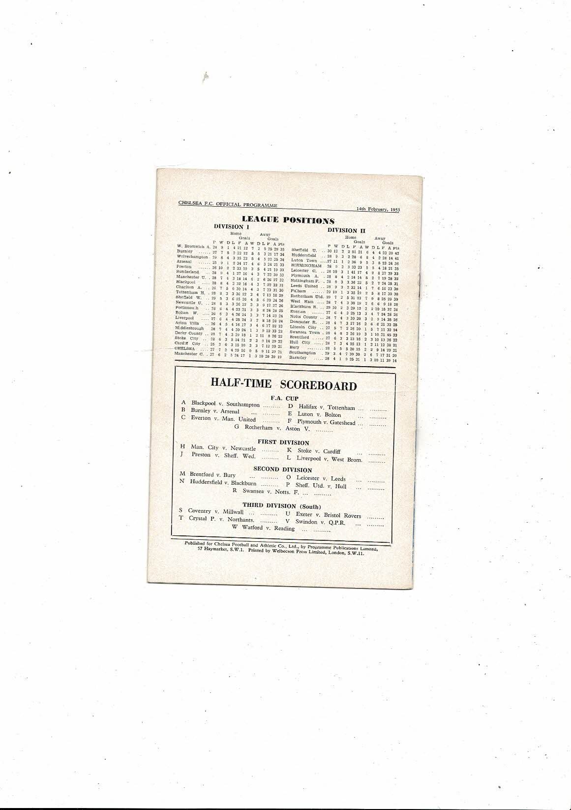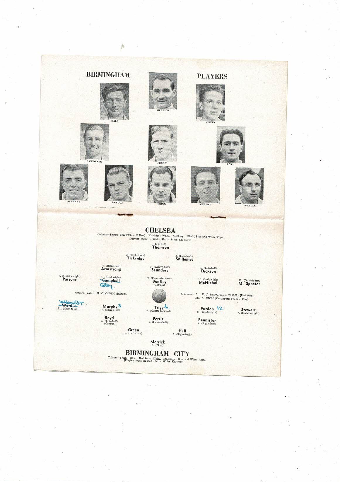 1952/53 Chelsea v Birmingham City FA Cup Football Programme