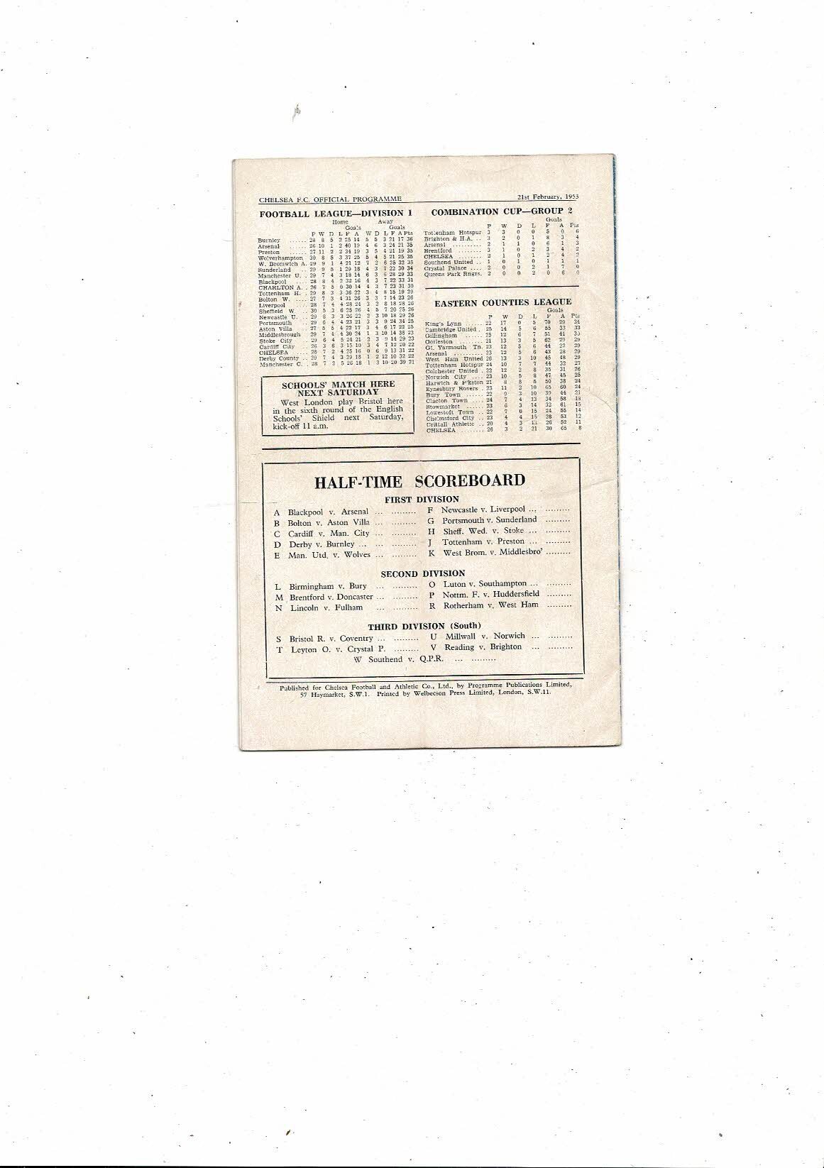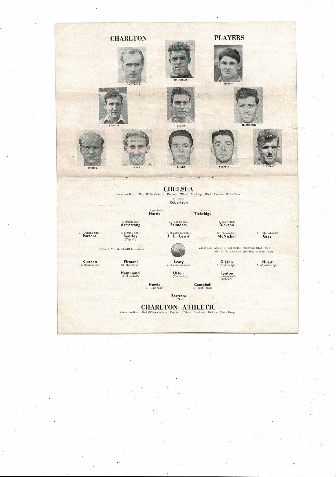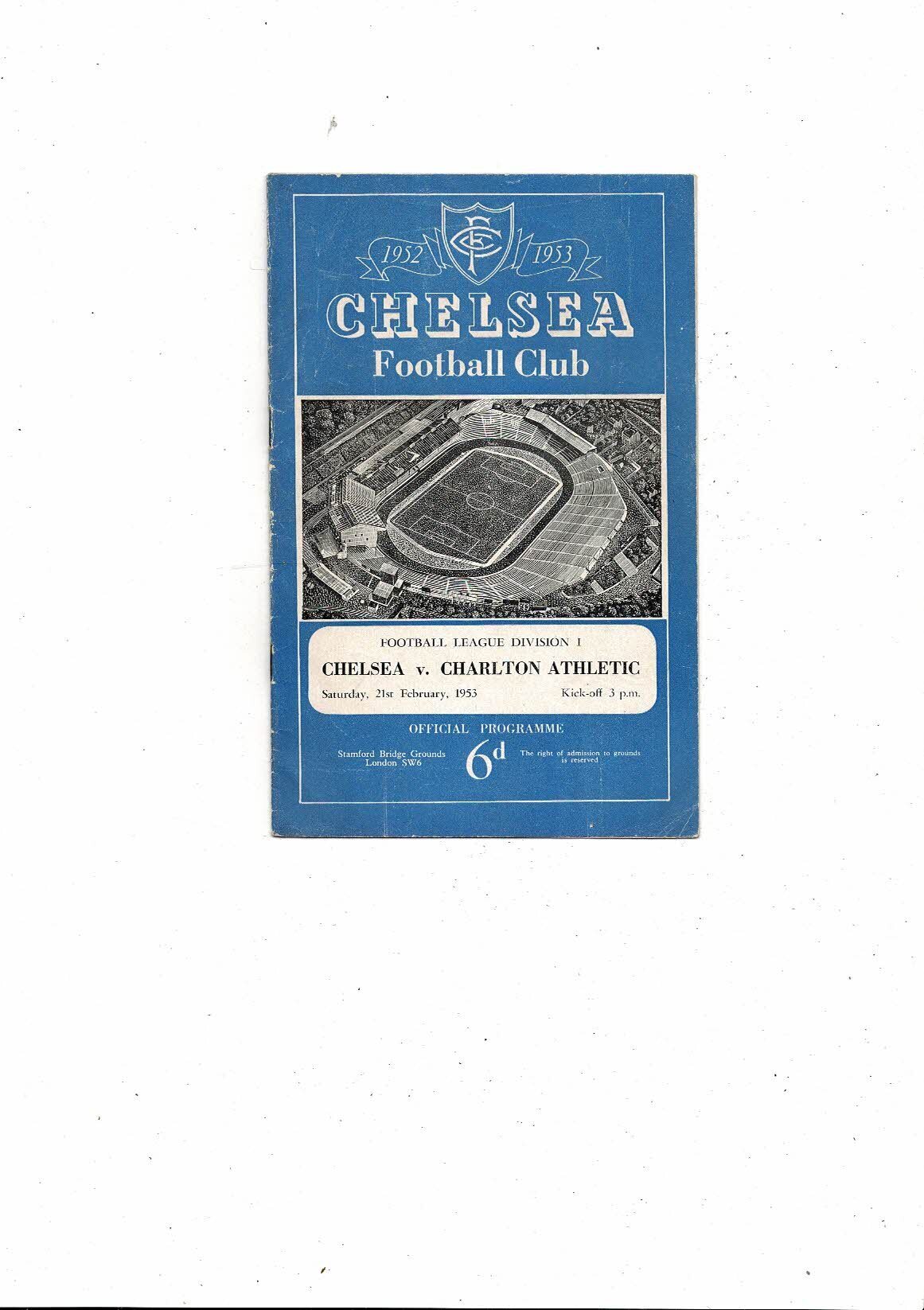 1952/53 Chelsea v Charlton Athletic Football Programme