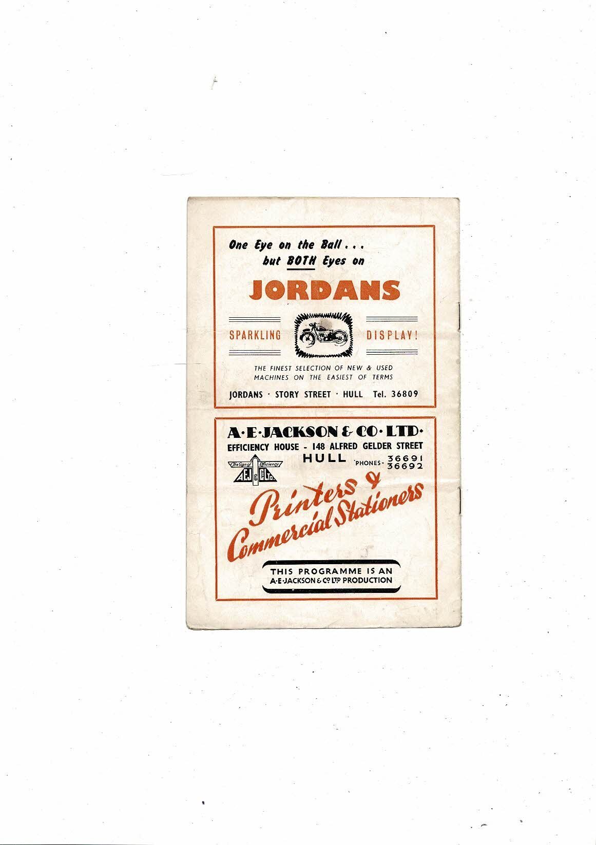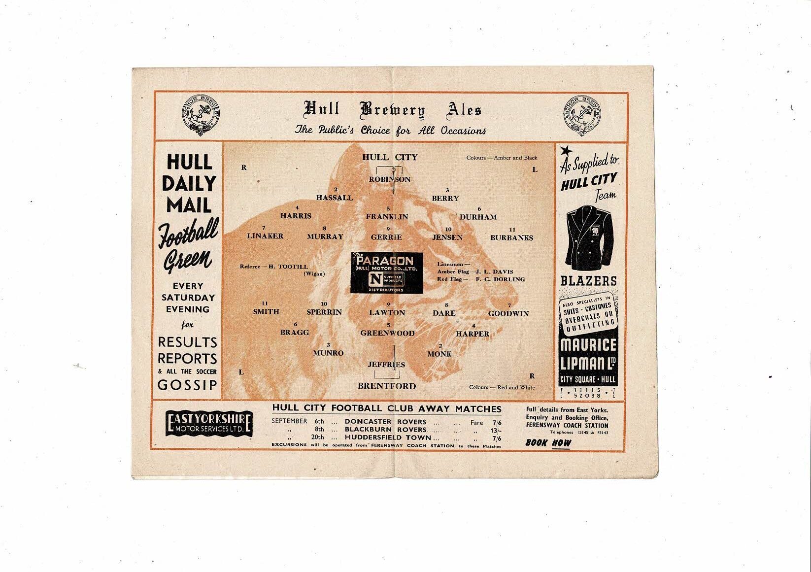 1952/53 Hull City v Brentford Football Programme