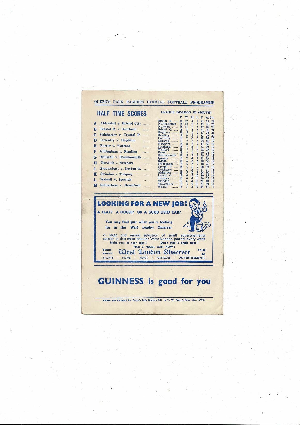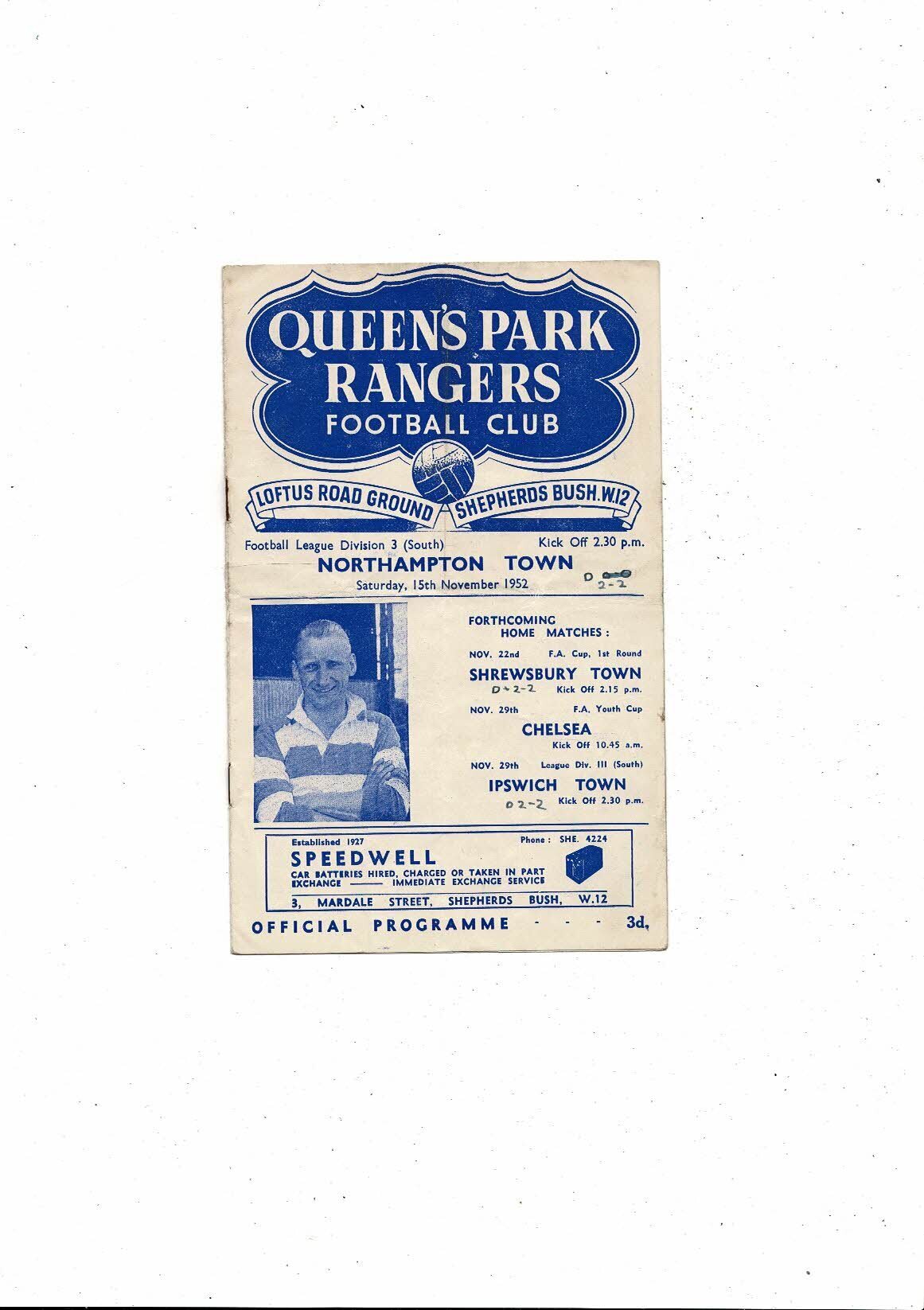 1952/53 Queens Park Rangers v Northampton Town Football Programme