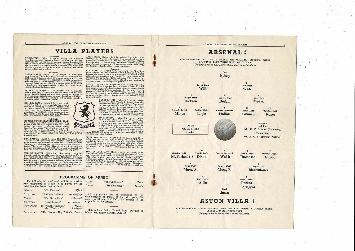 1953/54 Arsenal v Aston Villa FA Cup Football Programme