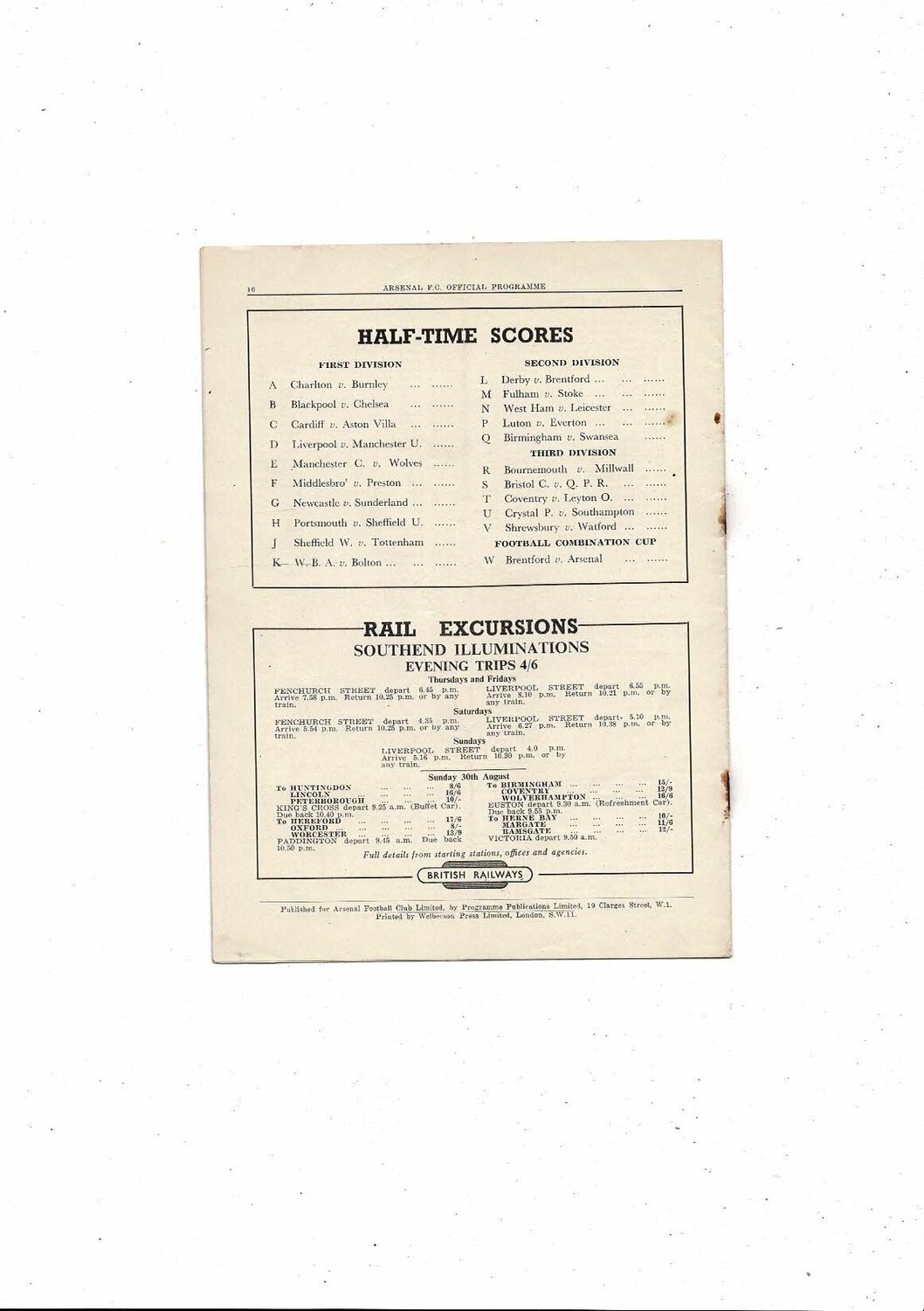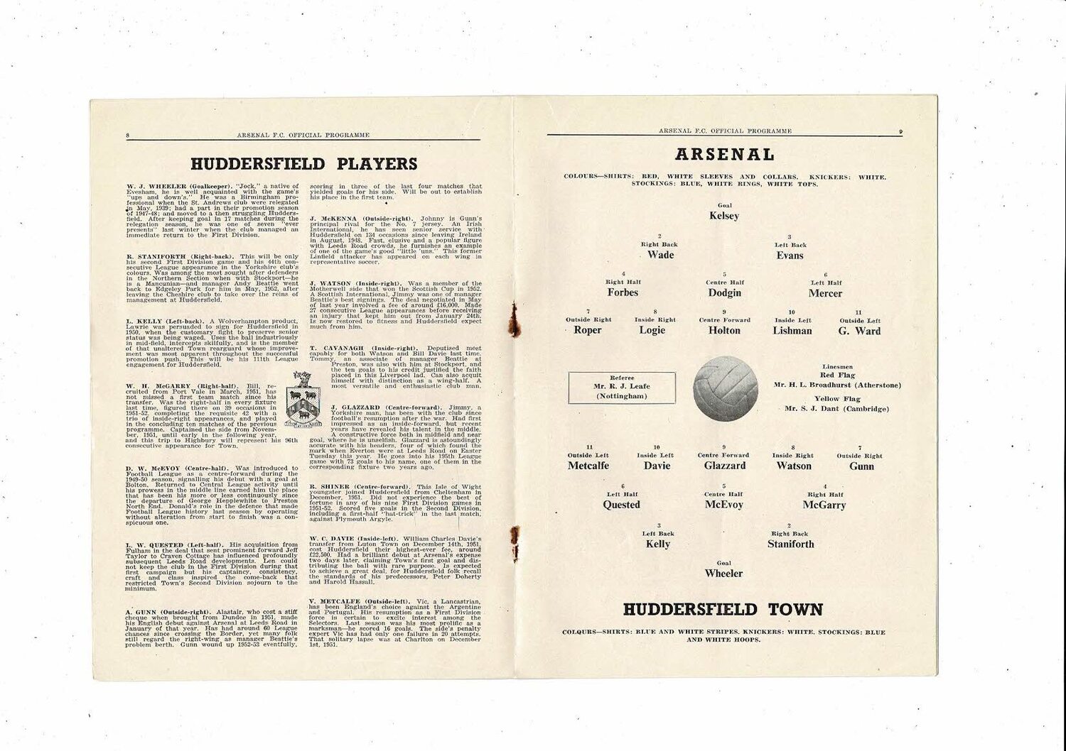 1953/54 Arsenal v Huddersfield Town Football Programme