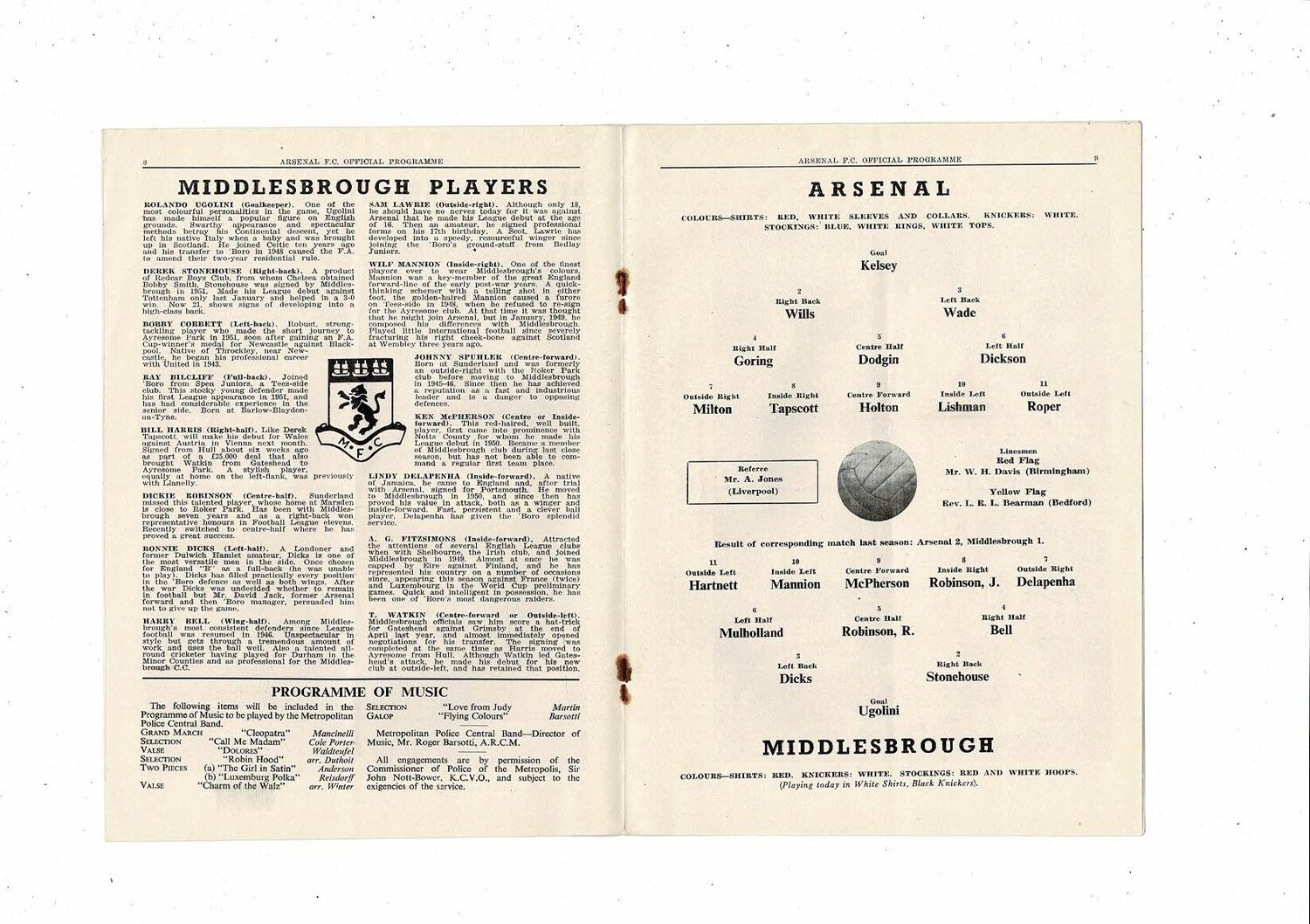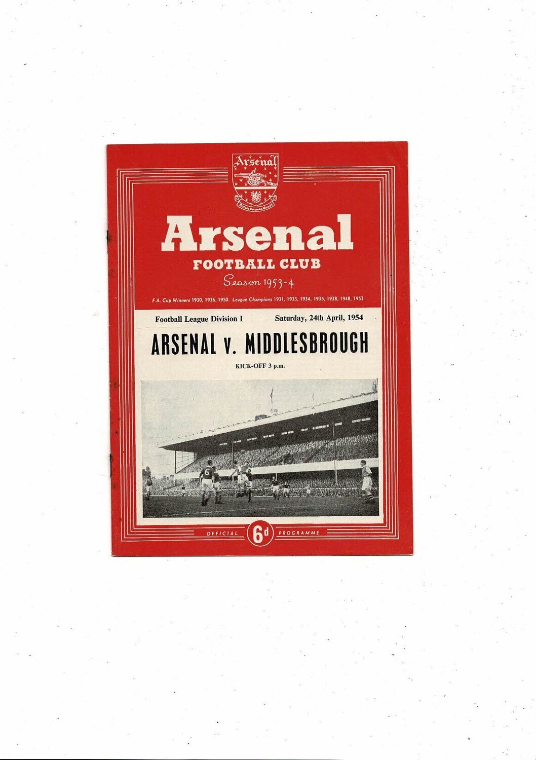 1953/54 Arsenal v Middlesbrough Football Programme