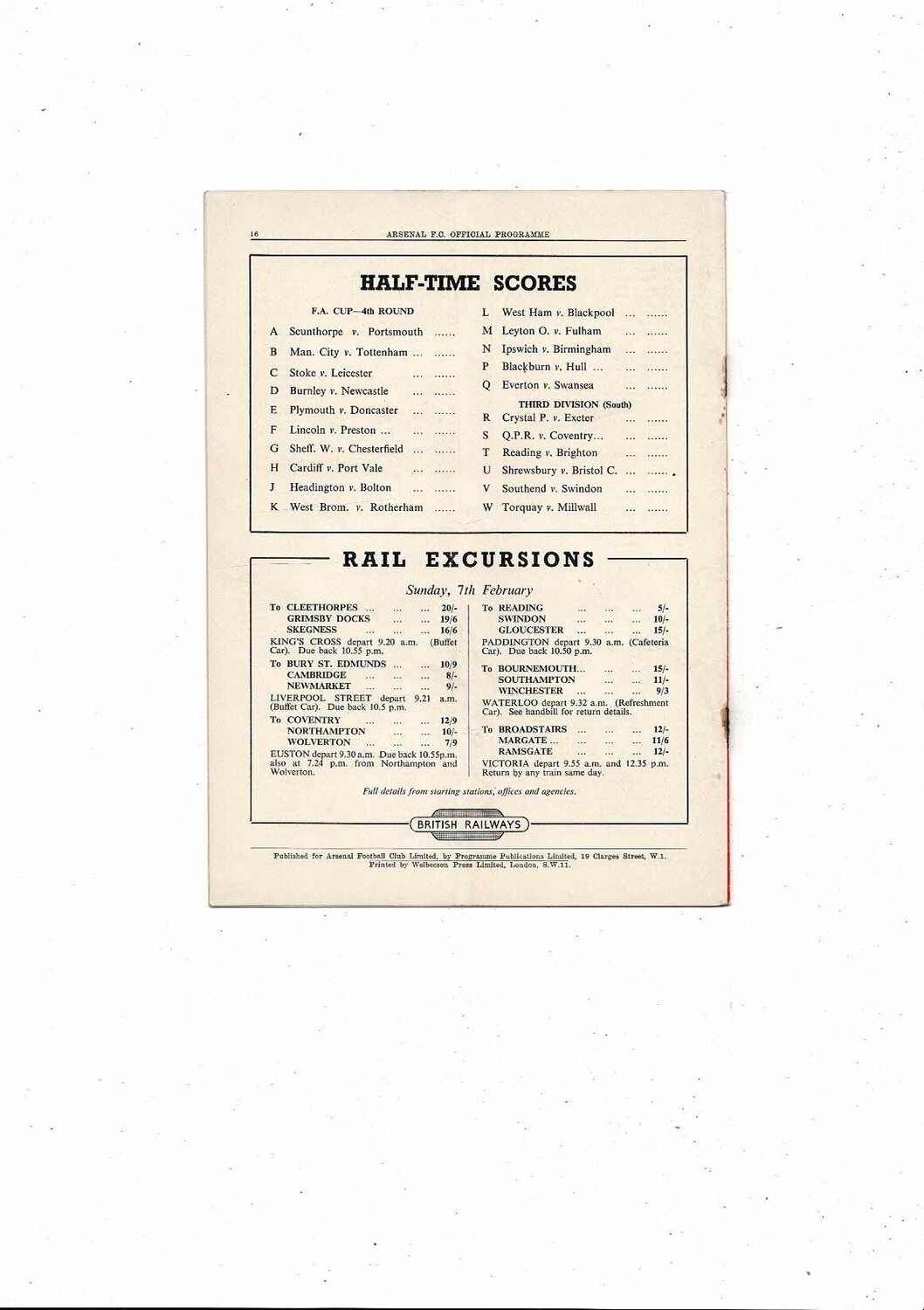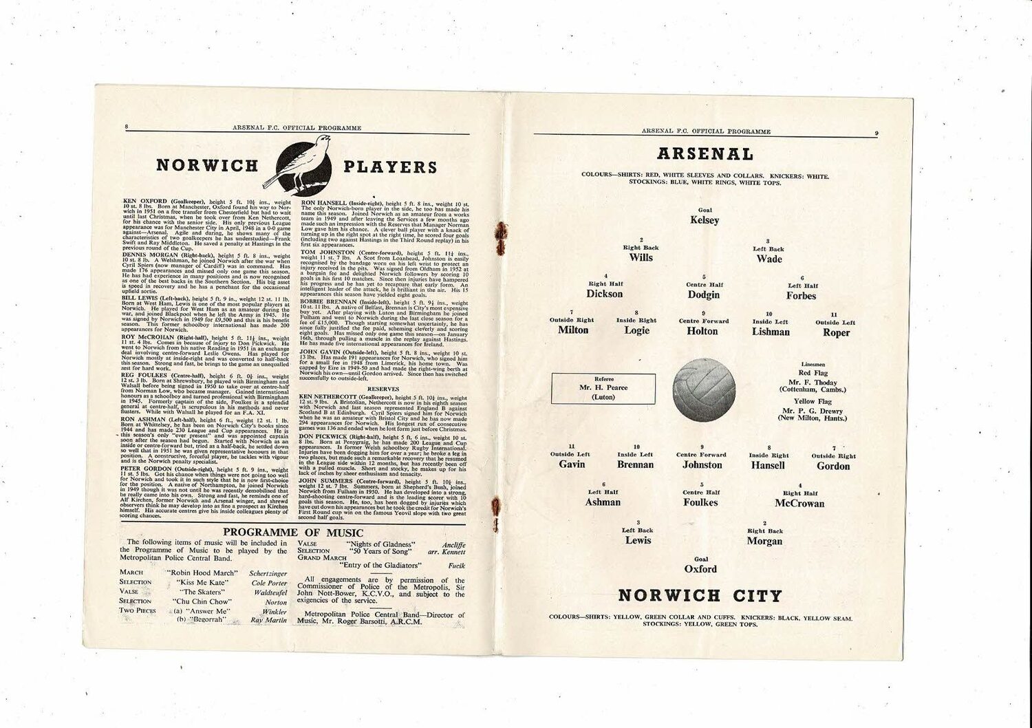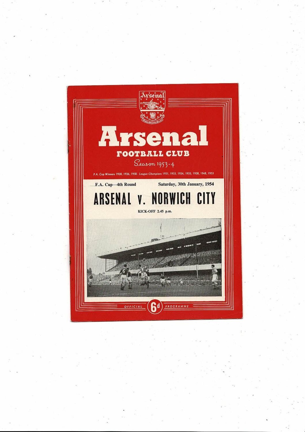 1953/54 Arsenal v Norwich City FA Cup Football Programme