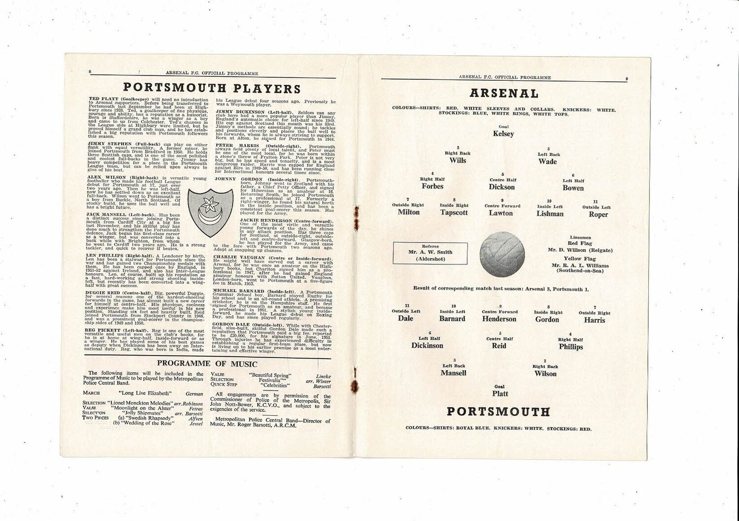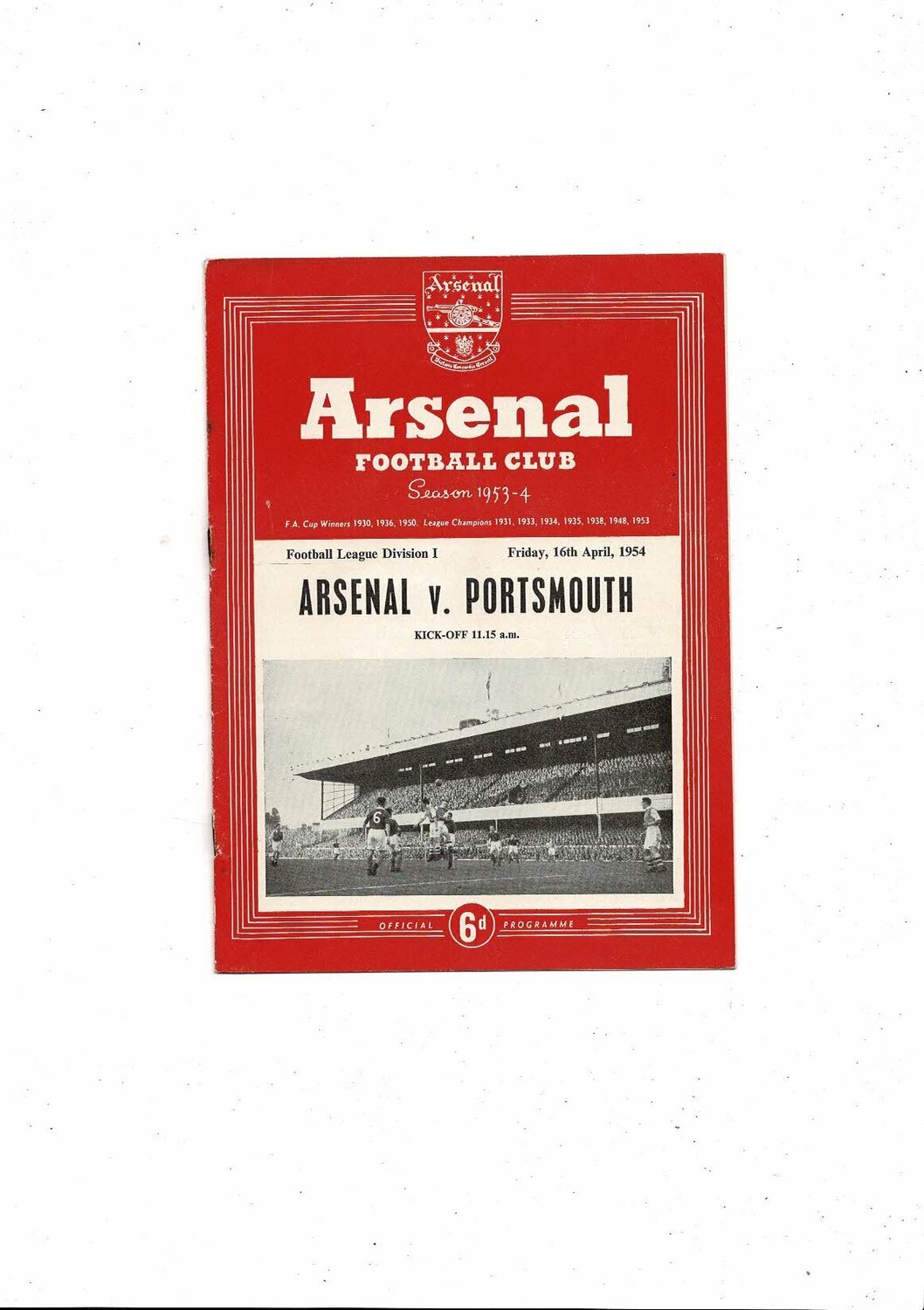 1953/54 Arsenal v Portsmouth Football Programme
