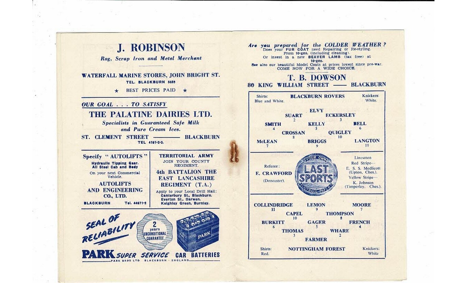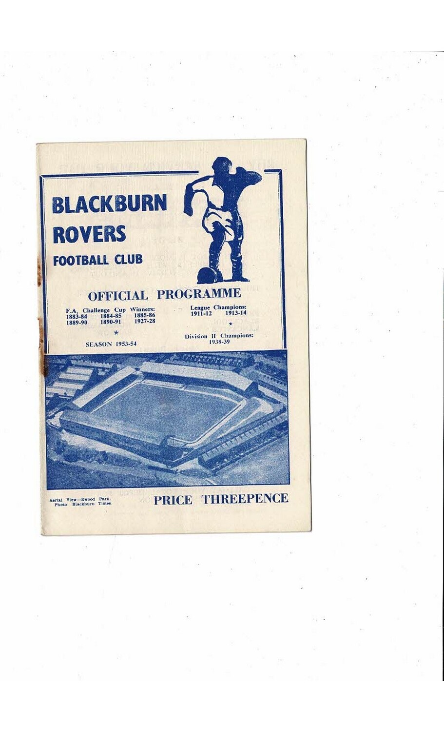 1953/54 Blackburn Rovers v Nottingham Forest Football Programme