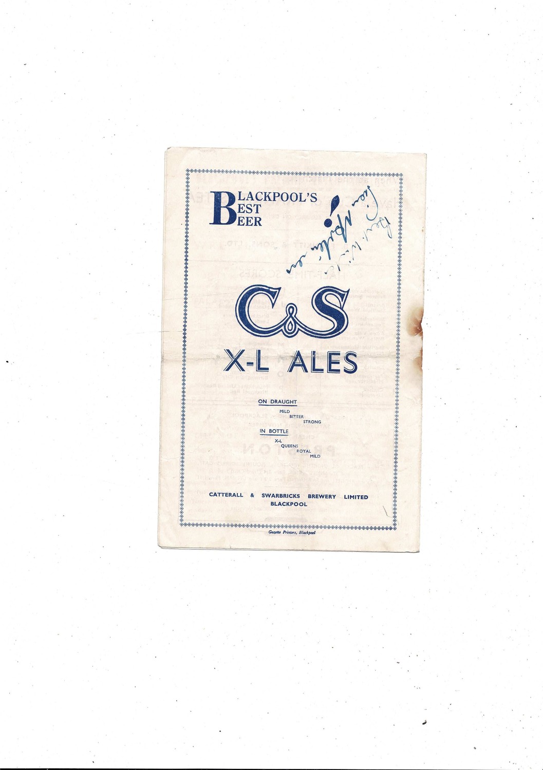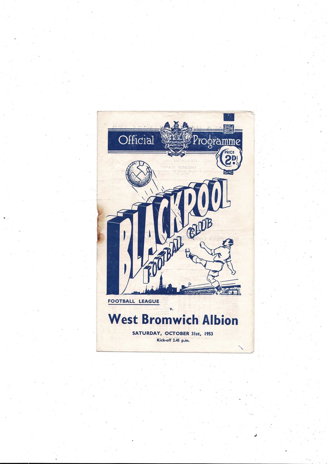 This original Football Programme is creased & folded with some staining, hole where rusty staple removed & couple of small tears on back page. No handwriting. Please see scans.