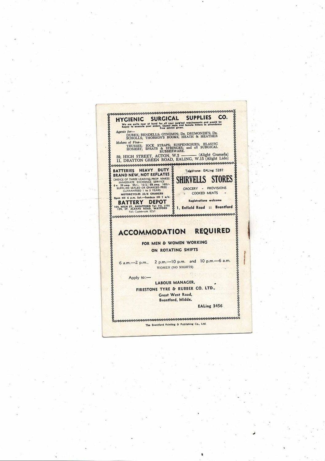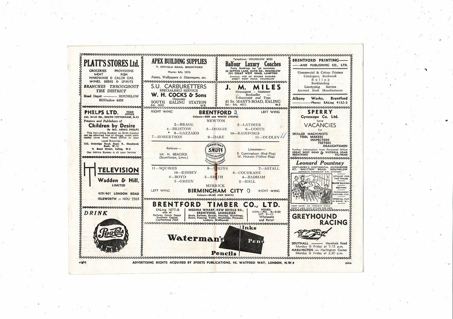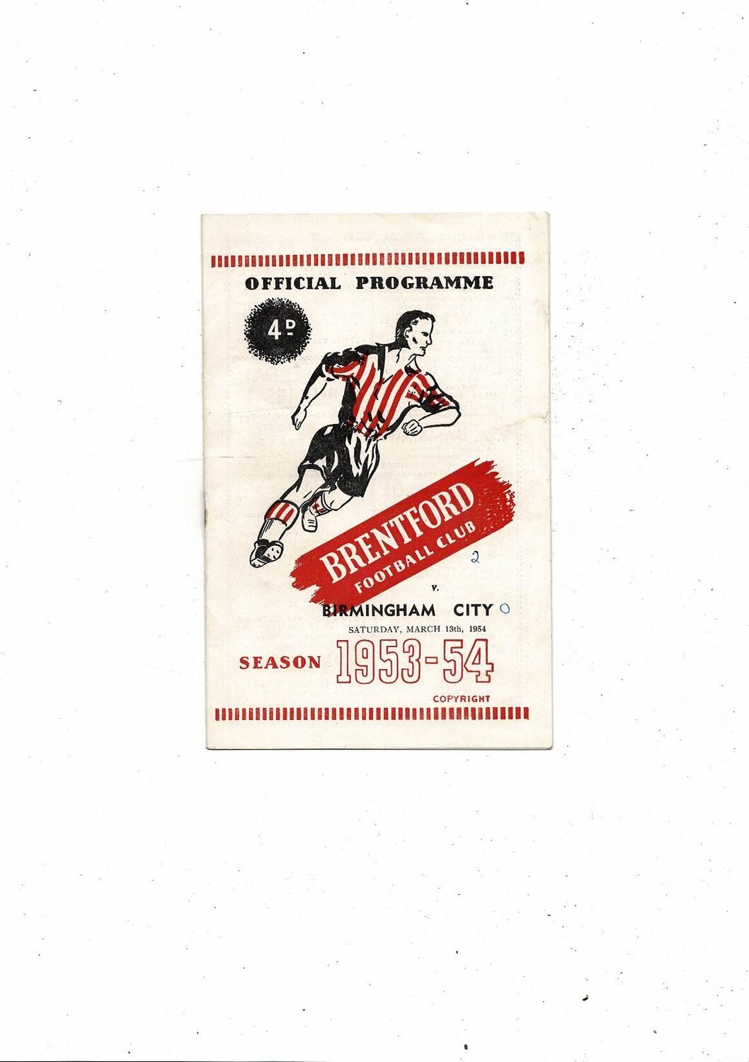 1953/54 Brentford v Birmingham City Football Programme