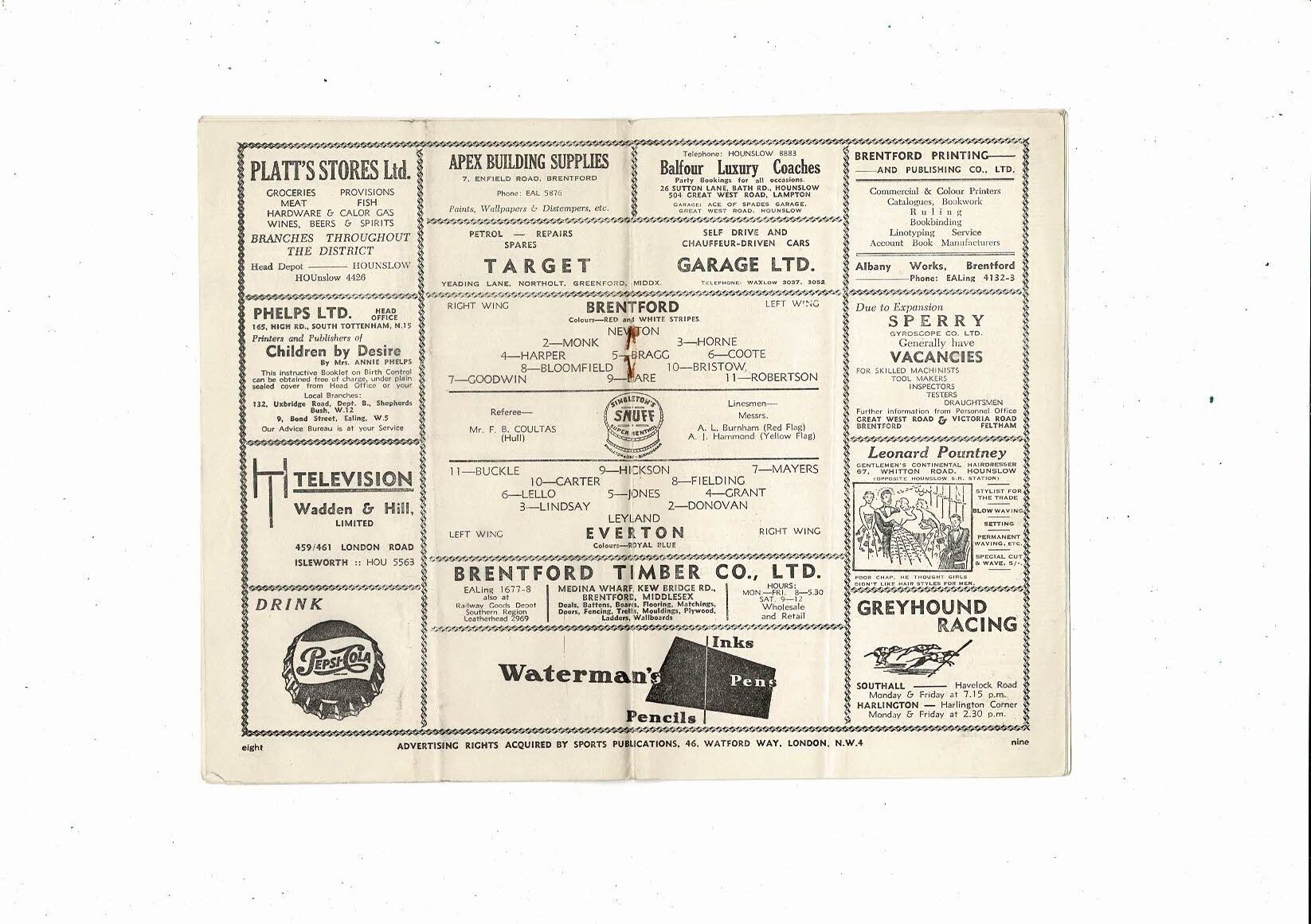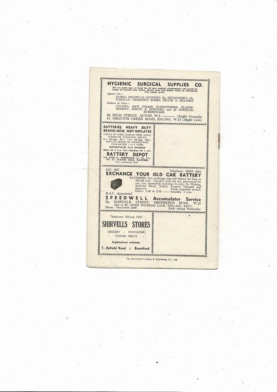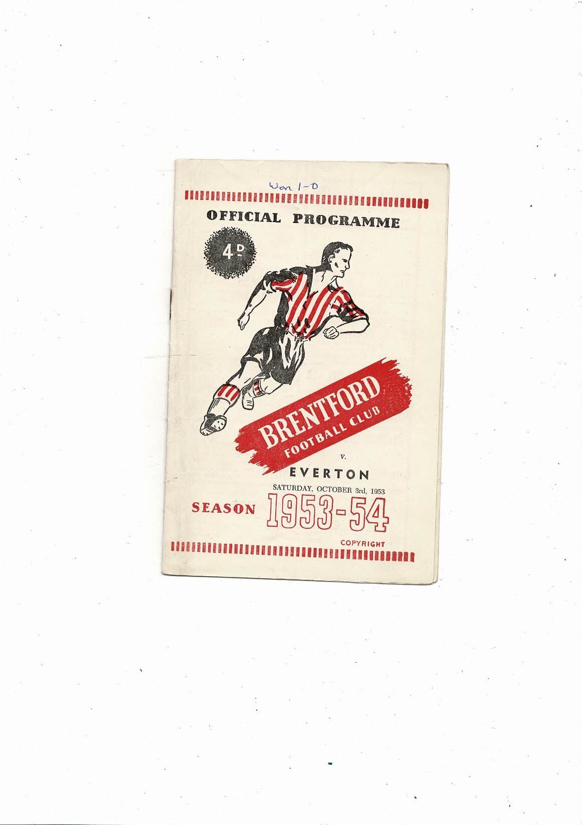 1953/54 Brentford v Everton Football Programme