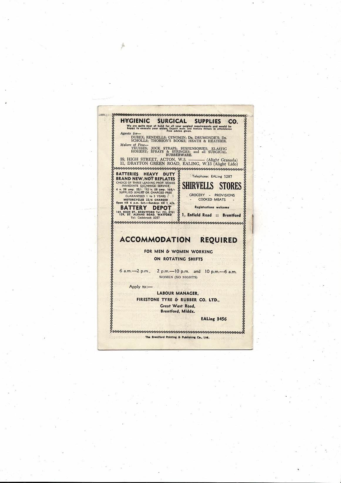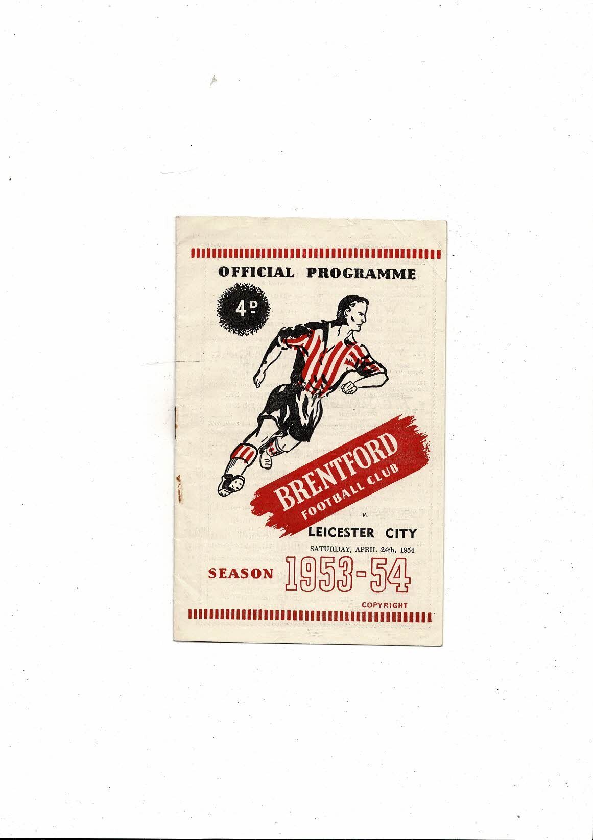 1953/54 Brentford v Leicester City Football Programme