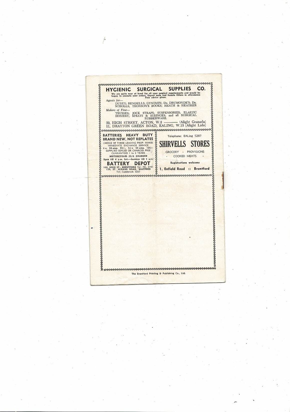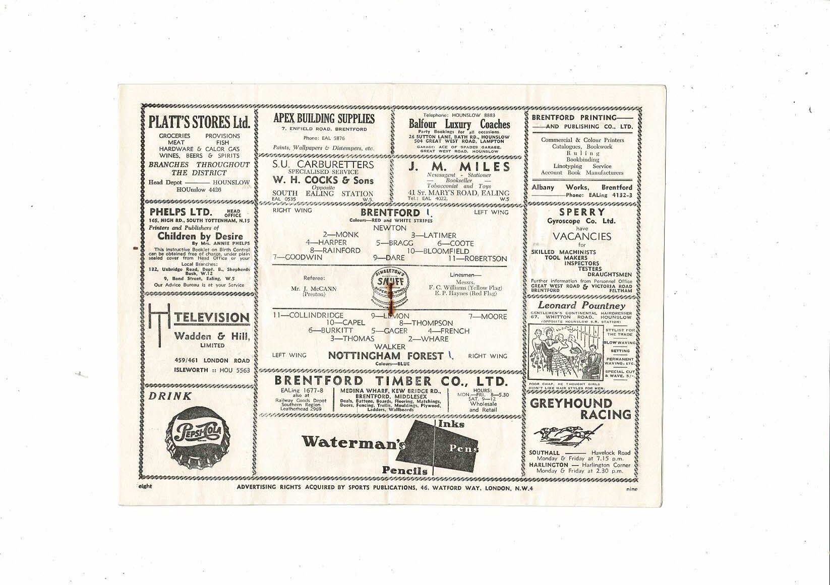 1953/54 Brentford v Nottingham Forest Football Programme