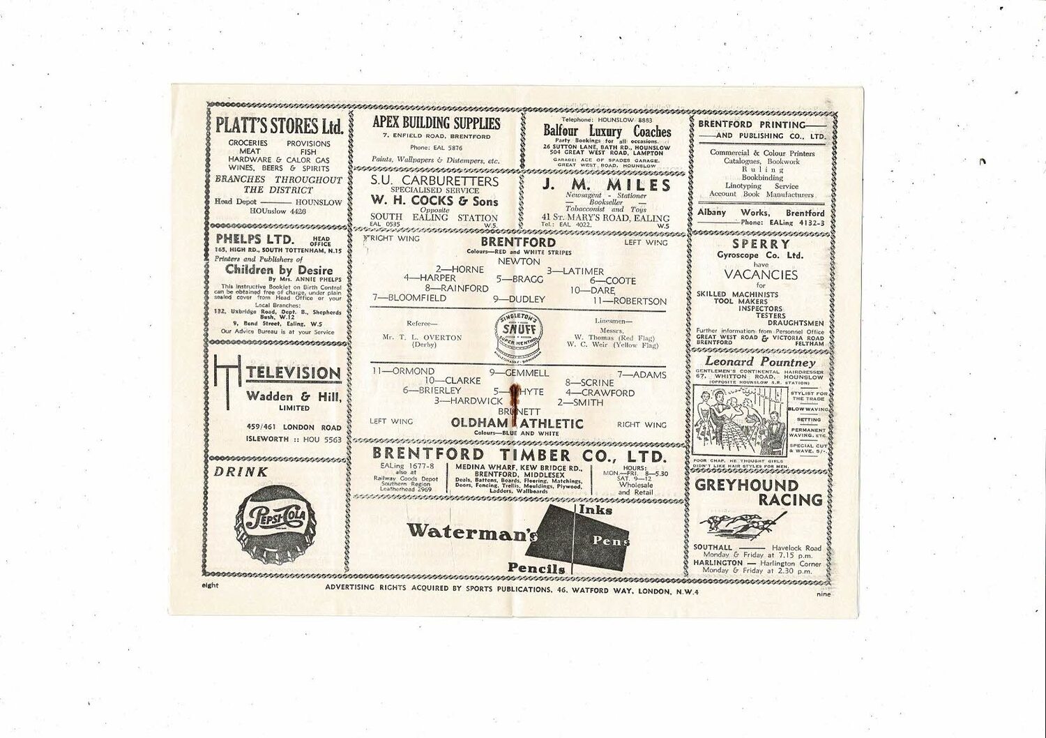 1953/54 Brentford v Oldham Athletic Football Programme