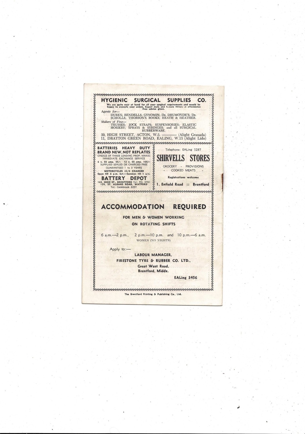 This original Football Programme is creased with some staining, rusty staple, several tiny nic's, name on front, score, scorers, one team change & one result noted. Please see scans.