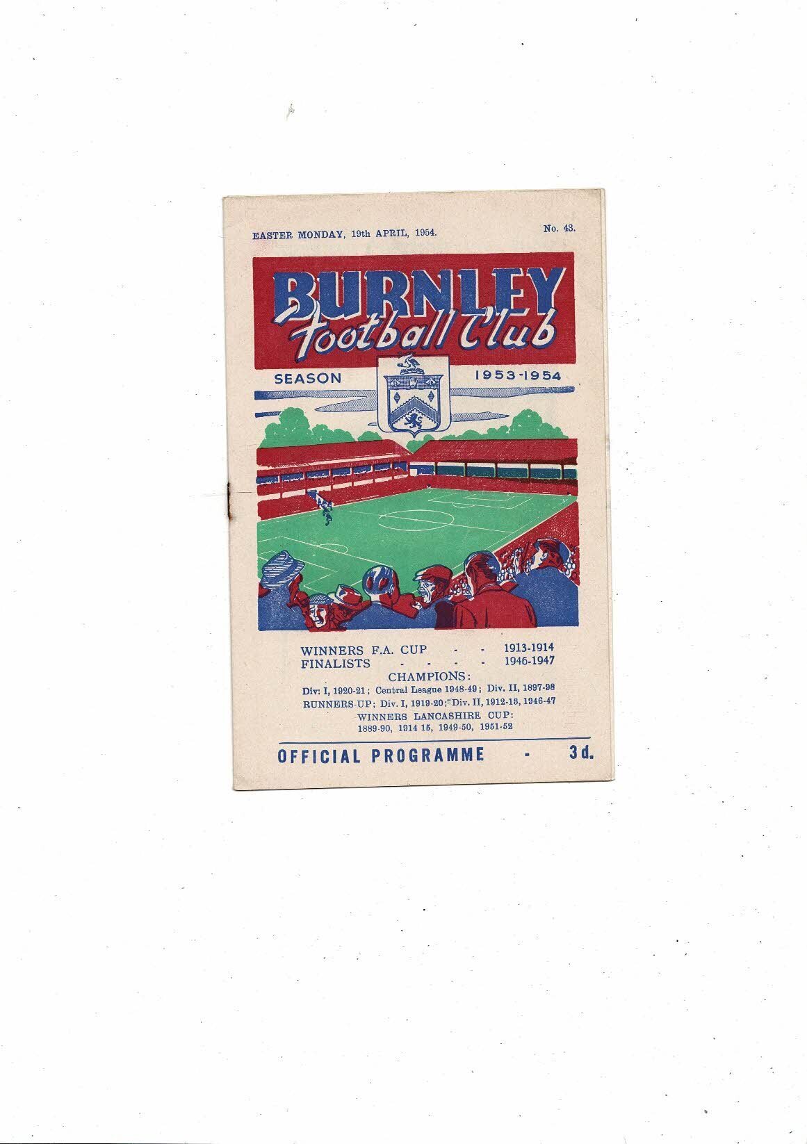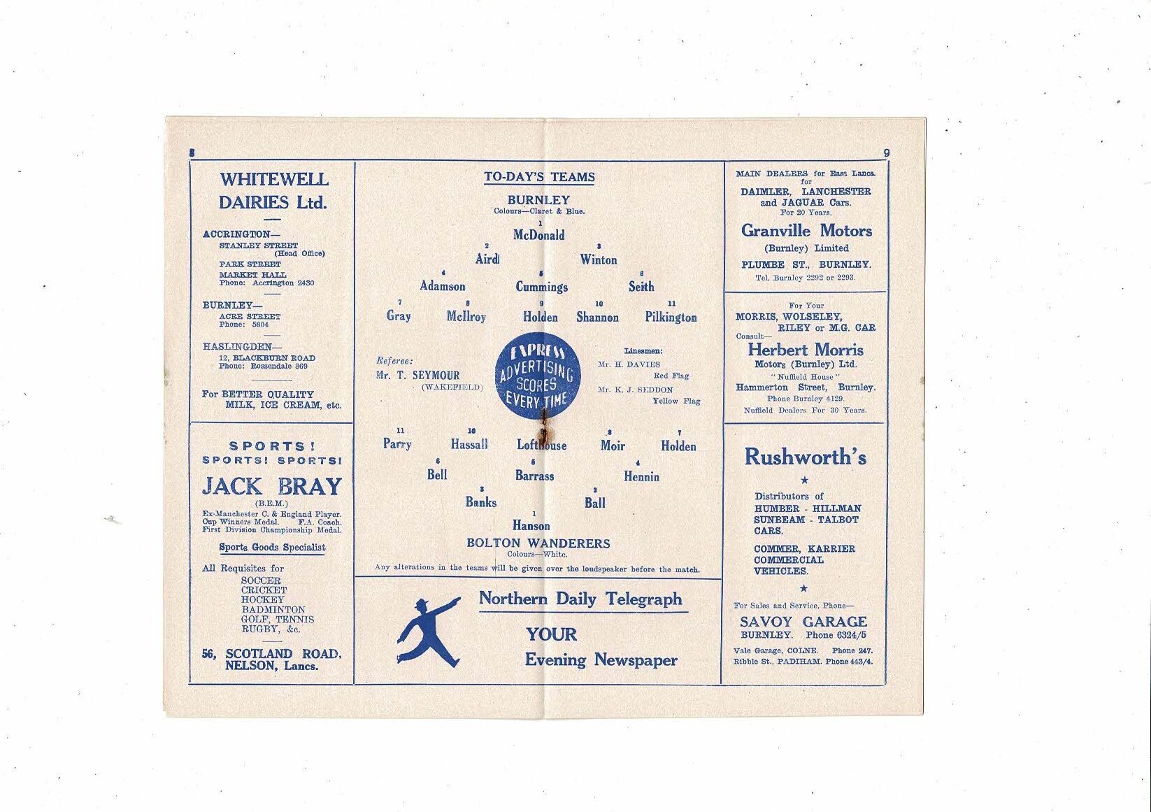 1953/54 Burnley v Bolton Wanderers Football Programme