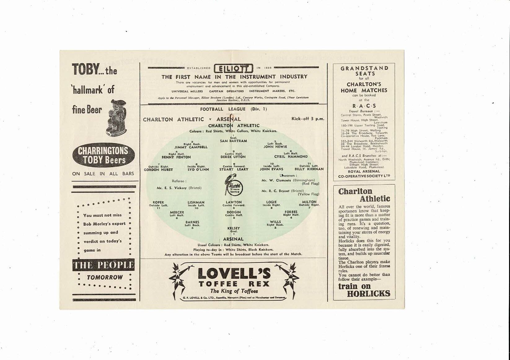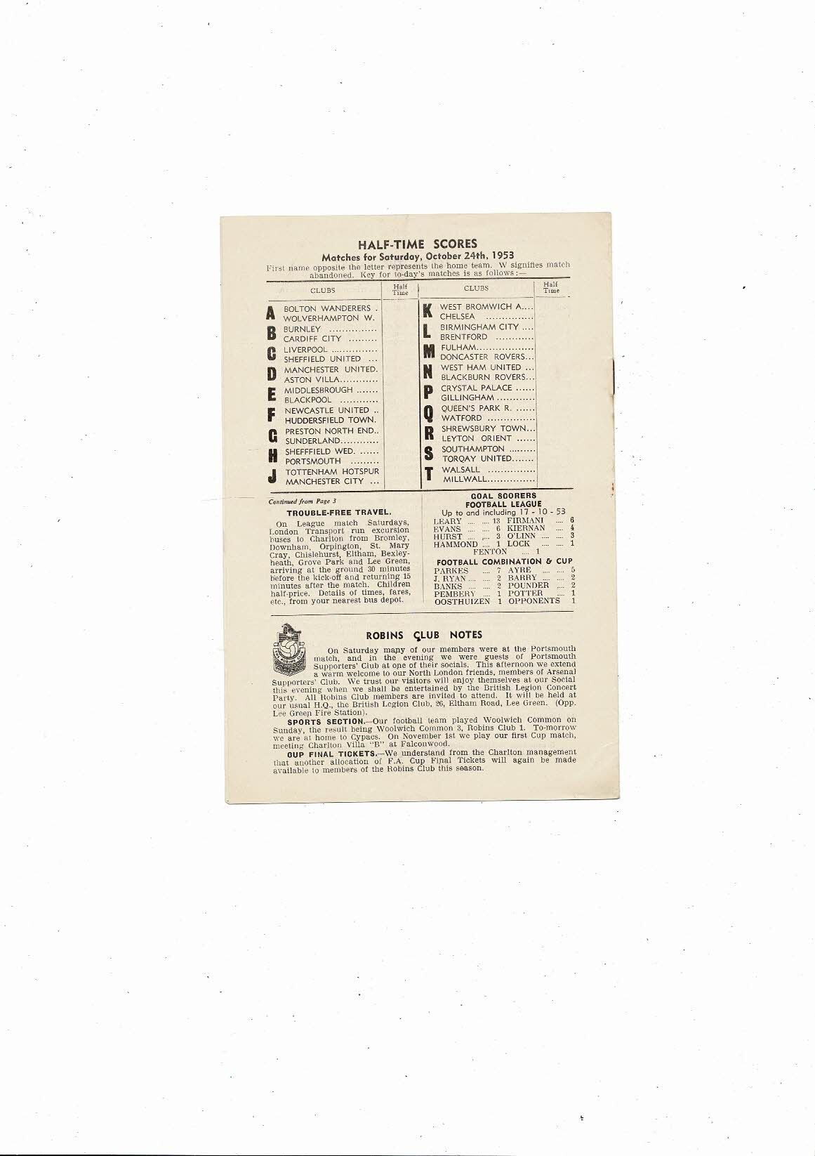 1953/54 Charlton Athletic v Arsenal Football Programme