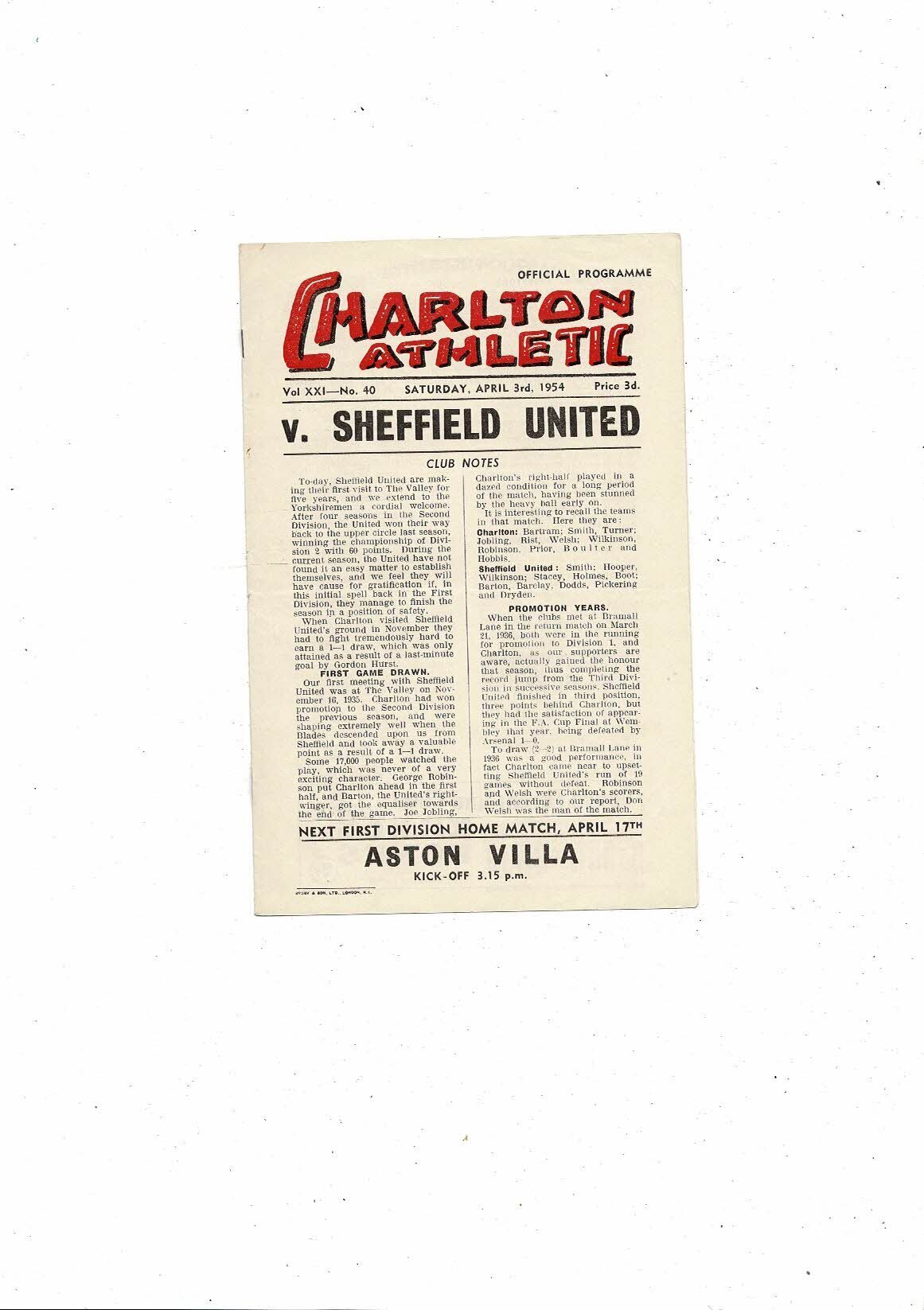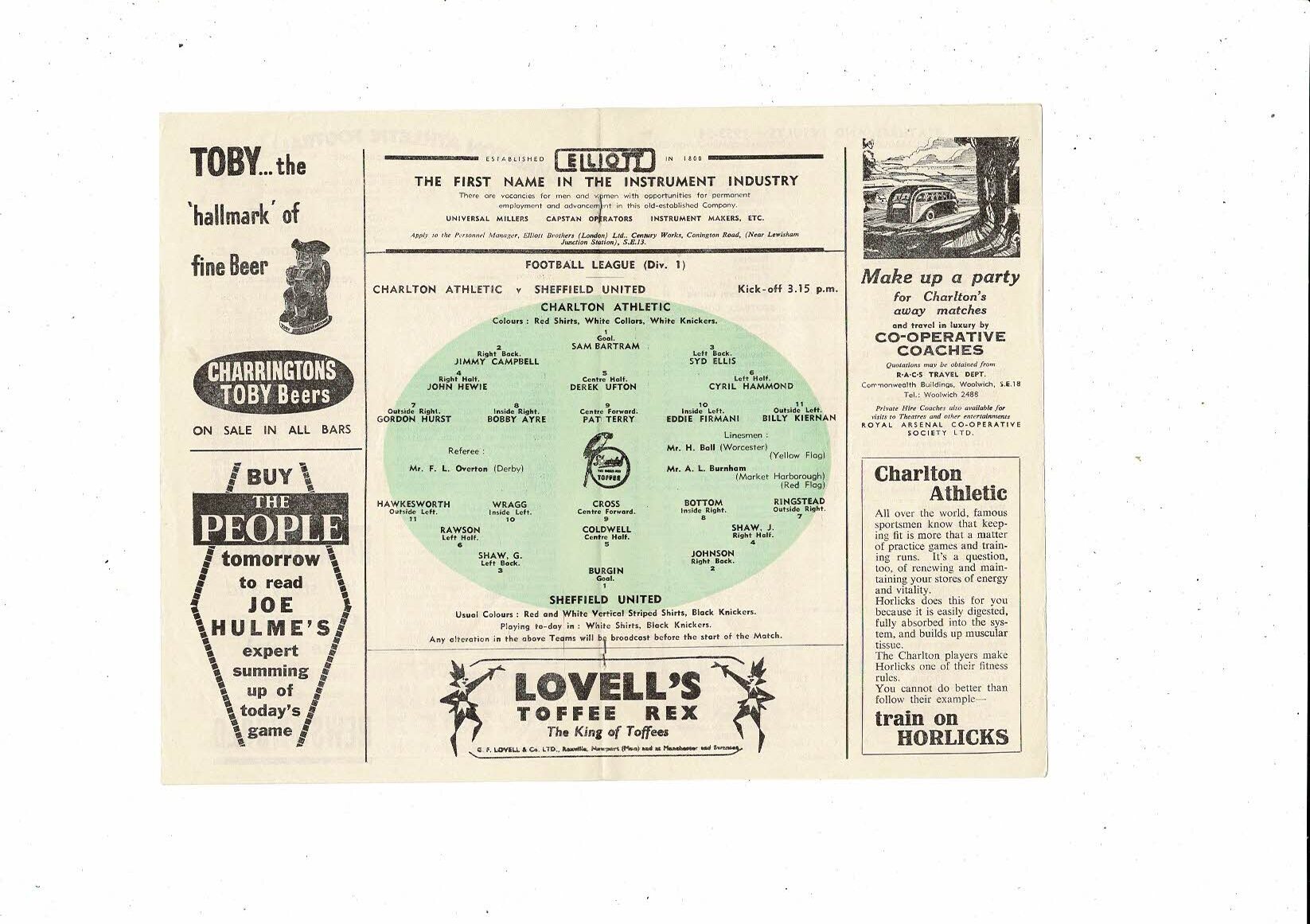 1953/54 Charlton Athletic v Sheffield United Football Programme