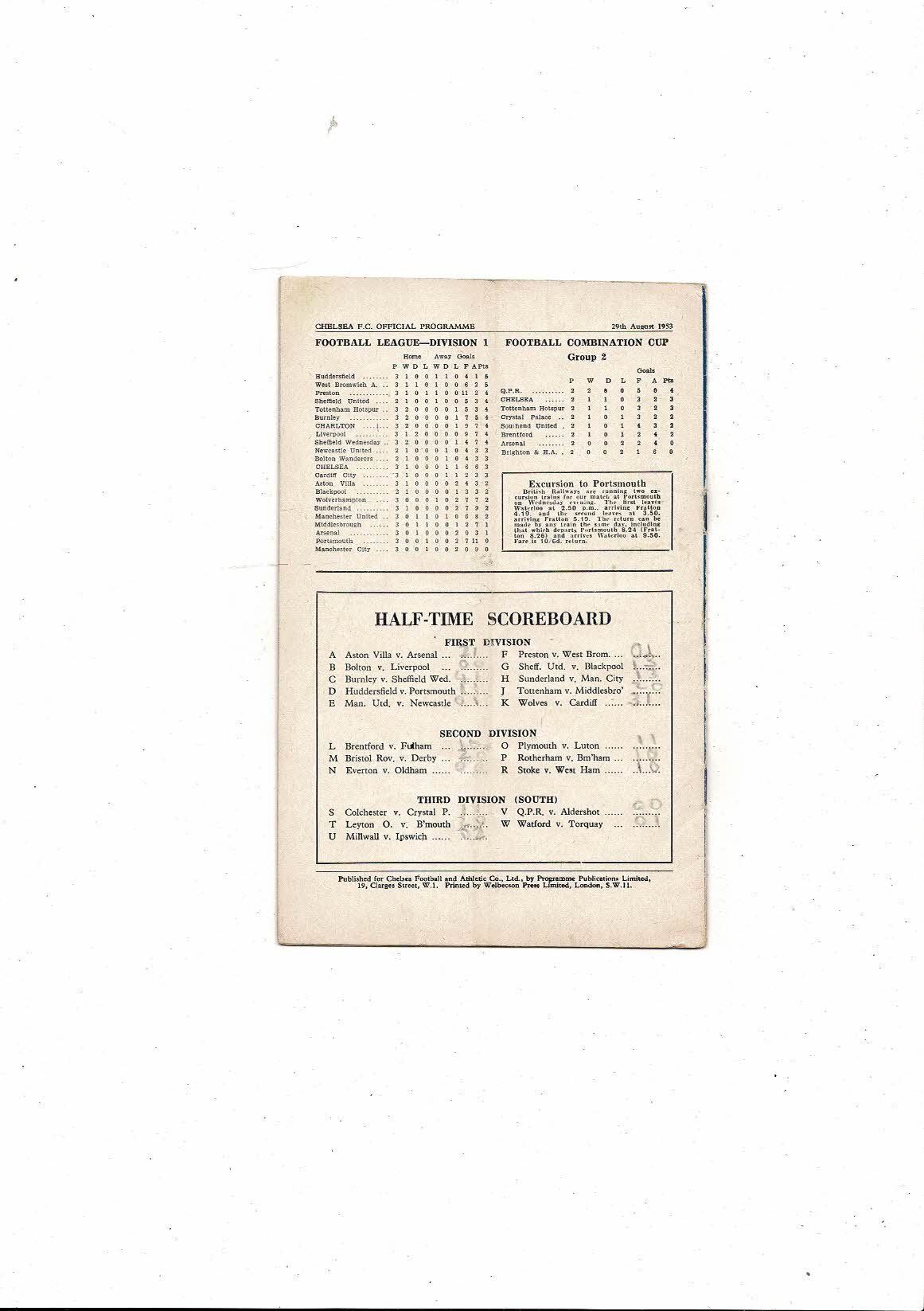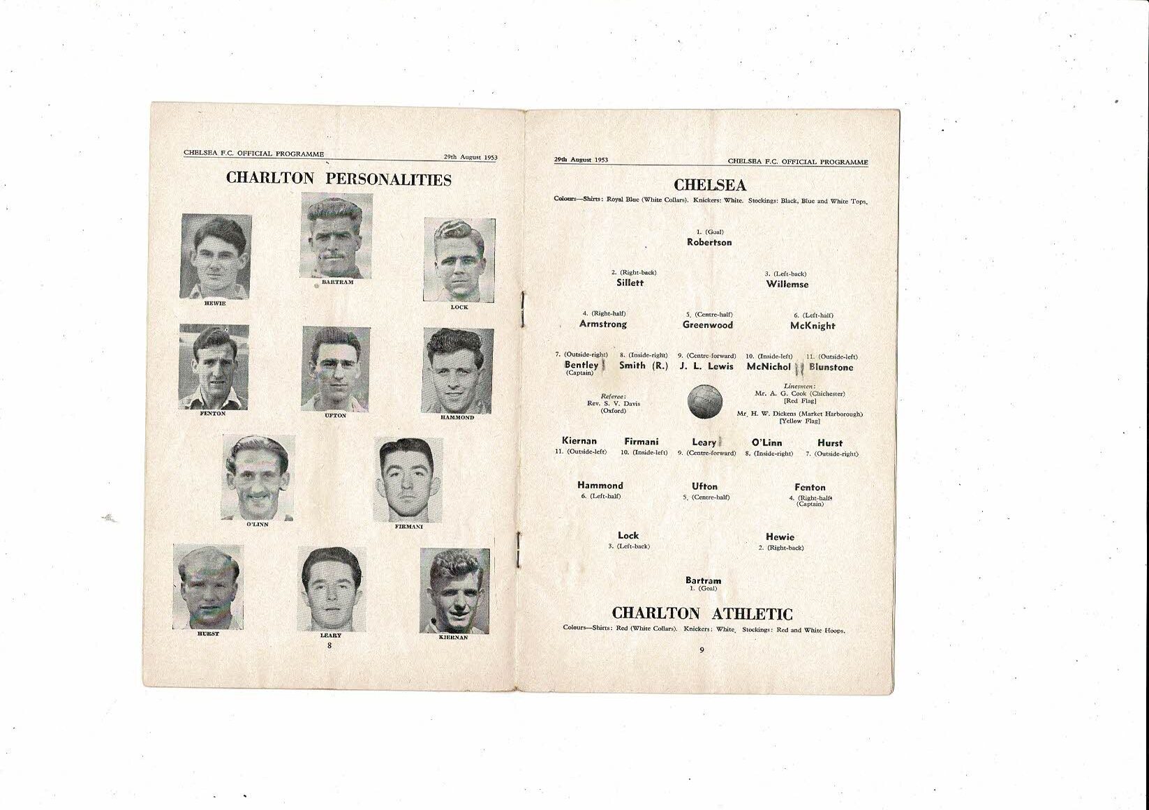 1953/54 Chelsea v Charlton Athletic Football Programme