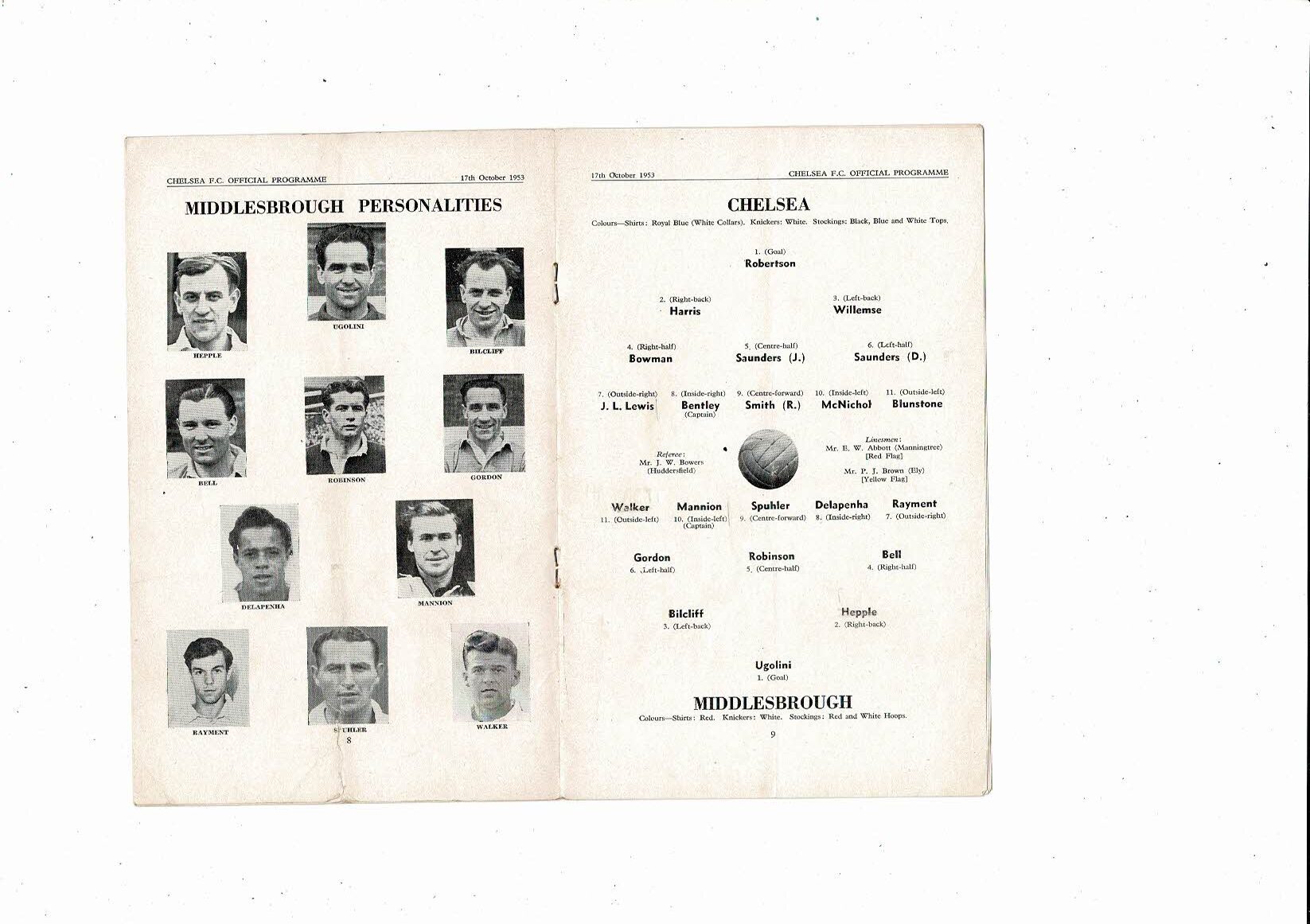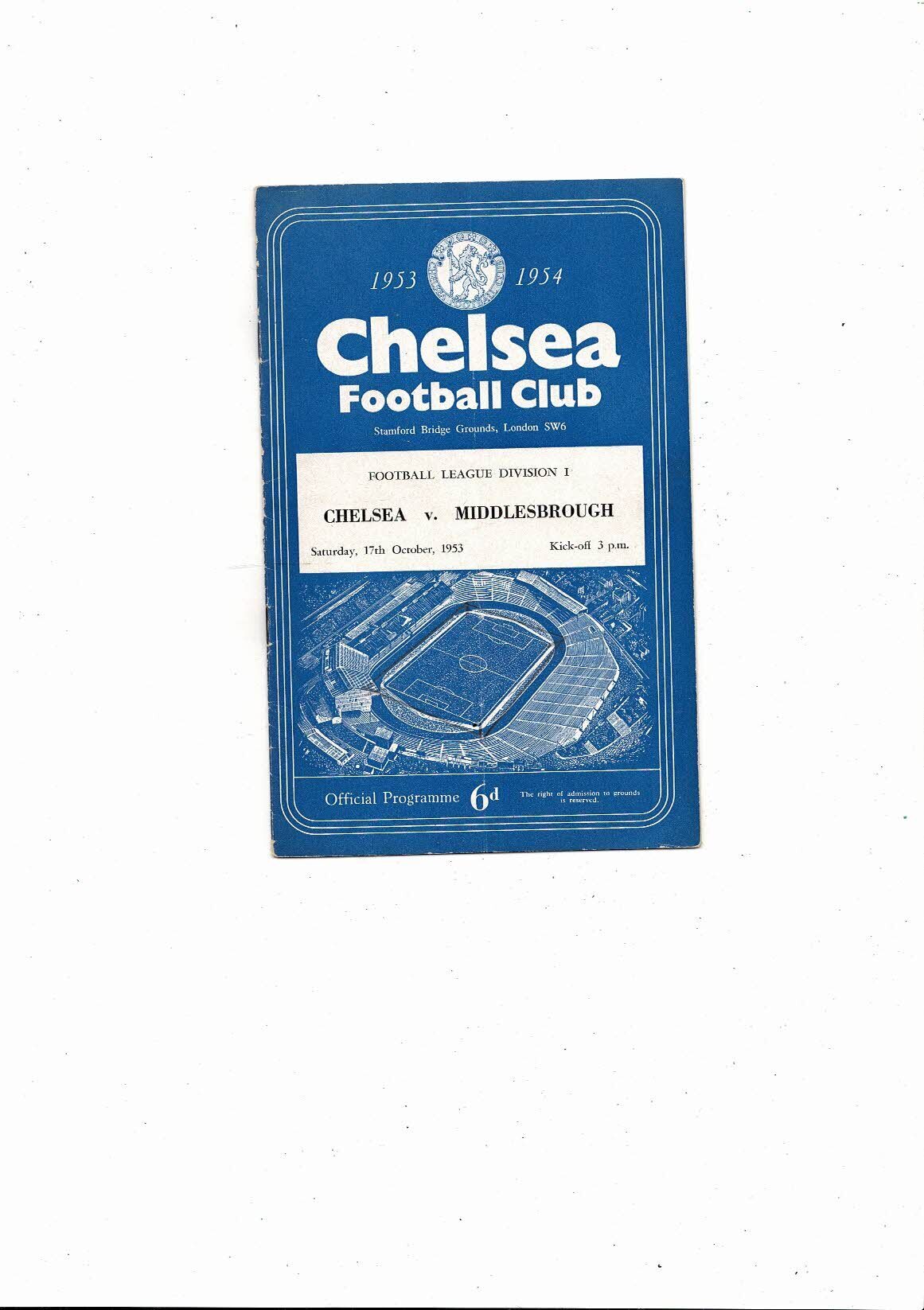 1953/54 Chelsea v Middlesbrough Football Programme