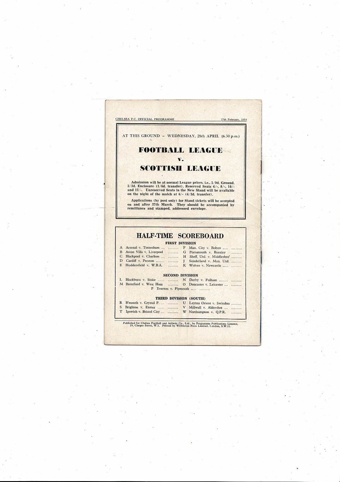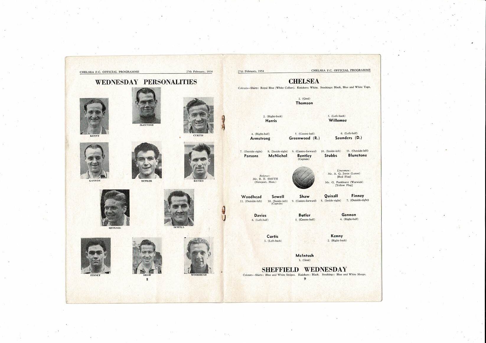 1953/54 Chelsea v Sheffield Wednesday Football Programme