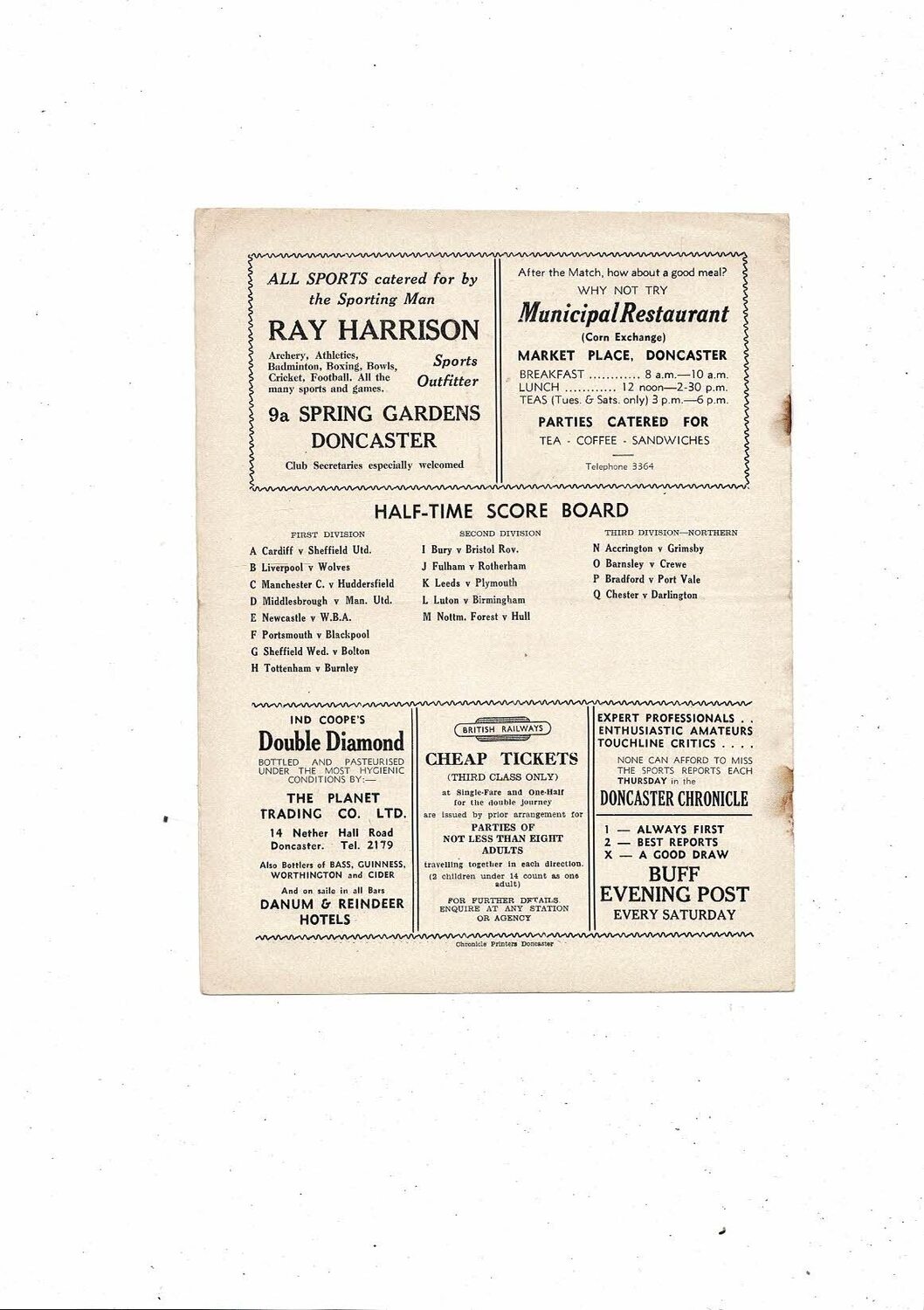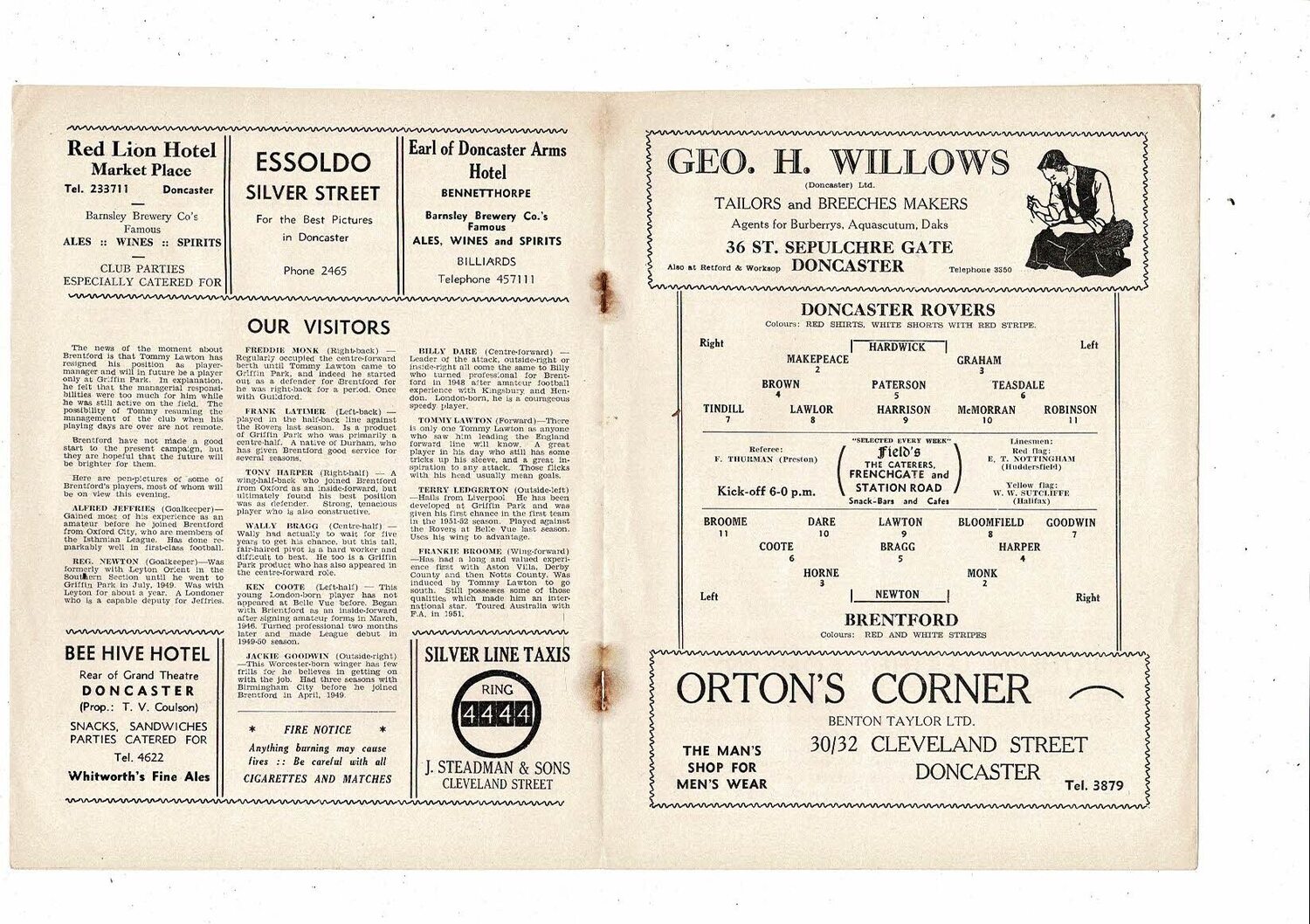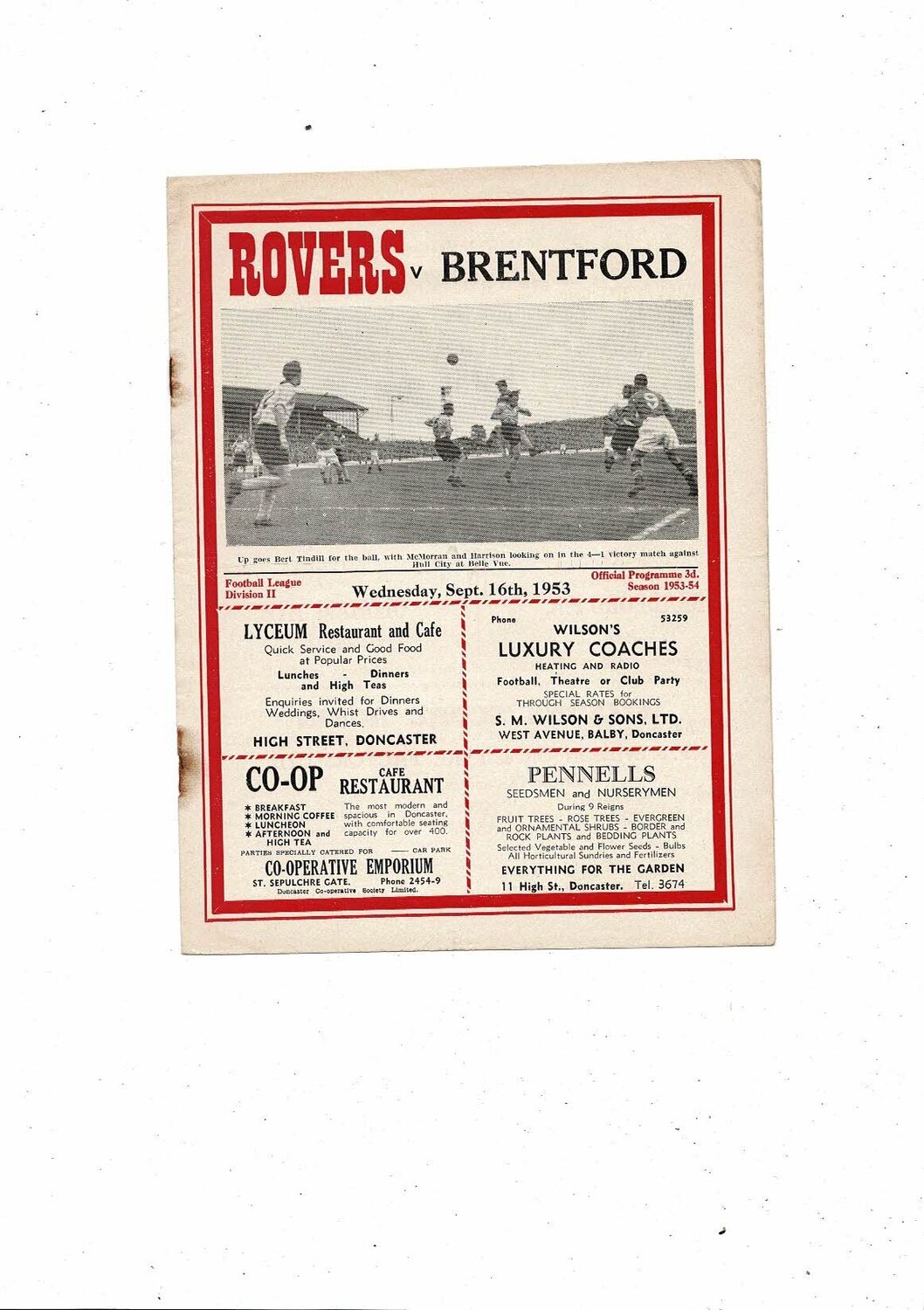 1953/54 Doncaster Rovers v Brentford Football Programme
