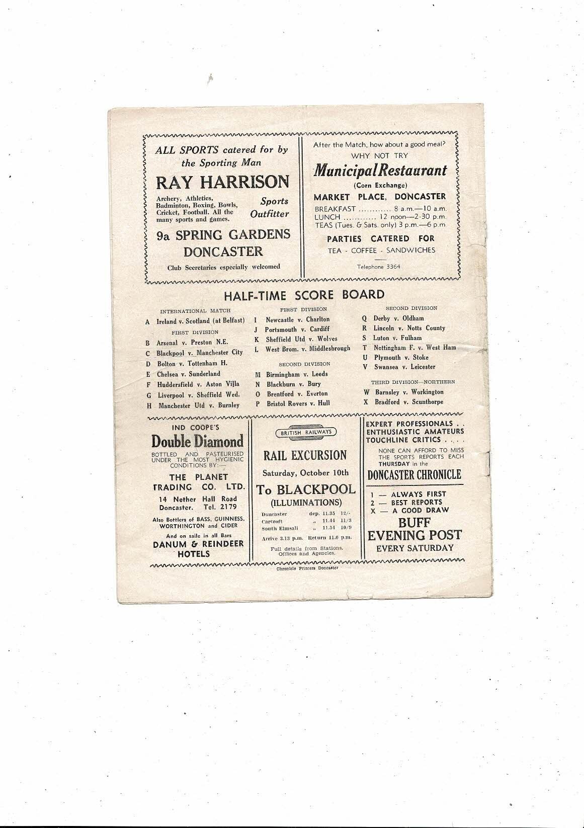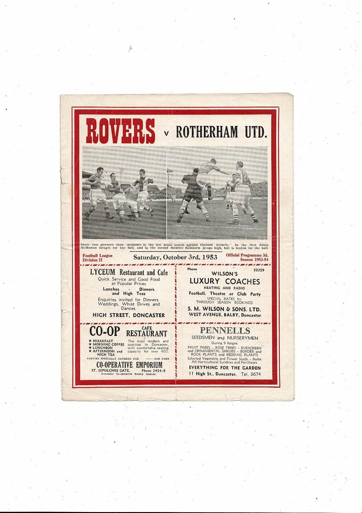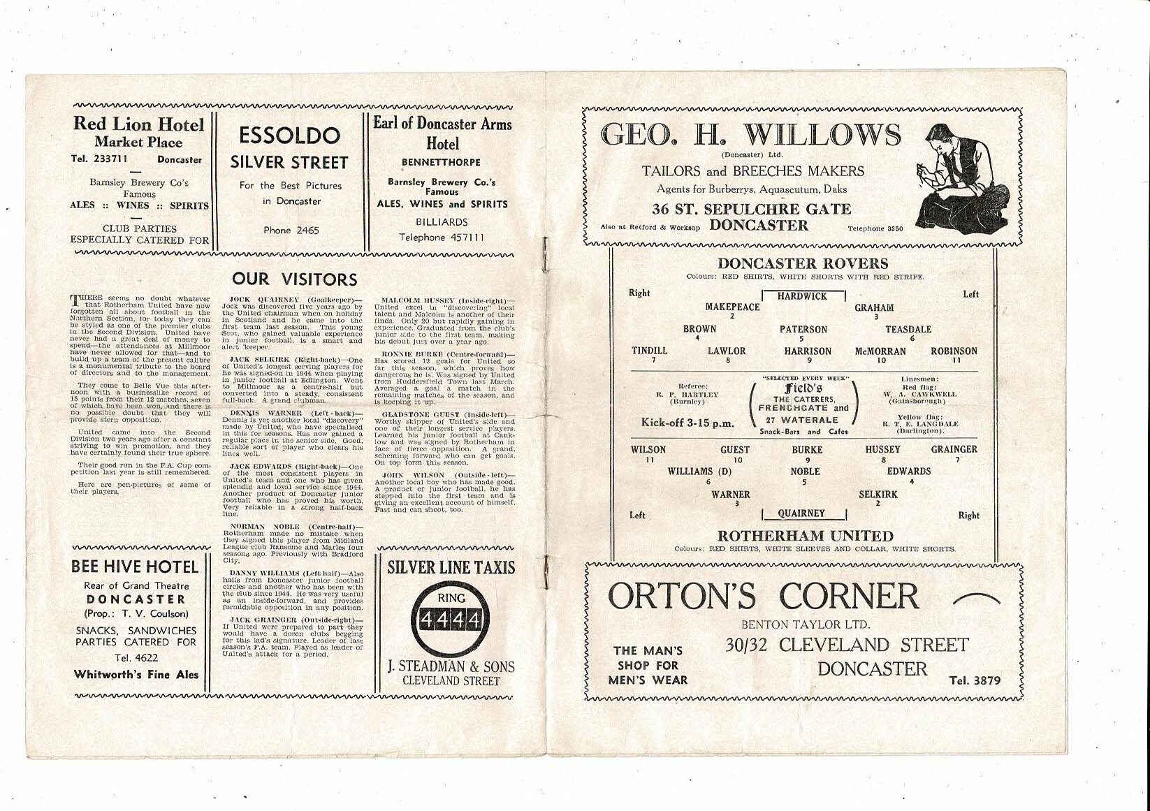 1953/54 Doncaster Rovers v Rotherham United Football Programme