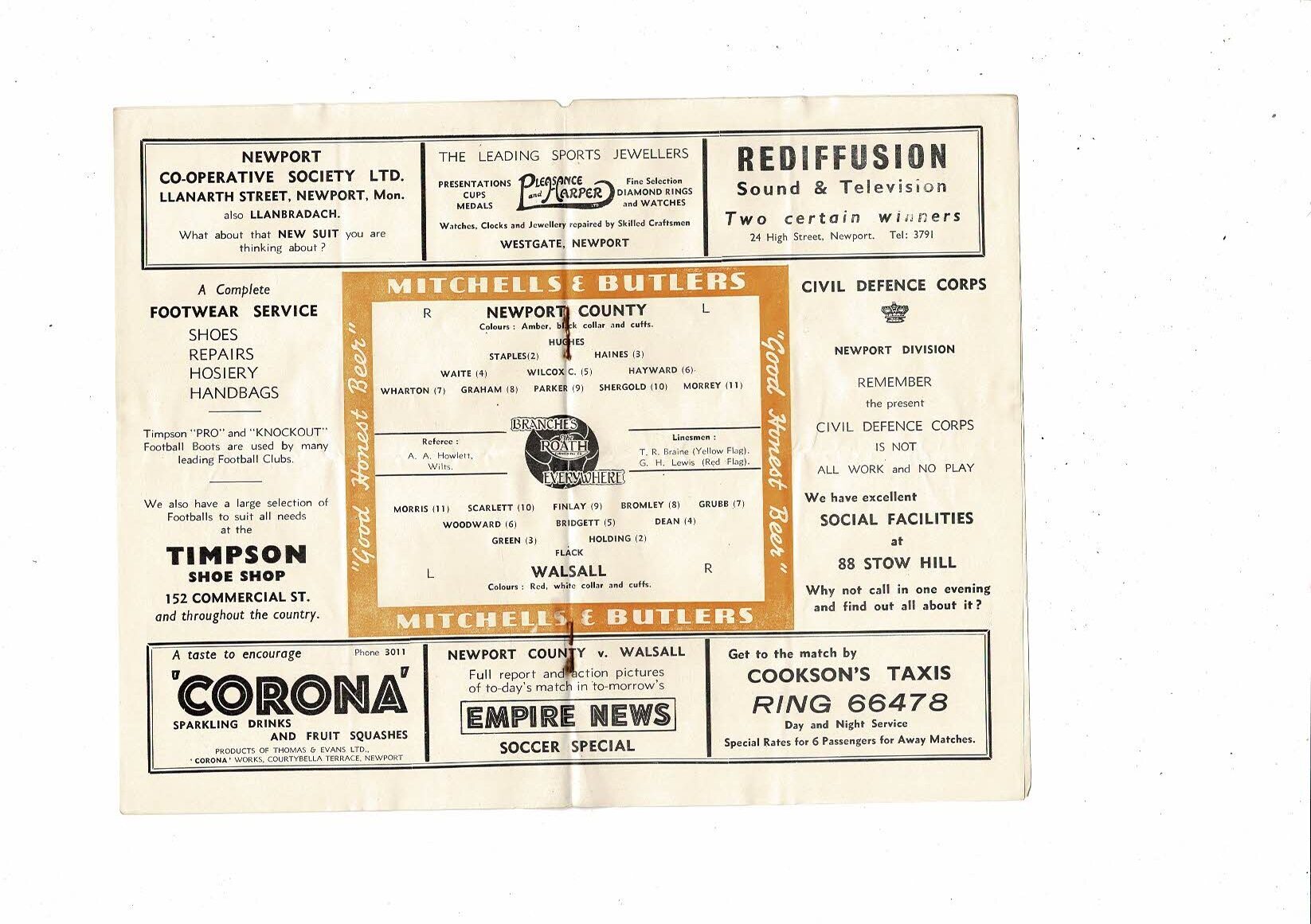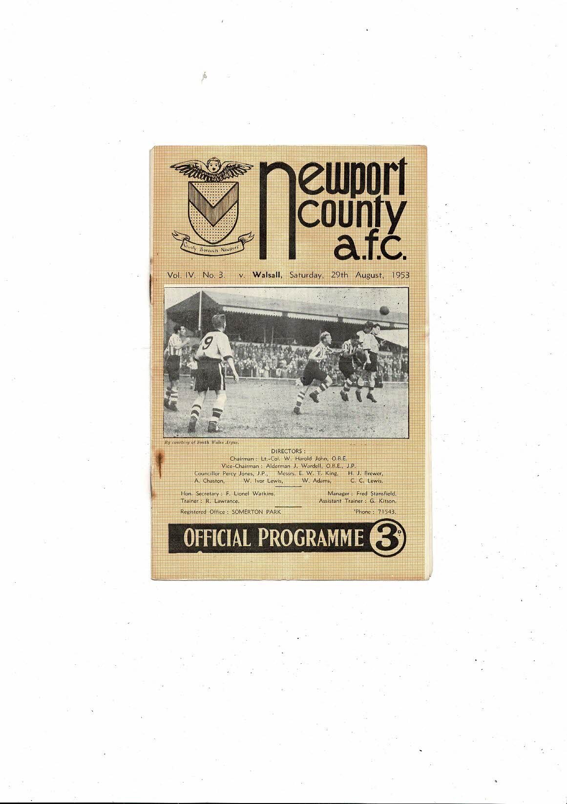 1953/54 Newport County v Walsall Football Programme