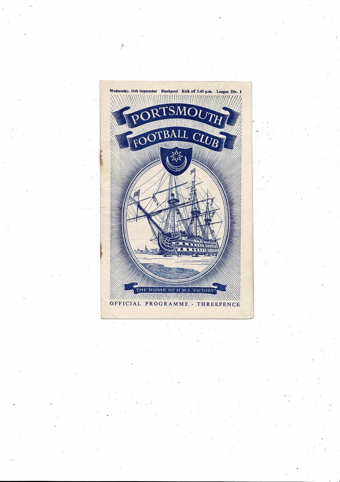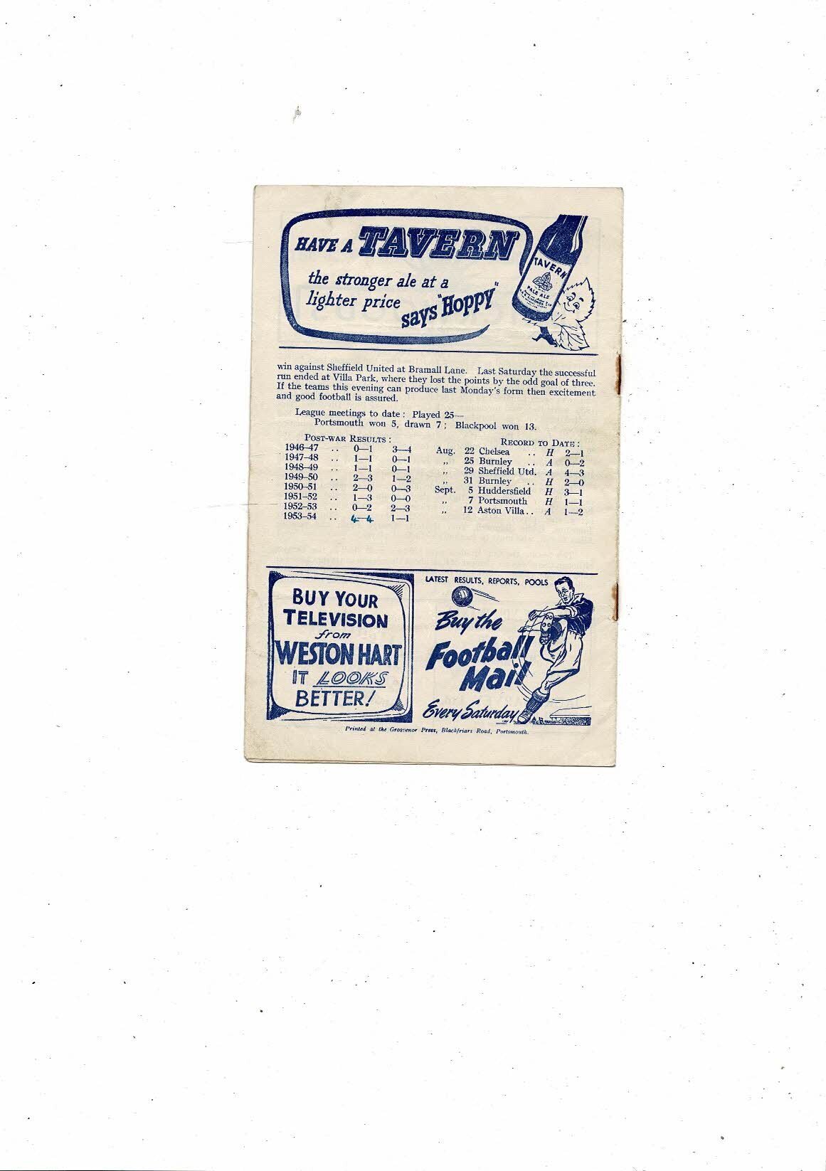 1953/54 Portsmouth v Blackpool Football Programme